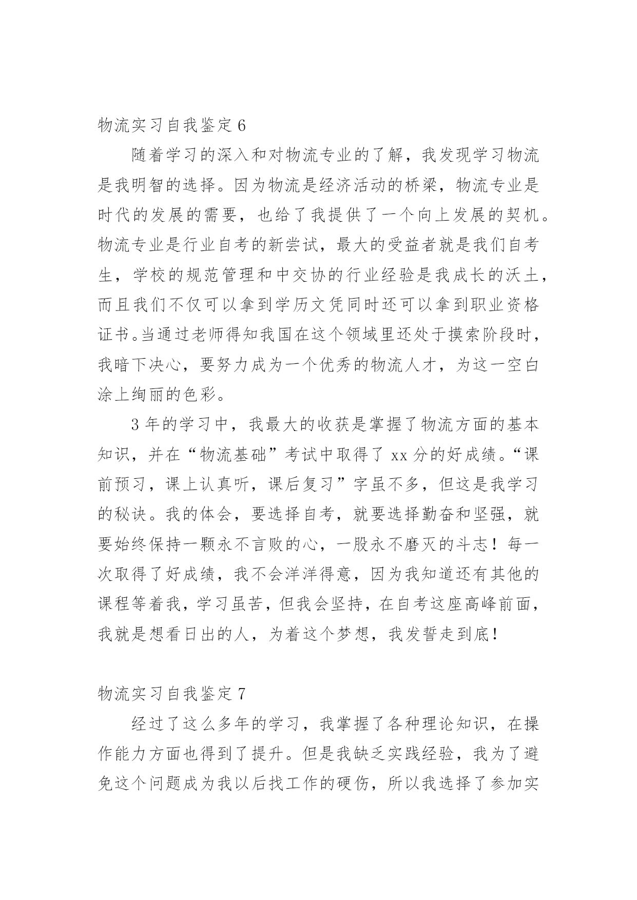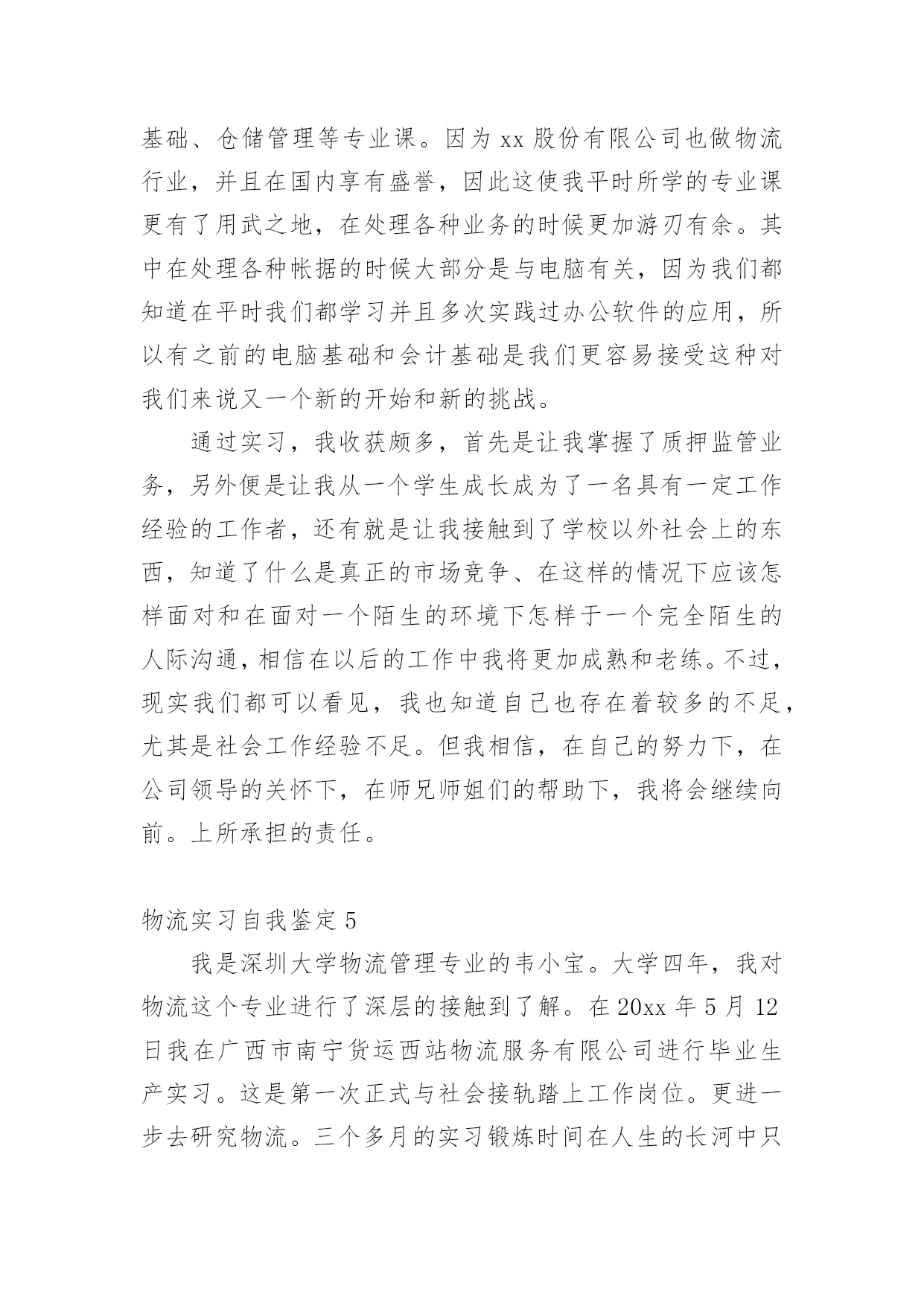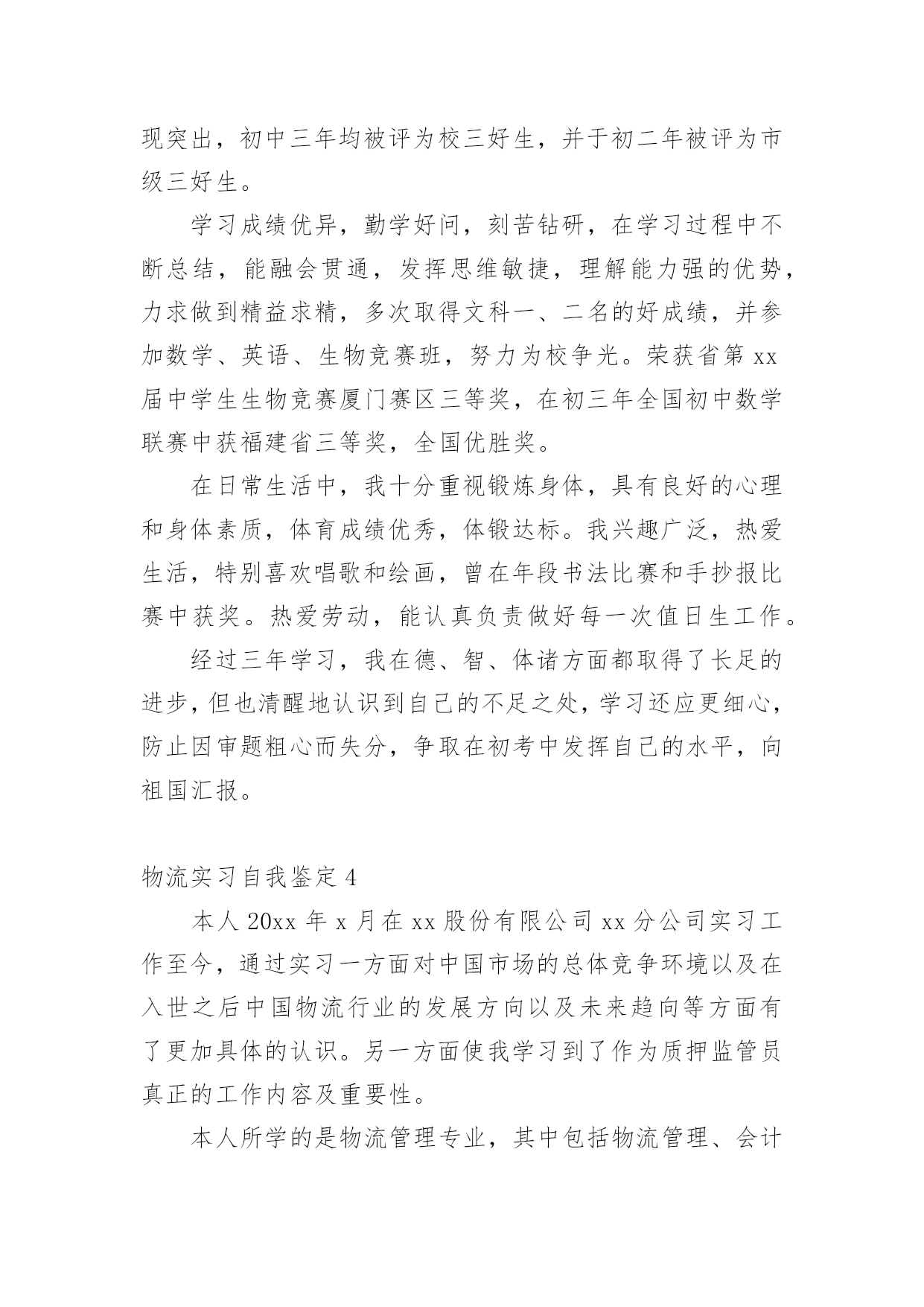 物流实习自我鉴定自我鉴定是一个人对某一特定时间段内的学习和工作生活等表现的自我总结,自我鉴定可以提升对发现问题的能力,不妨坐下来好好写写自我鉴定吧。自我鉴定你想好怎么写了吗?以下是小编帮大家整理的物流实习自我鉴定,欢迎阅读,希望大家能够喜欢。物流实习自我鉴定1通过近六个周的实习,我深刻的感受到自己各方面的不足,从学校里学到的知识的确不少,但是来公司后发现用处不大,一切都得从头开始。即便这样,我工作的非常开心,整日弥漫在工作的气氛当中,使我的神经放松,我知道工作的过程中会遇到很多困难,但我相信前途是光明的,机会总会给那些准备充分的人。实习期间我收获颇丰,商务礼仪的实践运用,例如待人接物的方式、商务人士的着装等;合同条款的商议与确定,例如责任风险的划分、纠纷问题的解决、付款时间与方式、合同的有效期等;让我懂得了人与人之间是平等的,是应该相互尊重的;以上在公司的学习到的知识是无法从学校获得的,因此我很珍惜来之不易的工作,不管将来如何,我都会以此为荣、以此为戒,教育自己,做工作要诚实守信、敢作敢当。此外,在经理和司机师傅的介绍下或者通过自己的观察学习,我们还认识了很多不同的车型,如:113、122、123桥的车,各种(长度不同的)厢式货车,一拖二的半挂车,一拖三的半挂车,前四后八、前二后一等平板和半护栏车,半挂解放(双桥)等等。这次实习,让我对货运市场有了清楚的了解,懂得也很多货代方面的知识,也看到了货代市场的极大发展前途,也让我看到了货代市场竞争的残酷,在市场有序化中逐渐的被淘汰掉,情况比较好的还可以获得有限的生存空间。物流实习自我鉴定2本人20xx年x月在股份有限公司分公司实习工作至今,通过实习一方面对中国市场的总体竞争环境以及在入世之后中国物流行业的发展方向以及未来趋向等方面有了更加具体的认识。另一方面使我学习到了作为质押监管员真正的工作内容及重要性。本人所学的是物流管理专业,其中包括物流管理、会计基础、仓储管理等专业课。因为股份有限公司也做物流行业,并且在国内享有盛誉,因此这使我平时所学的专业课更有了用武之地,在处理各种业务的时候更加游刃有余。其中在处理各种帐据的时候大部分是与电脑有关,因为我们都知道在平时我们都学习并且多次实践过办公软件的应用,所以有之前的电脑基础和会计基础是我们更容易接受这种对我们来说又一个新的开始和新的挑战。通过实习,我收获颇多,首先是让我掌握了质押监管业务,另外便是让我从一个学生成长成为了一名具有一定工作经验的工作者,还有就是让我接触到了学校以外社会上的东西,知道了什么是真正的市场竞争、在这样的情况下应该怎样面对和在面对一个陌生的环境下怎样于一个完全陌生的人际沟通,相信在以后的工作中我将更加成熟和老练。不过,现实我们都可以看见,我也知道自己也存在着较多的不足,尤其是社会工作经验不足。但我相信,在自己的努力下,在公司领导的关怀下,在师兄师姐们的帮助下,我将会继续向前。上所承担的责任。物流实习自我鉴定3光阴似箭,初中生活在不知不觉中飞逝而过。回首三年历程,我从一个懵懂顽童成长为一名品学兼优的初中毕业生,即将面临初考的选拔,我第一感谢培养我的学校、社会及养育我的父母。作为一名初中生,我明辨是非,关心国家大事,为使自己成为社会主义伟大事业的接班人而努力学习。在校,我模范遵守校纪校规,以强烈的集体荣誉感和初度的责任感为班级工作出谋划策。初中三年均担任班级学习委员,组织辩论赛、知识竞赛等活动,表现出较强的组织能力,成为老师的得力助手,并在同学中树立较初威信。我严于律己,进取心强,报名参加党章学习小组,努力提初思想觉悟,向党组织靠拢。平时积极参加社会实践,注重培养自己的能力。多次参加青年自愿者活动,具有乐于助人的品德。由于各方面表现突出,初中三年均被评为校三好生,并于初二年被评为市级三好生。学习成绩优异,勤学好问,刻苦钻研,在学习过程中不断总结,能融会贯通,发挥思维敏捷,理解能力强的优势,力求做到精益求精,多次取得文科一、二名的好成绩,并参加数学、英语、生物竞赛班,努力为校争光。荣获省第xx届中学生生物竞赛厦门赛区三等奖,在初三年全国初中数学联赛中获福建省三等奖,全国优胜奖。在日常生活中,我十分重视锻炼身体,具有良好的心理和身体素质,体育成绩优秀,体锻达标。我兴趣广泛,热爱生活,特别喜欢唱歌和绘画,曾在年段书法比赛和手抄报比赛中获奖。热爱劳动,能认真负责做好每一次值日生工作。经过三年学习,我在德、智、体诸方面都取得了长足的进步,但也清醒地认识到自己的不足之处,学习还应更细心,防止因审题粗心而失分,争取在初考中发挥自己的水平,向祖国汇报。物流实习自我鉴定4本人20xx年x月在xx股份有限公司xx分公司实习工作至今,通过实习一方面对中国市场的总体竞争环境以及在入世之后中国物流行业的发展方向以及未来趋向等方面有了更加具