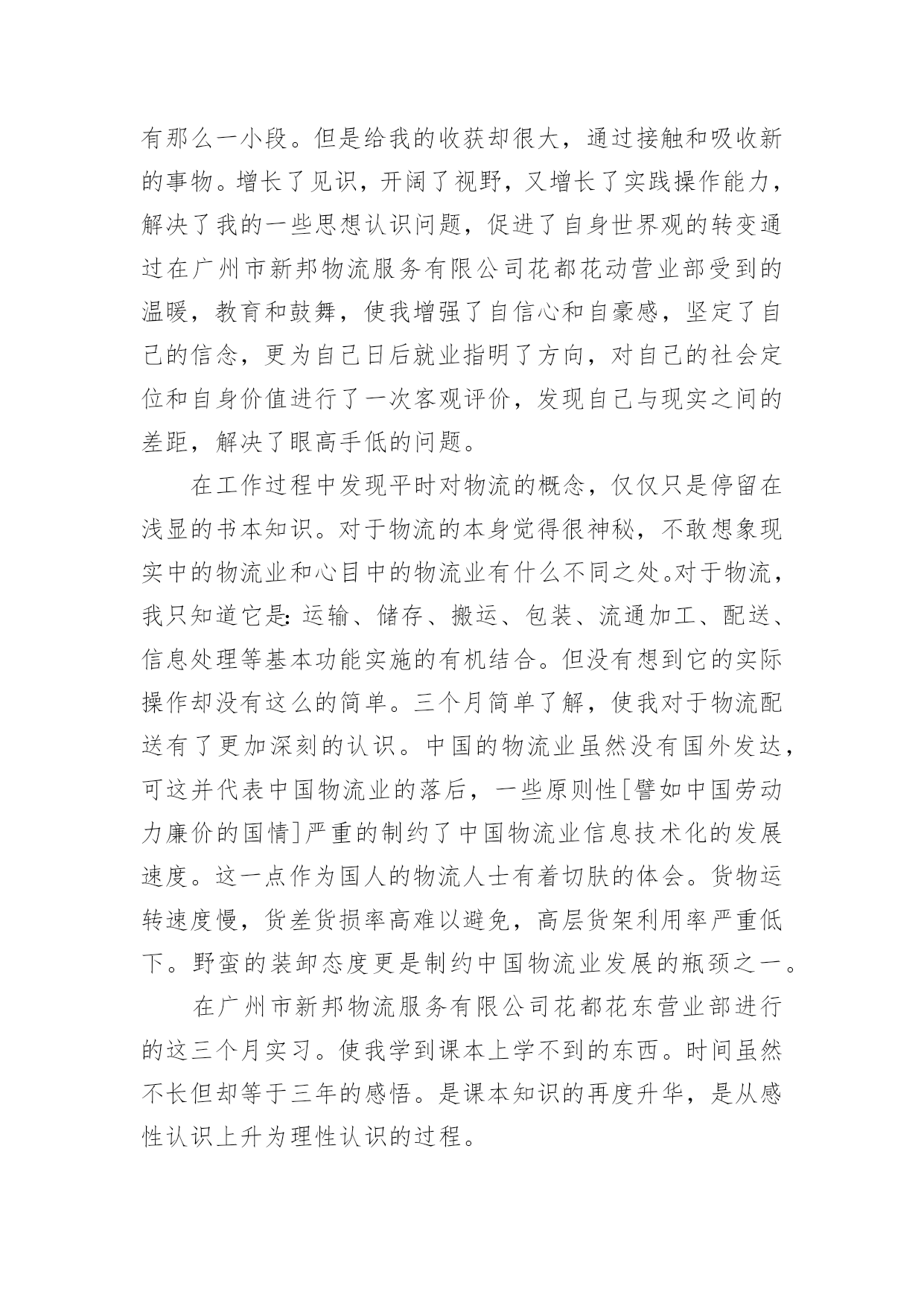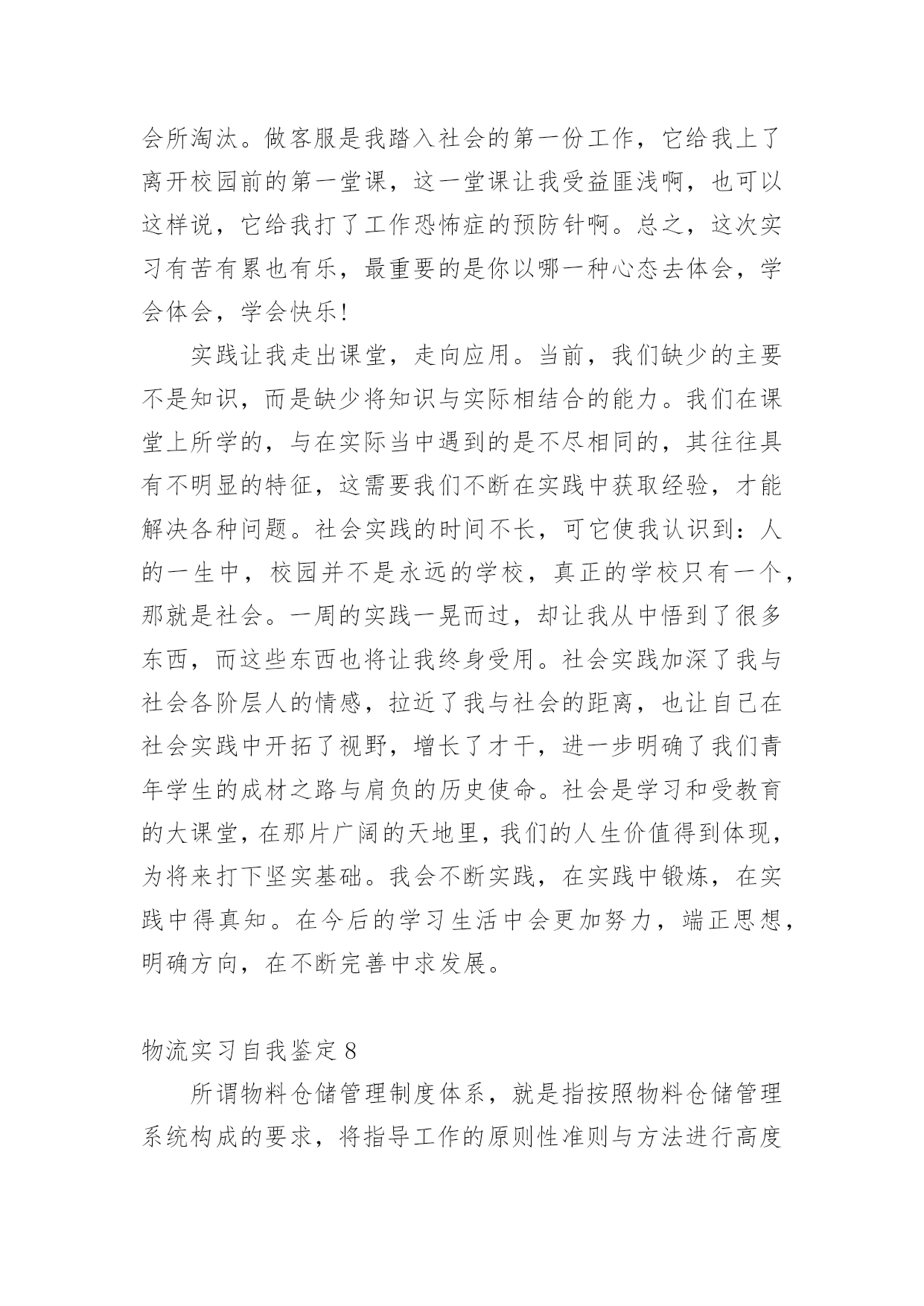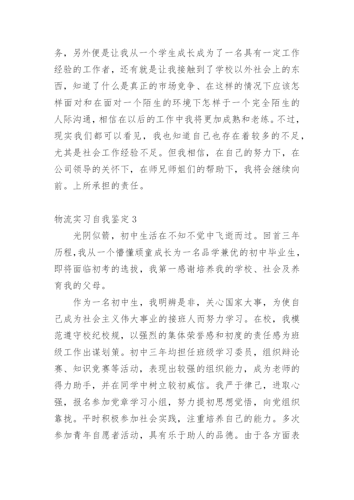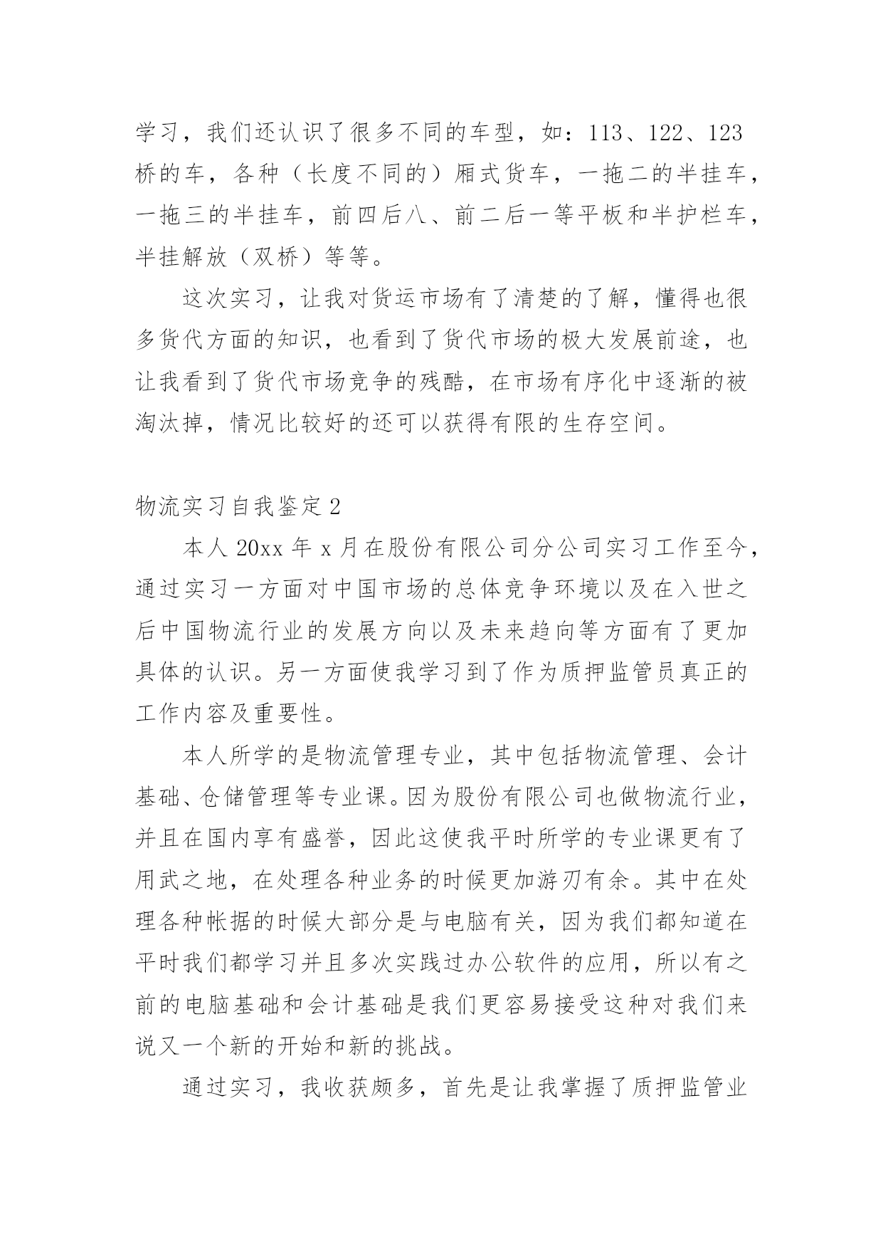 物流实习自我鉴定自我鉴定是一个人对某一特定时间段内的学习和工作生活等表现的自我总结,自我鉴定可以提升对发现问题的能力,不妨坐下来好好写写自我鉴定吧。自我鉴定你想好怎么写了吗?以下是小编帮大家整理的物流实习自我鉴定,欢迎阅读,希望大家能够喜欢。物流实习自我鉴定1通过近六个周的实习,我深刻的感受到自己各方面的不足,从学校里学到的知识的确不少,但是来公司后发现用处不大,一切都得从头开始。即便这样,我工作的非常开心,整日弥漫在工作的气氛当中,使我的神经放松,我知道工作的过程中会遇到很多困难,但我相信前途是光明的,机会总会给那些准备充分的人。实习期间我收获颇丰,商务礼仪的实践运用,例如待人接物的方式、商务人士的着装等;合同条款的商议与确定,例如责任风险的划分、纠纷问题的解决、付款时间与方式、合同的有效期等;让我懂得了人与人之间是平等的,是应该相互尊重的;以上在公司的学习到的知识是无法从学校获得的,因此我很珍惜来之不易的工作,不管将来如何,我都会以此为荣、以此为戒,教育自己,做工作要诚实守信、敢作敢当。此外,在经理和司机师傅的介绍下或者通过自己的观察学习,我们还认识了很多不同的车型,如:113、122、123桥的车,各种(长度不同的)厢式货车,一拖二的半挂车,一拖三的半挂车,前四后八、前二后一等平板和半护栏车,半挂解放(双桥)等等。这次实习,让我对货运市场有了清楚的了解,懂得也很多货代方面的知识,也看到了货代市场的极大发展前途,也让我看到了货代市场竞争的残酷,在市场有序化中逐渐的被淘汰掉,情况比较好的还可以获得有限的生存空间。物流实习自我鉴定2本人20xx年x月在股份有限公司分公司实习工作至今,通过实习一方面对中国市场的总体竞争环境以及在入世之后中国物流行业的发展方向以及未来趋向等方面有了更加具体的认识。另一方面使我学习到了作为质押监管员真正的工作内容及重要性。本人所学的是物流管理专业,其中包括物流管理、会计基础、仓储管理等专业课。因为股份有限公司也做物流行业,并且在国内享有盛誉,因此这使我平时所学的专业课更有了用武之地,在处理各种业务的时候更加游刃有余。其中在处理各种帐据的时候大部分是与电脑有关,因为我们都知道在平时我们都学习并且多次实践过办公软件的应用,所以有之前的电脑基础和会计基础是我们更容易接受这种对我们来说又一个新的开始和新的挑战。通过实习,我收获颇多,首先是让我掌握了质押监管业务,另外便是让我从一个学生成长成为了一名具有一定工作经验的工作者,还有就是让我接触到了学校以外社会上的东西,知道了什么是真正的市场竞争、在这样的情况下应该怎样面对和在面对一个陌生的环境下怎样于一个完全陌生的人际沟通,相信在以后的工作中我将更加成熟和老练。不过,现实我们都可以看见,我也知道自己也存在着较多的不足,尤其是社会工作经验不足。但我相信,在自己的努力下,在公司领导的关怀下,在师兄师姐们的帮助下,我将会继续向前。上所承担的责任。物流实习自我鉴定3光阴似箭,初中生活在不知不觉中飞逝而过。回首三年历程,我从一个懵懂顽童成长为一名品学兼优的初中毕业生,即将面临初考的选拔,我第一感谢培养我的学校、社会及养育我的父母。作为一名初中生,我明辨是非,关心国家大事,为使自己成为社会主义伟大事业的接班人而努力学习。在校,我模范遵守校纪校规,以强烈的集体荣誉感和初度的责任感为班级工作出谋划策。初中三年均担任班级学习委员,组织辩论赛、知识竞赛等活动,表现出较强的组织能力,成为老师的得力助手,并在同学中树立较初威信。我严于律己,进取心强,报名参加党章学习小组,努力提初思想觉悟,向党组织靠拢。平时积极参加社会实践,注重培养自己的能力。多次参加青年自愿者活动,具有乐于助人的品德。由于各方面表现突出,初中三年均被评为校三好生,并于初二年被评为市级三好生。学习成绩优异,勤学好问,刻苦钻研,在学习过程中不断总结,能融会贯通,发挥思维敏捷,理解能力强的优势,力求做到精益求精,多次取得文科一、二名的好成绩,并参加数学、英语、生物竞赛班,努力为校争光。荣获省第xx届中学生生物竞赛厦门赛区三等奖,在初三年全国初中数学联赛中获福建省三等奖,全国优胜奖。在日常生活中,我十分重视锻炼身体,具有良好的心理和身体素质,体育成绩优秀,体锻达标。我兴趣广泛,热爱生活,特别喜欢唱歌和绘画,曾在年段书法比赛和手抄报比赛中获奖。热爱劳动,能认真负责做好每一次值日生工作。经过三年学习,我在德、智、体诸方面都取得了长足的进步,但也清醒地认识到自己的不足之处,学习还应更细心,防止因审题粗心而失分,争取在初考中发挥自己的水平,向祖国汇报。物流实习自我鉴定4本人20xx年x月在xx股份有限公司xx分公司实习工作至今,通过实习一方面对中国市场的总体竞争环境以及在入世之后中国物流行业的发展方向以及未来趋向等方面有了更加具