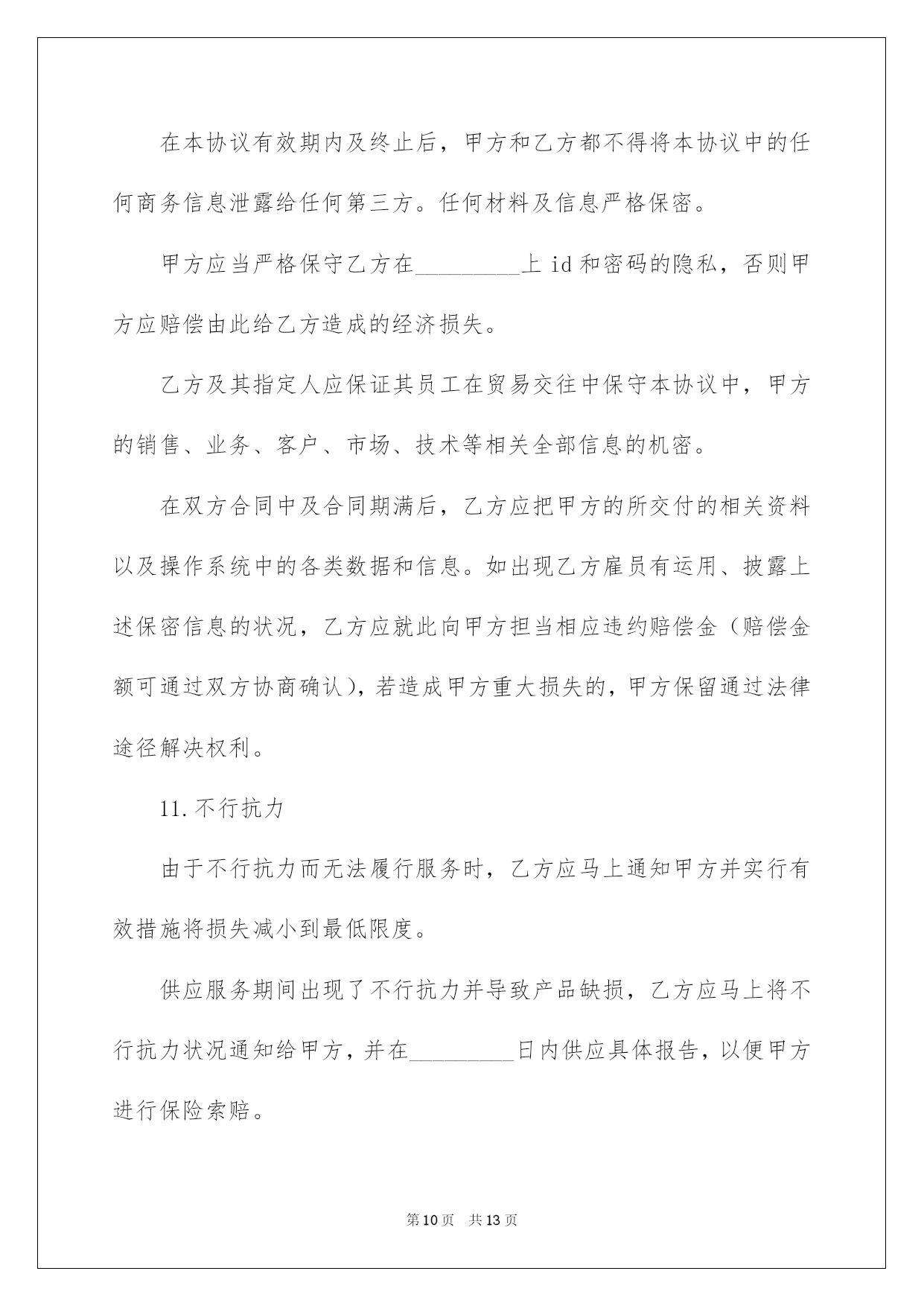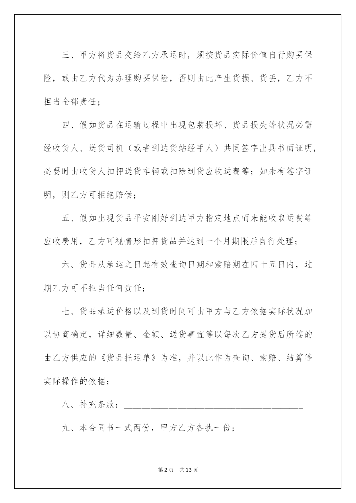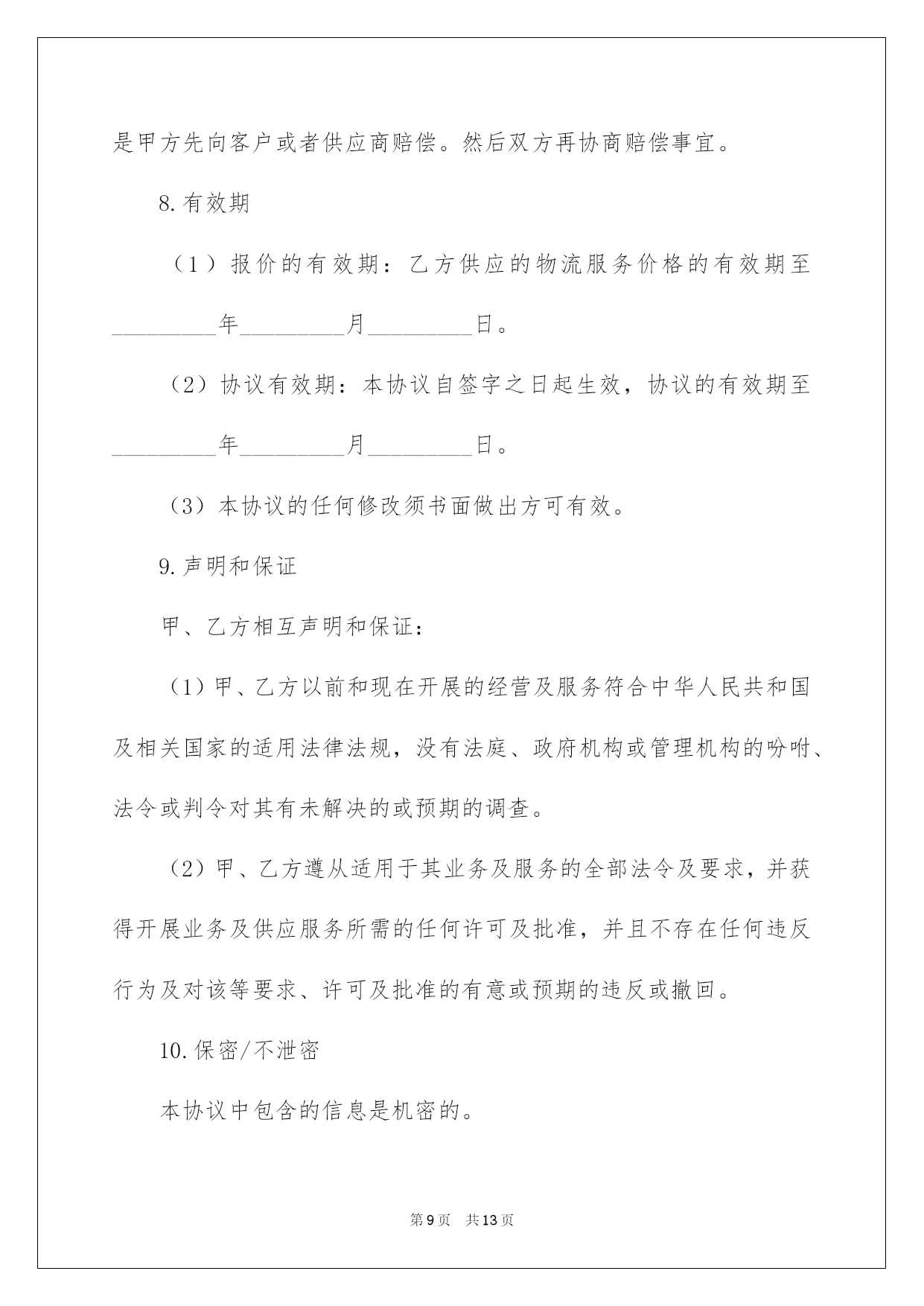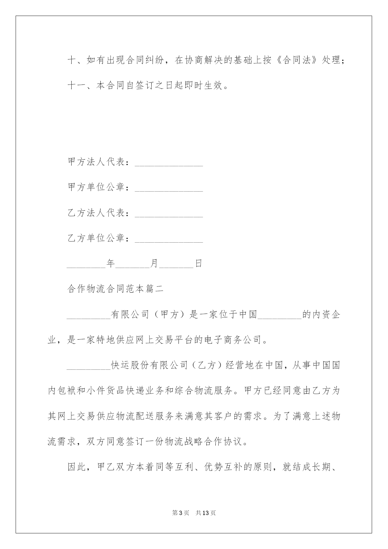 第PAGE\*Arabic\*MERGEFORMAT13页共NUMPAGES\*Arabic\*MERGEFORMAT13页第PAGE\*MERGEFORMAT13页共NUMPAGES\*MERGEFORMAT13页第PAGE\*MERGEFORMAT13页共NUMPAGES\*MERGEFORMAT13页第PAGE\*MERGEFORMAT13页共NUMPAGES\*MERGEFORMAT13页第PAGE\*MERGEFORMAT13页共NUMPAGES\*MERGEFORMAT13页第PAGE\*MERGEFORMAT13页共NUMPAGES\*MERGEFORMAT13页第PAGE\*MERGEFORMAT13页共NUMPAGES\*MERGEFORMAT13页第PAGE\*MERGEFORMAT13页共NUMPAGES\*MERGEFORMAT13页第PAGE\*MERGEFORMAT13页共NUMPAGES\*MERGEFORMAT13页第PAGE\*MERGEFORMAT13页共NUMPAGES\*MERGEFORMAT13页第PAGE\*MERGEFORMAT13页共NUMPAGES\*MERGEFORMAT13页2022合作物流合同合作物流合同范本随着市场经济的发展以及入世后国外领先企业的不断涌入,中国企业面临着越来越困难多变的市场环境,在市场竞争的巨大压力下,企业起先将目光转向物流,希望通过高效的物流管理来提高整个供应链运行效率。以下是合作物流合同范本,欢迎阅读。合作物流合同范本篇一物流合同甲方(即托运方)____________________________乙方(即承运方)___________________________依据甲方与乙方的共同协商,在遵循《合同法》的基础上,就甲方将发往全国各地的货品交给乙方承运事项制定如下条款:一、甲方自愿将发往全国各地的货品交给乙方承运;二、甲方将货品交给乙方承运时,须供应货品运输途中所须要的全部合法手续,以及规范、平安的货品包装,并不得将国家违禁物品(含各种易燃易爆物品)夹带货品中,否则由此造成全部损失由甲方担当;三、甲方将货品交给乙方承运时,须按货品实际价值自行购买保险,或由乙方代为办理购买保险,否则由此产生货损、货丢,乙方不担当全部责任;四、假如货品在运输过程中出现包装损坏、货品损失等状况必需经收货人、送货司机(或者到达货站经手人)共同签字出具书面证明,必要时由收货人扣押送货车辆或扣除到货应收运费等;如未有签字证明,则乙方可拒绝赔偿;五、假如出现货品平安刚好到达甲方指定地点而未能收取运费等应收费用,乙方可视情形扣押货品并达到一个月期限后自行处理;六、货品从承运之日起有效查询日期和索赔期在四十五日内,过期乙方可不担当任何责任;七、货品承运价格以及到货时间可由甲方与乙方依据实际状况加以协商确定,详细数量、金额、送货事宜等以每次乙方提货后所签的由乙方供应的《货品托运单》为准,并以此作为查询、索赔、结算等实际操作的依据;八、补充条款:________________________________________九、本合同书一式两份,甲方乙方各执一份;十、如有出现合同纠纷,在协商解决的基础上按《合同法》处理;十一、本合同自签订之日起即时生效。甲方法人代表:______________甲方单位公章:______________乙方法人代表:______________乙方单位公章:______________________年_______月_______日合作物流合同范本篇二_________有限公司(甲方)是一家位于中国_________的内资企业,是一家特地供应网上交易平台的电子商务公司。_________快运股份有限公司(乙方)经营地在中国,从事中国国内包袱和小件货品快递业务和综合物流服务。甲方已经同意由乙方为其网上交易供应物流配送服务来满意其客户的需求。为了满意上述物流需求,双方同意签订一份物流战略合作协议。因此,甲乙双方本着同等互利、优势互补的原则,就结成长期、全面的电子商务物流战略伙伴关系,实现资源共享、共同发展,并为以后在其他项目上的合作建立一个坚实的基础,经友好协商双方达成如下协议条款:1.定义产品:指在甲方交易系统-_________上进行交易的各种产品。货品:同本协议产品的定义。供应商:指在_________上进行交易的供货方,包括自然人、法人和其它组织。客户:系指通过_________交易系统购买商品的自然人和法人以及其它组织机构。价格:系指_________快运股份有限公司供应给_____