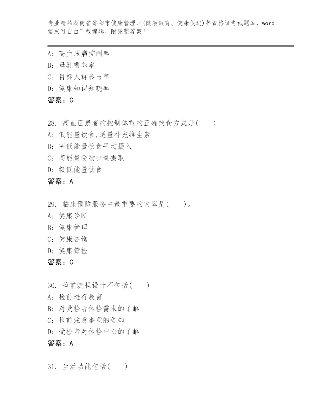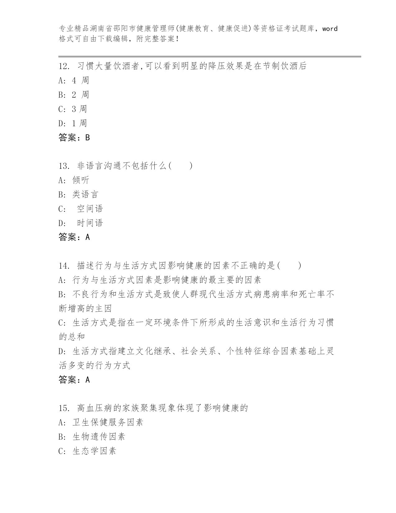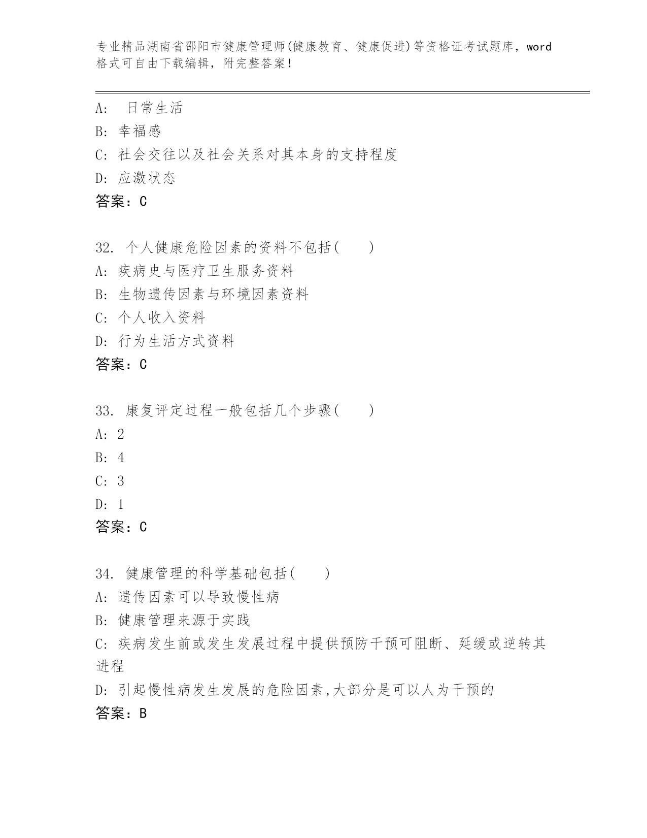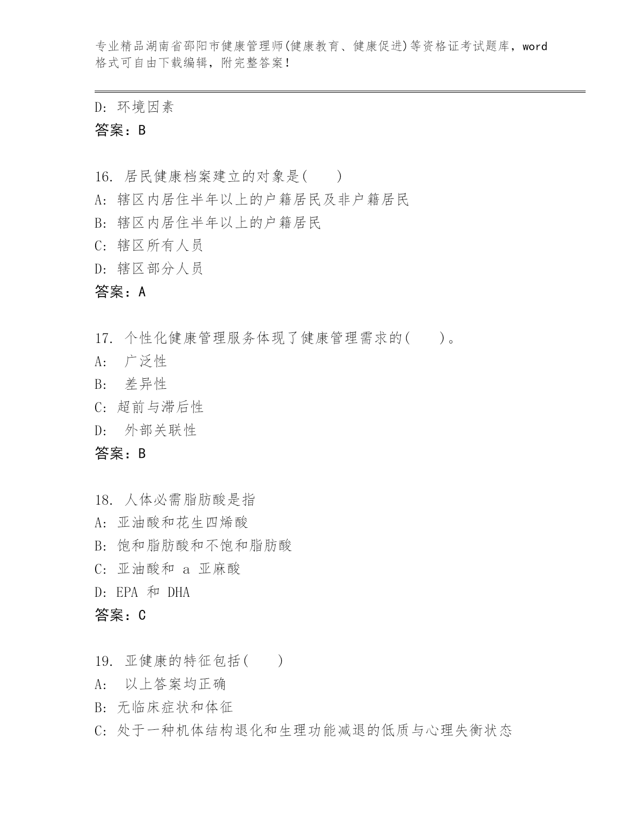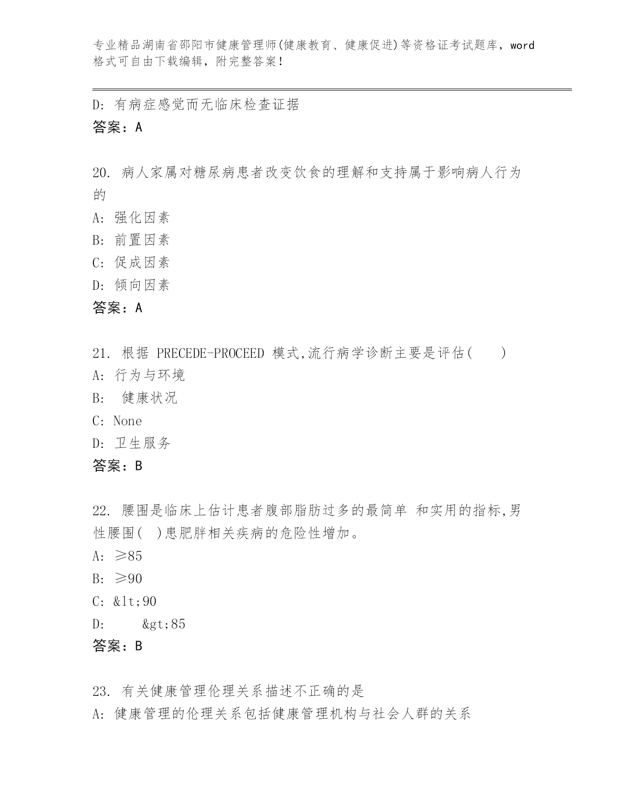 精品湖南省邵阳市健康管理师(健康教育、健康促进)等资格证考试精选题库(必刷)