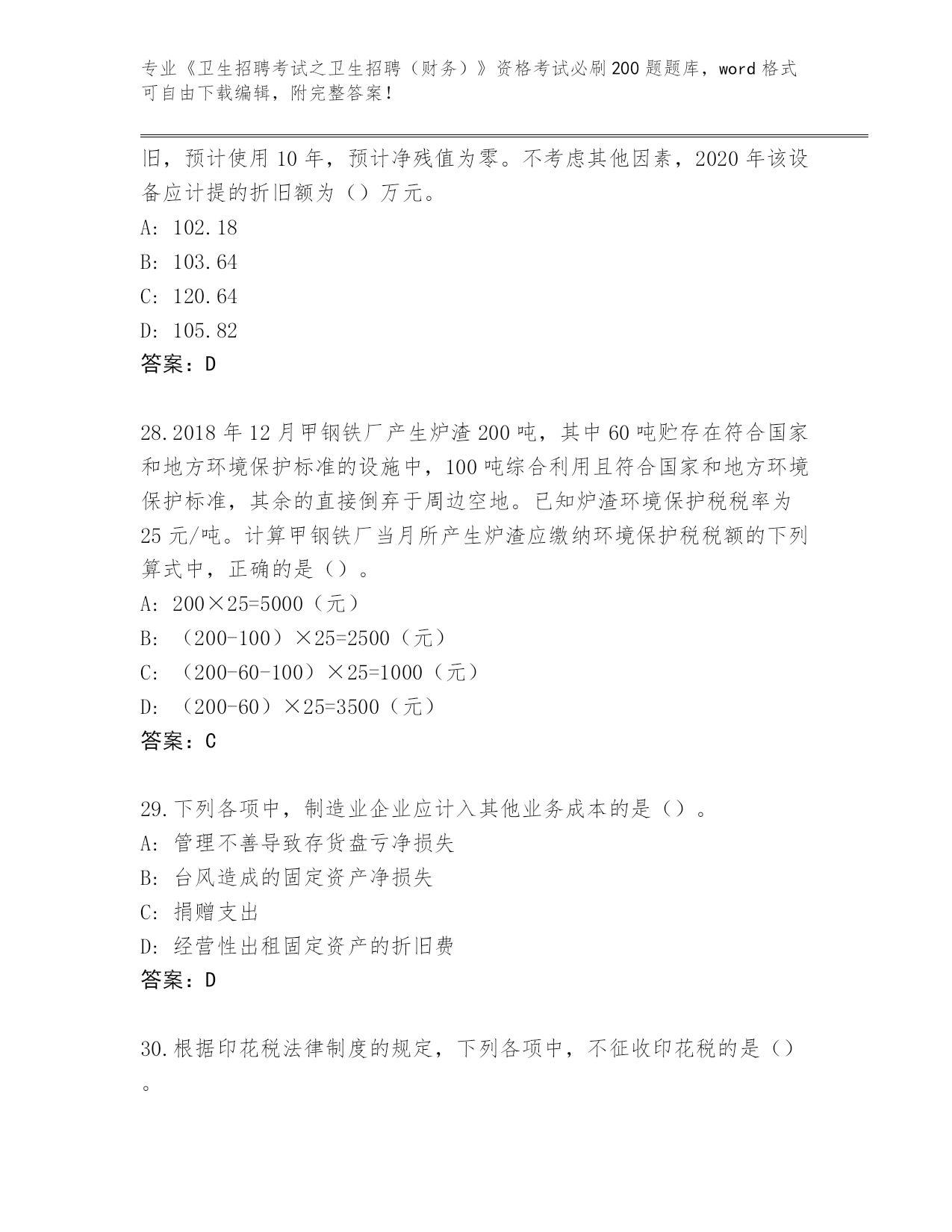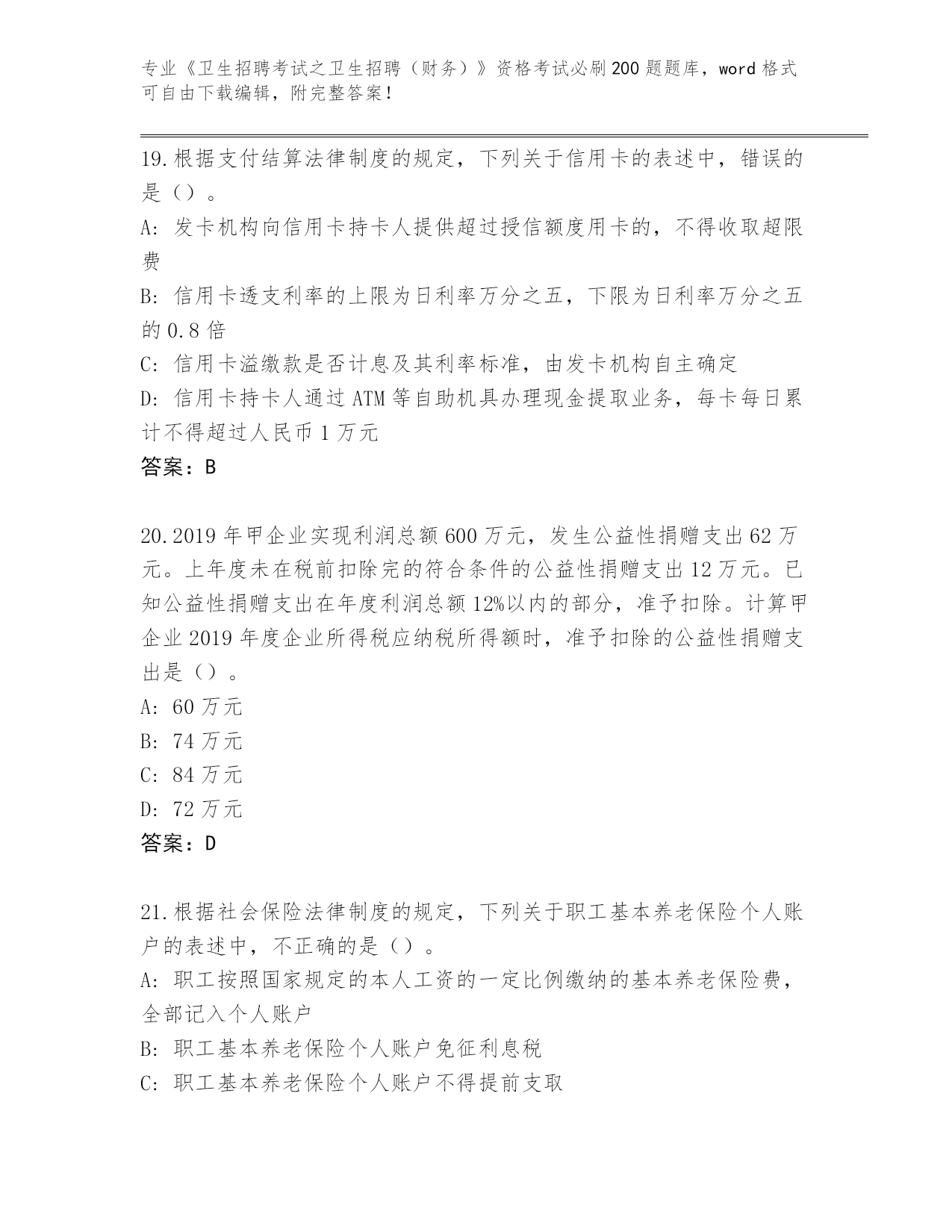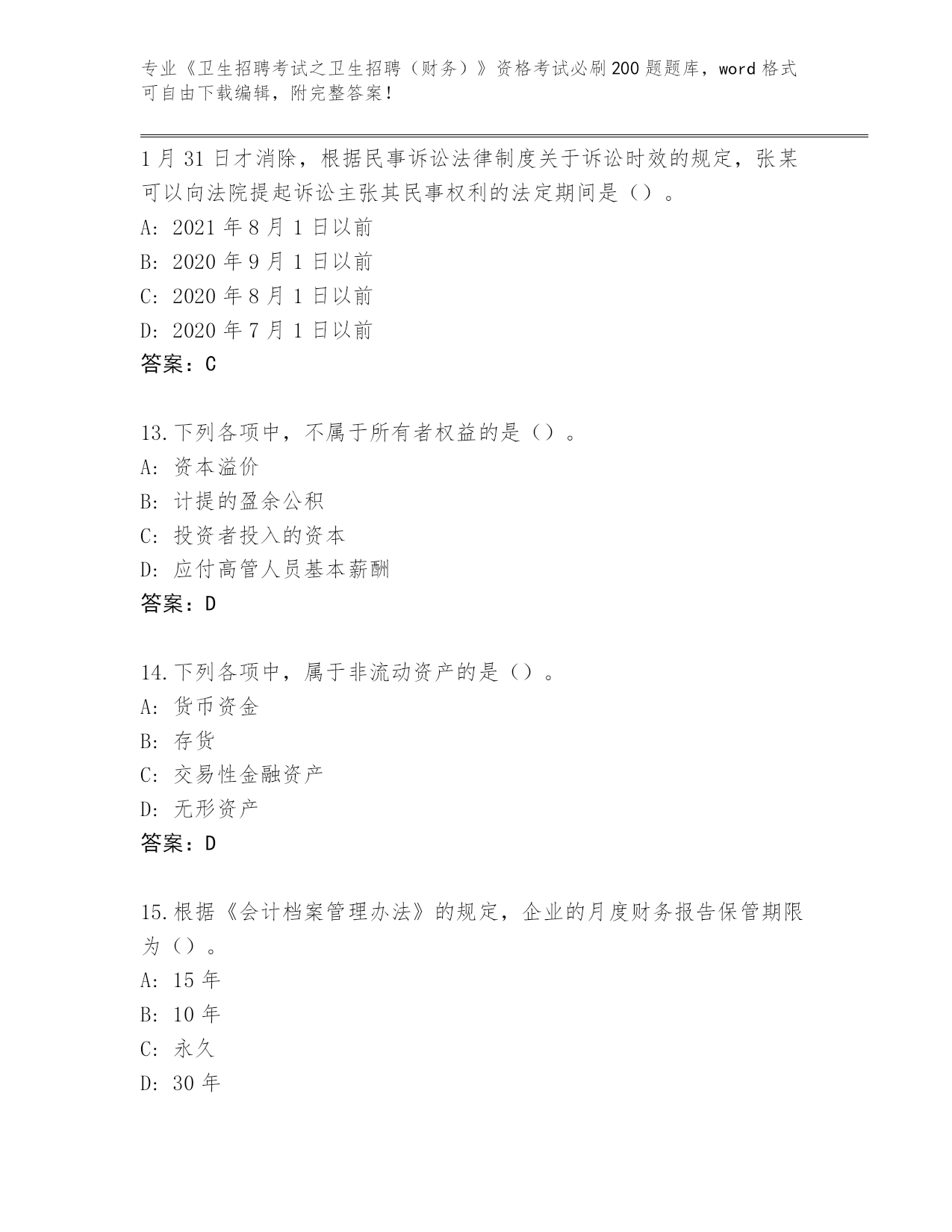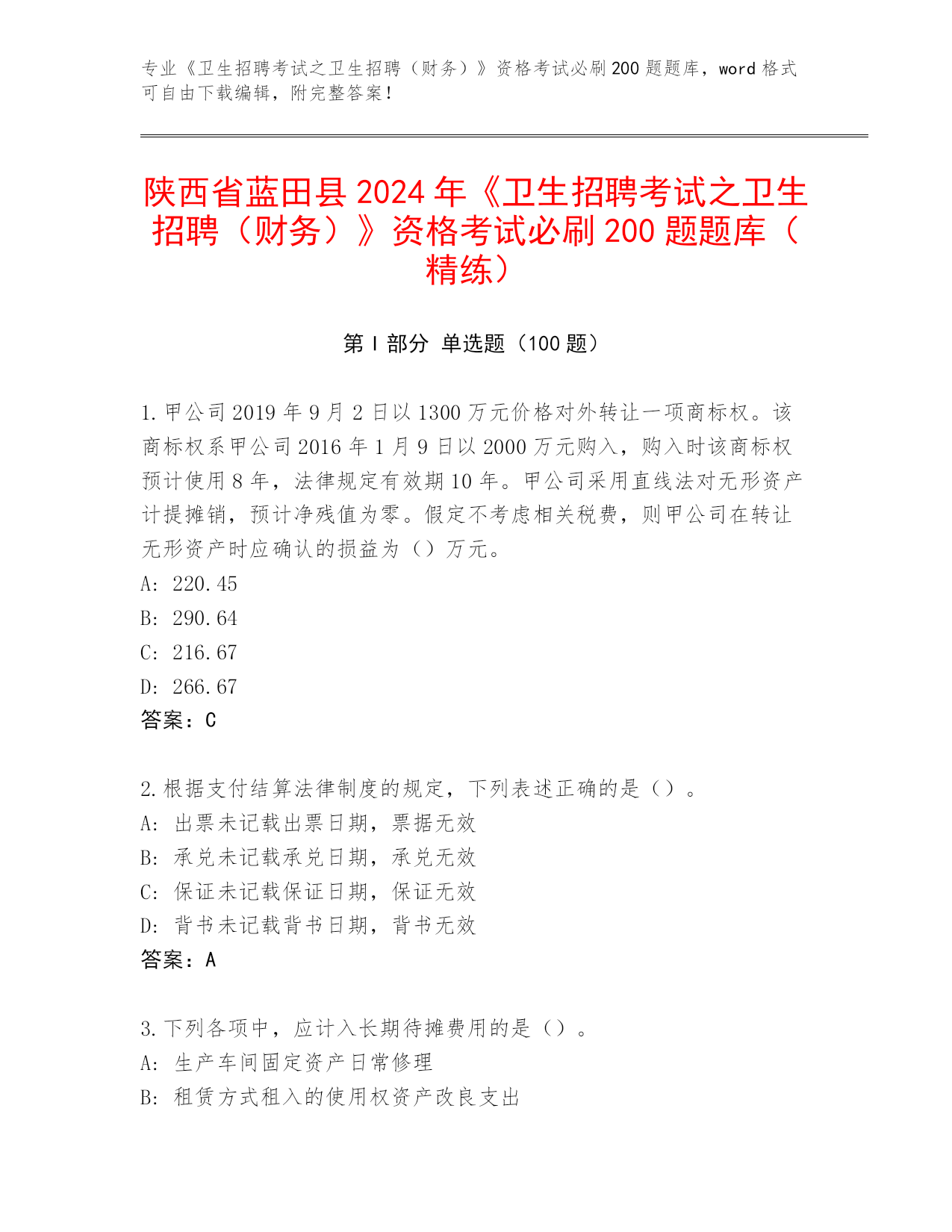 内部使用陕西省蓝田县《卫生招聘考试之卫生招聘(财务)》考试必刷200题题库(名师系列)