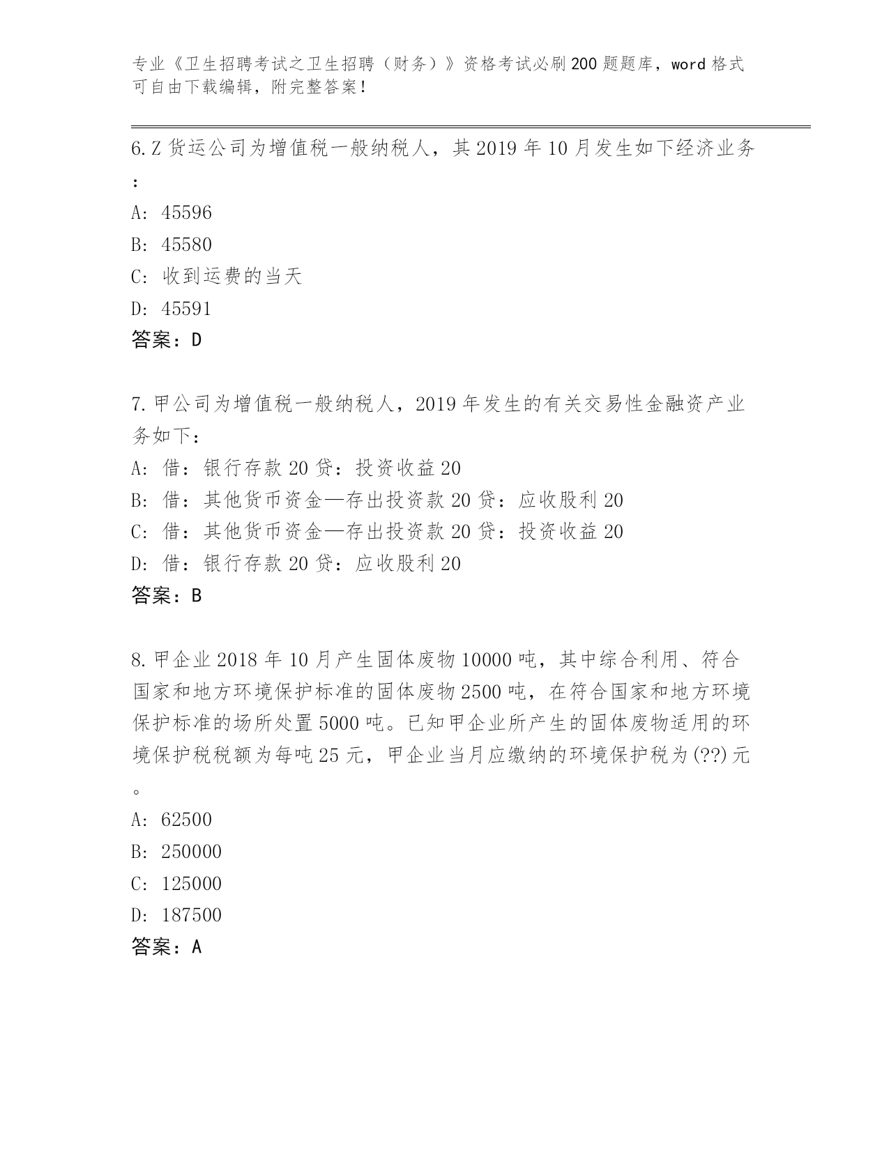 整理陕西省《卫生招聘考试之卫生招聘(财务)》资格考试必刷200题题库及答案(必刷)
