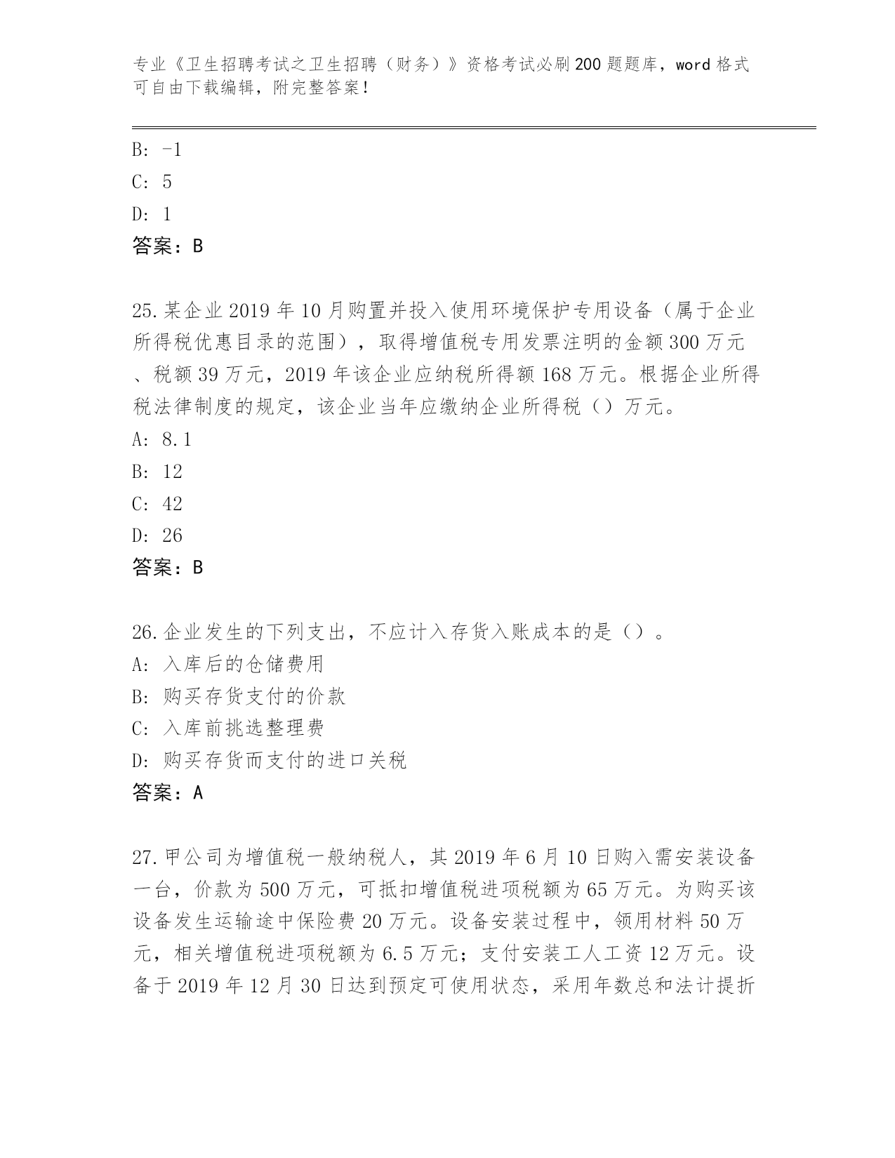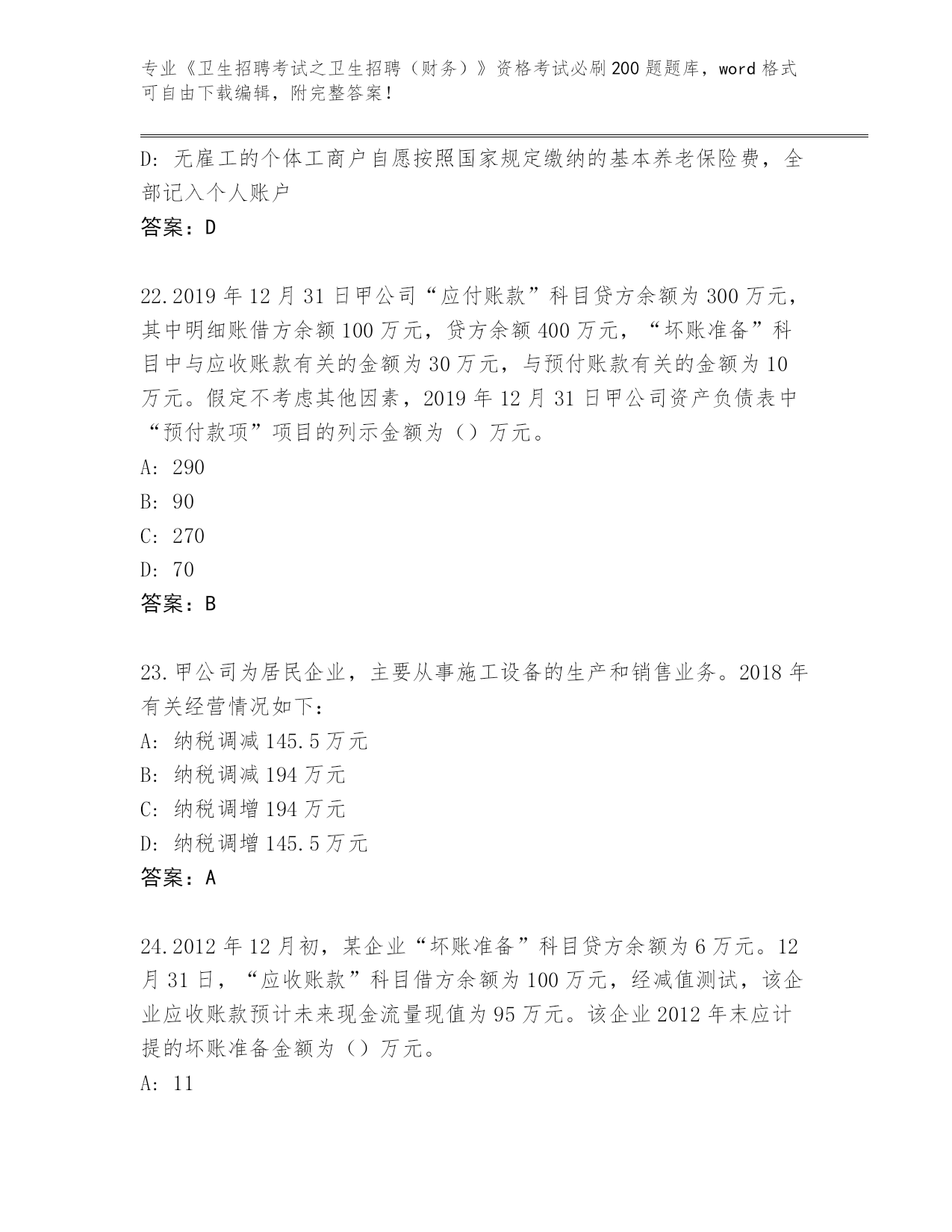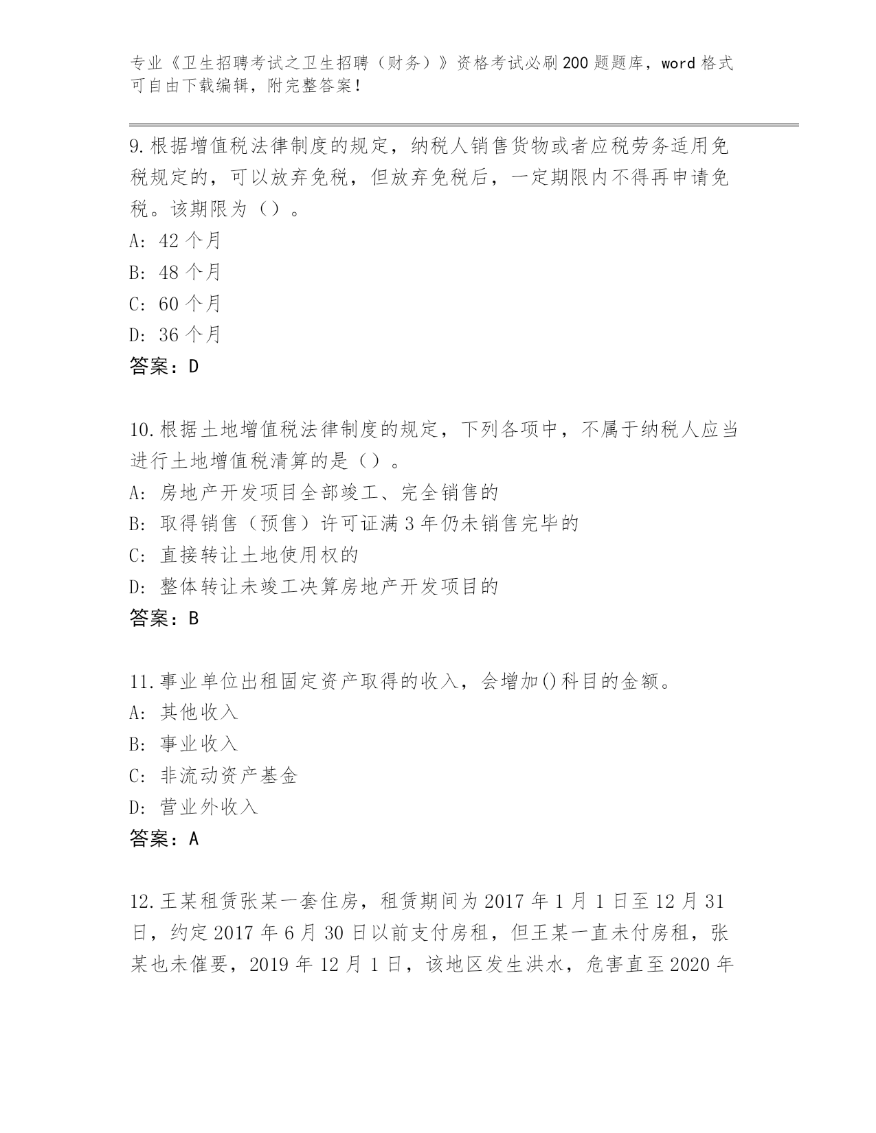 陕西省蓝田县2024年《卫生招聘考试之卫生招聘(财务)》资格考试必刷200题题库附答案(基础题)