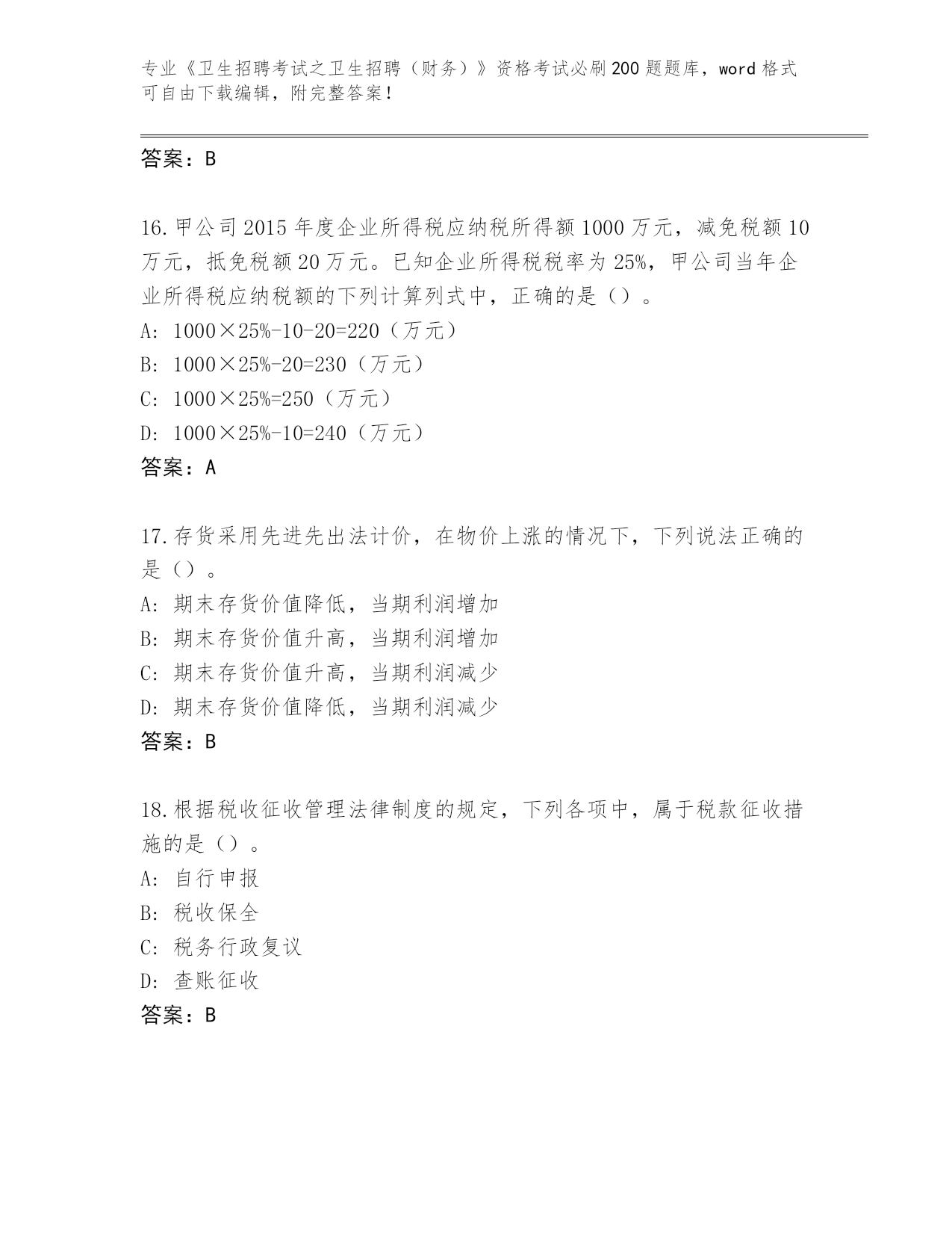 整理陕西省蓝田县《卫生招聘考试之卫生招聘(财务)》考试必刷200题审定版