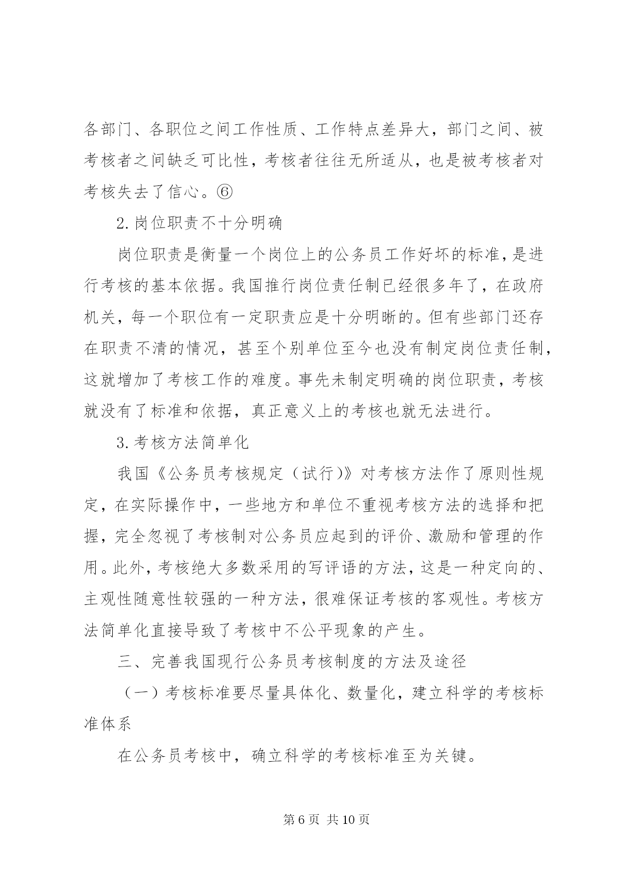 我国现行公务员考核制度存在问题及对策考核制度存在问题及对策