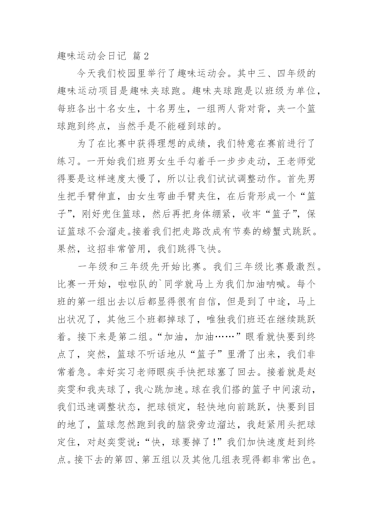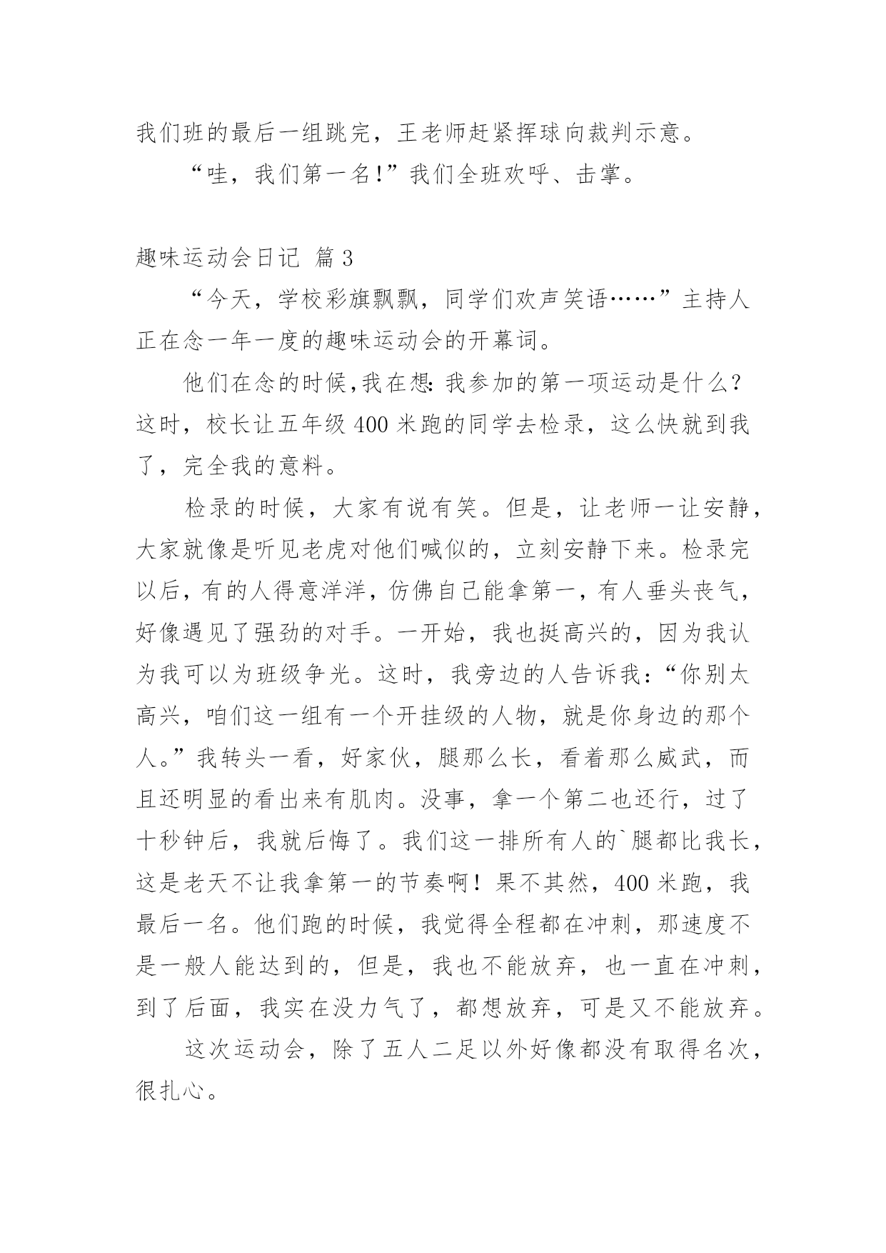 趣味运动会日记一天的时间眼看就要结束了,相信大家都有不少体会吧,这时候十分有必须要写一篇日记了。好的日记都具备一些什么特点呢?以下是小编精心整理的趣味运动会日记3篇,希望对大家有所帮助。趣味运动会日记篇1盐城市第一小学第一届趣味运动会星期五下午在操场上进行。第一项比赛是障碍运球,操场上放着一些椅子,周围坐着人。运动员要饶过这些障碍物拍着球跑,把球传给下一个运动员值到终点。各班的运动员都入场了,个个都精神饱满,嘟--嘟,比赛开始了,我们班现在上场的'是姜婧靓同学,她拍着球,可能因为太紧张了,所以饶障碍物时,球跑了,她又去拣回来,就这样,她好不容易才把球传给下一个同学,可比别的班落下了一大截。该薛晓航上场了,她是我好朋友,也是我们班的体育健将,薛晓航一接到球就拍着球飞跑,我们在下边使劲为他鼓掌。加油,不一会儿,薛晓航不但最回了落下的一大截,还把别的班运动员都甩到了后面,我们班这一项赢了,我们大家好高兴啊!接着又比赛了铺路前进与五环接力。虽然运动会在掌声中结束了,但我到现在还记忆犹新。趣味运动会日记篇2今天我们校园里举行了趣味运动会。其中三、四年级的趣味运动项目是趣味夹球跑。趣味夹球跑是以班级为单位,每班各出十名女生,十名男生,一组两人背对背,夹一个篮球跑到终点,当然手是不能碰到球的。为了在比赛中获得理想的成绩,我们特意在赛前进行了练习。一开始我们班男女生手勾着手一步步走动,王老师觉得要是这样速度太慢了,所以让我们试试调整动作。首先男生把手臂伸直,由女生弯曲手臂夹住,在后背形成一个“篮子”,刚好兜住篮球,然后再把身体绷紧,收牢“篮子”,保证篮球不会溜走。接着我们把走路改成有节奏的螃蟹式跳跃。果然,这招非常管用,我们跳得飞快。一年级和三年级先开始比赛。我们三年级比赛最激烈。比赛一开始,啦啦队的`同学就马上为我们加油呐喊。每个班的第一组出去以后都显得很有自信,但是到了中途,马上出状况了,其他三个班都掉球了,唯独我们班还在继续跳跃着。接下来是第二组。“加油,加油……”眼看就快要到终点了,突然,篮球不听话地从“篮子”里滑了出来,我们非常着急。幸好实习老师眼疾手快把球塞了回去。接着就是赵奕雯和我夹球了,我心跳加速。球在我们搭的篮子中间滚动,我们迅速调整状态,把球锁定,轻快地向前跳跃,快要到目的地了,篮球忽然跑到我的脑袋旁边溜达,我赶紧用头把球定住,对赵奕雯说:“快,球要掉了!”我们加快速度赶到终点。接下去的第四、第五组以及其他几组表现得都非常出色。我们班的最后一组跳完,王老师赶紧挥球向裁判示意。“哇,我们第一名!”我们全班欢呼、击掌。趣味运动会日记篇3“今天,学校彩旗飘飘,同学们欢声笑语……”主持人正在念一年一度的趣味运动会的开幕词。他们在念的时候,我在想:我参加的第一项运动是什么?这时,校长让五年级400米跑的同学去检录,这么快就到我了,完全我的意料。检录的时候,大家有说有笑。但是,让老师一让安静,大家就像是听见老虎对他们喊似的,立刻安静下来。检录完以后,有的人得意洋洋,仿佛自己能拿第一,有人垂头丧气,好像遇见了强劲的对手。一开始,我也挺高兴的,因为我认为我可以为班级争光。这时,我旁边的人告诉我:“你别太高兴,咱们这一组有一个开挂级的人物,就是你身边的那个人。”我转头一看,好家伙,腿那么长,看着那么威武,而且还明显的看出来有肌肉。没事,拿一个第二也还行,过了十秒钟后,我就后悔了。我们这一排所有人的`腿都比我长,这是老天不让我拿第一的节奏啊!果不其然,400米跑,我最后一名。他们跑的时候,我觉得全程都在冲刺,那速度不是一般人能达到的,但是,我也不能放弃,也一直在冲刺,到了后面,我实在没力气了,都想放弃,可是又不能放弃。这次运动会,除了五人二足以外好像都没有取得名次,很扎心。