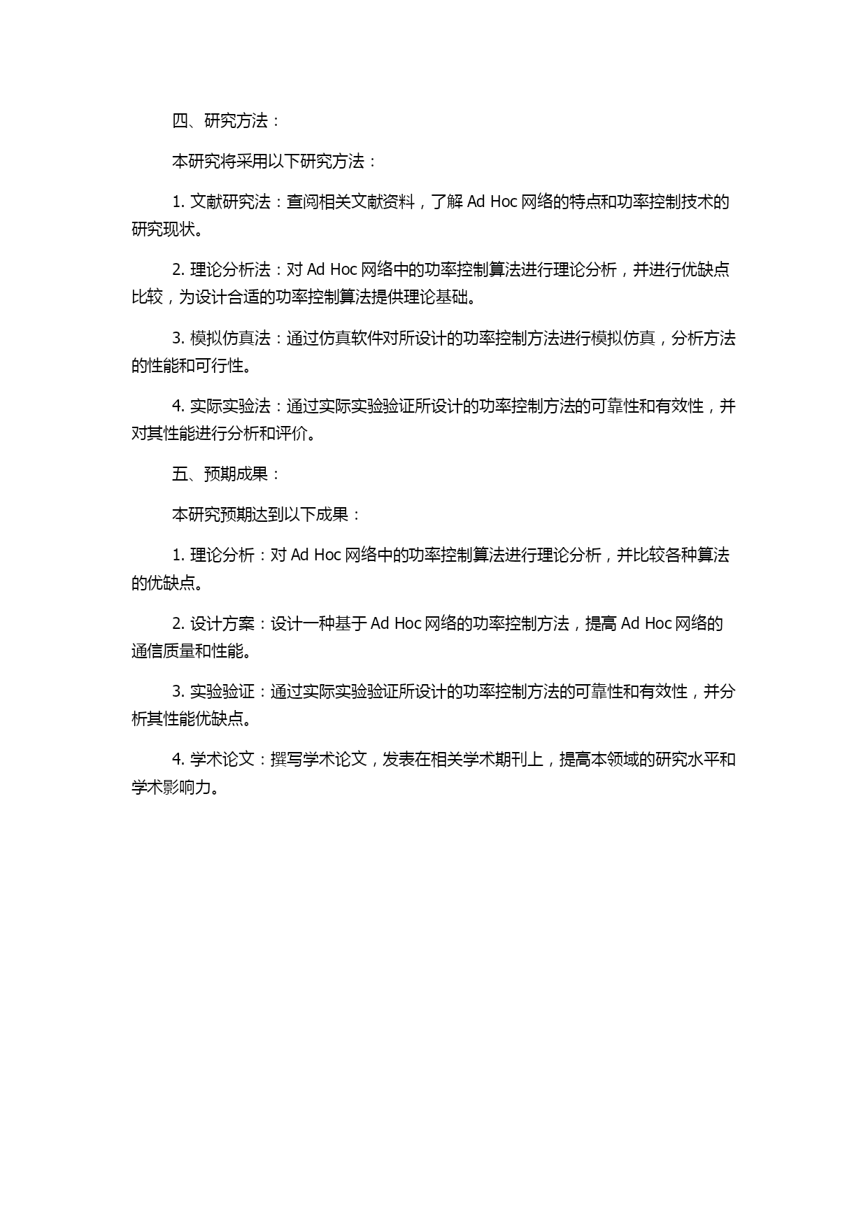Ad-Hoc网络功率控制的研究的开题报告.docx