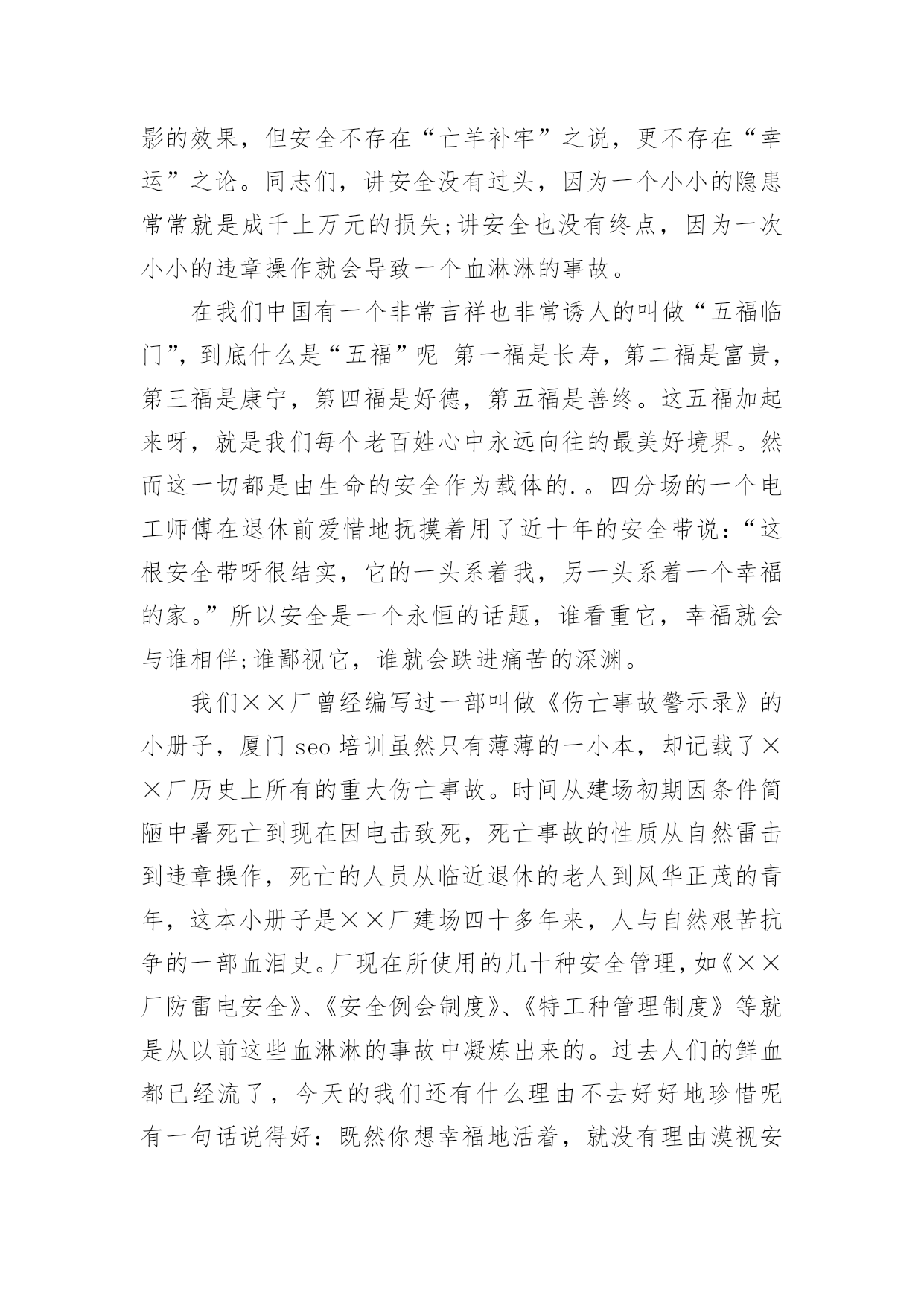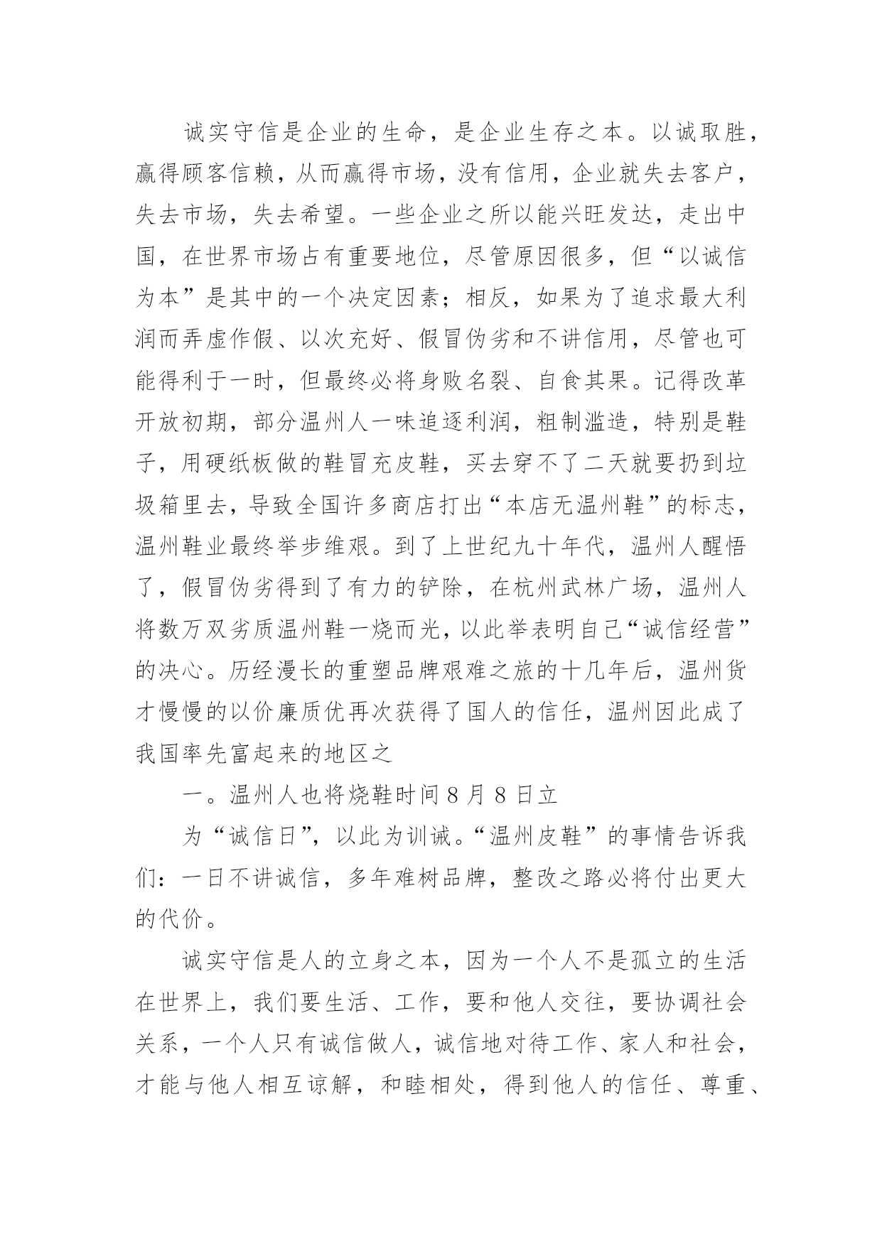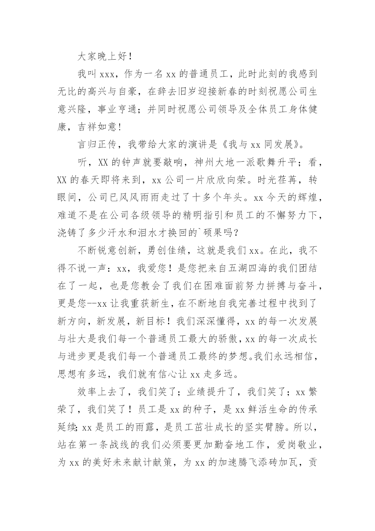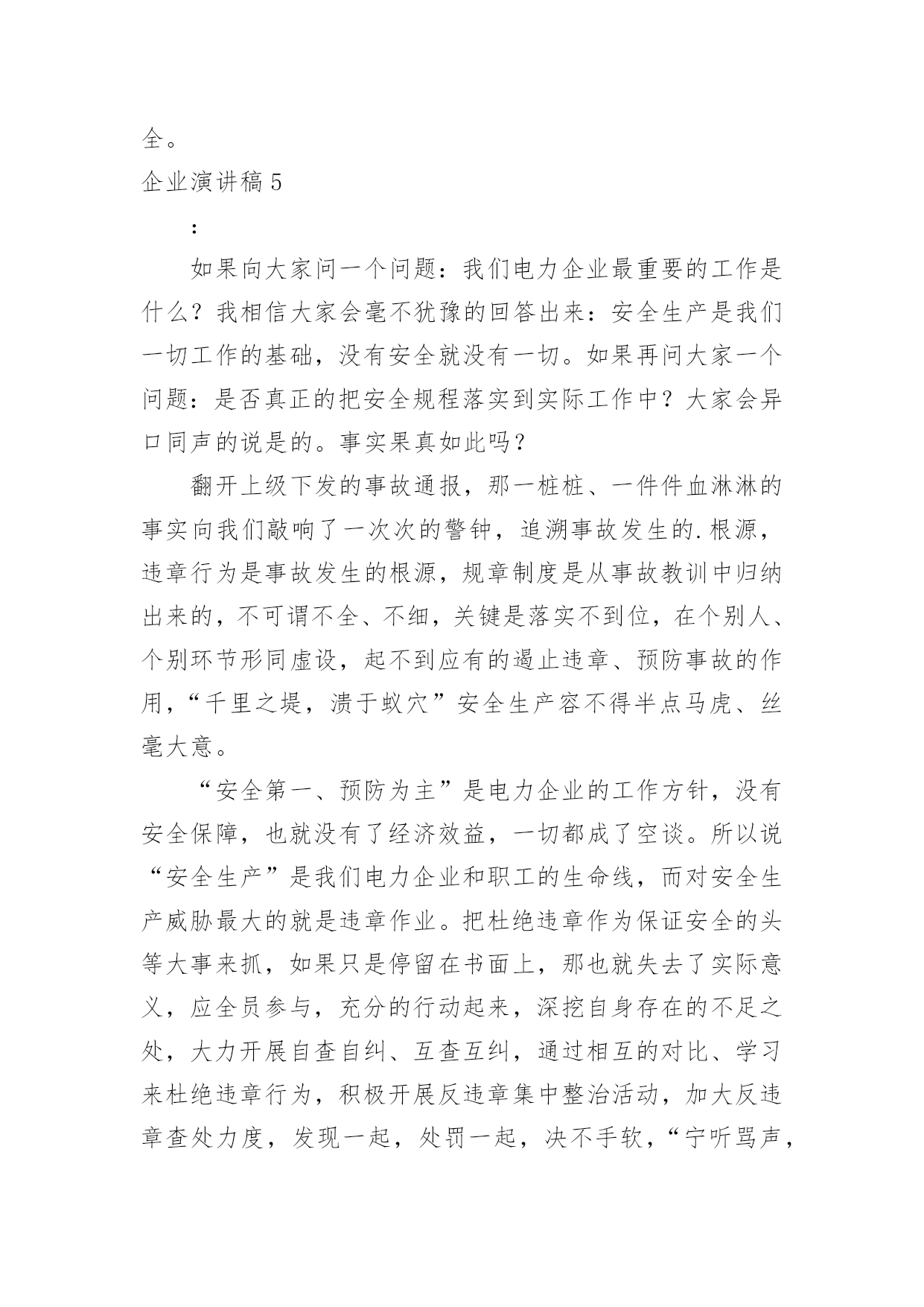企业演讲稿企业演讲稿演讲稿以发表意见,表达观点为主,是为演讲而事先准备好的文稿。在生活中,能够利用到演讲稿的场合越来越多,来参考自己需要的演讲稿吧!下面是小编收集整理的企业演讲稿,仅供参考,大家一起来看看吧。企业演讲稿1尊敬的领导,亲爱的同事们:大家好!今天,我带着一份客服工作的荣耀站在这里。能够被这样的一份荣光环绕,是我在这份工作上最为自豪的一件事情。我知道,今天我头上所顶着的光亮,是每一位领导以及同事对我的支持和鼓励,也是大家对我之前工作的认可和肯定,我很开心在这个集体之中工作生活,也很开心在公司这个平台上发展创造,在这里,我真诚的感谢我们的公司,也真诚的感谢每一位帮助过我的家人,谢谢大家!这次在员工大会上发言我真的很紧张。因为我进入这个行业不是很久,现在就得到了这一份殊荣,我真的很激动同时也很害怕,我害怕自己会因为一点小失误而让大家失望,我也很害怕自己不够胆大,让大家看到了我不好的一面。但是这次,我还是鼓励了自己要勇敢出发,不要害怕,不管是站在台上还是在平凡的岗位上工作,我都应该带着一份决心和勇气前行,这是我在这条道路上越走越远的真谛。还记得两年前自己刚刚毕业,被公司录用之后,我就开始慢慢去挖掘和发展自己了。那时候我并不知道自己在客服工作上会有这么大的优势,我总觉得自己什么事情都没有办法做好,所以一开始情绪也是比较低落的。直到后来领导把我叫到办公室去聊了一会天,我就对自己多了一些信心了。他鼓励了我,并且激励着我去发现自己最好的那一面。在此之前,我对自己并没有太大的定义的,对于自己的这份工作也是摸不着头脑的.,但是当我把心态放正了之后,我才发现原来做好一件事情很难,同时也很简单。只要我们有一个积极向上的心态其实就已经足够了。没有任何一个人会平白无故的接触成功,也没有任何一个人可以在一条道路上永远的顺风顺水,所以只要我们放正了心态,成长就会开始迈步,我们接近成功就会又近了一步了。客服是一份需要耐心和细心的工作,这是这份工作的基础,也是我们每个人都严格要求自己的一部分。很多事情说起来容易做起来难,但其实如果我们稍微多去努力一下,任何事情都会有所解决,或许时间会有一些长,但是这个结果也会是非常令人满意的。我想再一次感谢这些年不断鼓励我、帮助我、提升我的家人们。是你们,让我走向了一个我所喜爱的自己,感谢大家!企业演讲稿2尊敬的各位领导、各位来宾,亲爱的同事们:大家晚上好!我叫xxx,作为一名xx的普通员工,此时此刻的我感到无比的高兴与自豪,在辞去旧岁迎接新春的时刻祝愿公司生意兴隆,事业亨通;并同时祝愿公司领导及全体员工身体健康,吉祥如意!言归正传,我带给大家的演讲是《我与xx同发展》。听,XX的钟声就要敲响,神州大地一派歌舞升平;看,XX的春天即将来到,xx公司一片欣欣向荣。时光荏苒,转眼间,公司已风风雨雨走过了十多个年头。xx今天的辉煌,难道不是在公司各级领导的精明指引和员工的不懈努力下,浇铸了多少汗水和泪水才换回的`硕果吗?不断锐意创新,勇创佳绩,这就是我们xx。在此,我不得不说一声:xx,我爱您!是您把来自五湖四海的我们团结在了一起,也是您教会了我们在困难面前努力拼搏与奋斗,更是您--xx让我重获新生,在不断地自我完善过程中找到了新方向,新发展,新目标!我们深深懂得,xx的每一次发展与壮大是我们每一个普通员工最大的骄傲,xx的每一次成长与进步更是我们每一个普通员工最终的梦想。我们永远相信,思想有多远,我们就有信心让xx走多远。效率上去了,我们笑了;业绩提升了,我们笑了;xx繁荣了,我们笑了!员工是xx的种子,是xx鲜活生命的传承延续;xx是员工的雨露,是员工茁壮成长的坚实臂膀。所以,站在第一条战线的我们必须要更加勤奋地工作,爱岗敬业,为xx的美好未来献计献策,为xx的加速腾飞添砖加瓦,贡献自己的每一份力量。凡事“不要问xx给了我们什么,问问自己给xx做了些什么”。众所周知,21世纪充满着无数的机遇与挑战,在感怀XX收获的同时,我们不得不殚精竭力,一步一个脚印与我们最最热爱的xx一同成长。我真的很荣幸加入xx,虽然自己有着很多的缺点和不足,但我想,因为有了xx,我才能挺直腰板,站在这里发下豪言壮语,也正是因为有了xx,我才能自信满满,继续冲锋在最前线,为xx的发展保驾护航。最后,愿我们大家共同携手为xx的腾飞撑起一片蓝天!让我们以蓬勃的朝气和奋发的斗志来迎接这崭新的一年吧!我坚信:xx的明天一定,一定更加美好。谢谢大家!企业演讲稿3诚实守信历来是中华民族的一种美德,这点从众多典故、俗语中就能看出来:像曾子杀猪、曹操断发、立木取信,还包括烽火戏诸侯等等,无不向我们阐述了诚信的重要。这种东西从某种意义上来说已经潜移默化于我们的民族精神里了。对一个国家和政府来说,“诚实守信”是“国格”的体现;对一个企业和团体来说,它是一种“形象