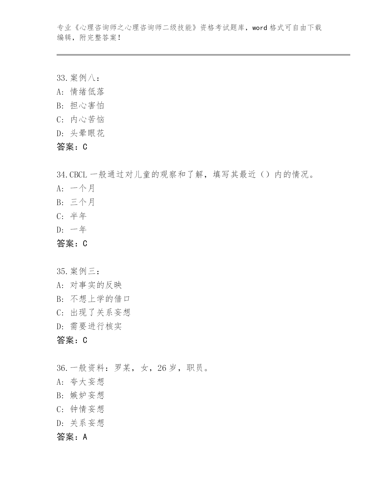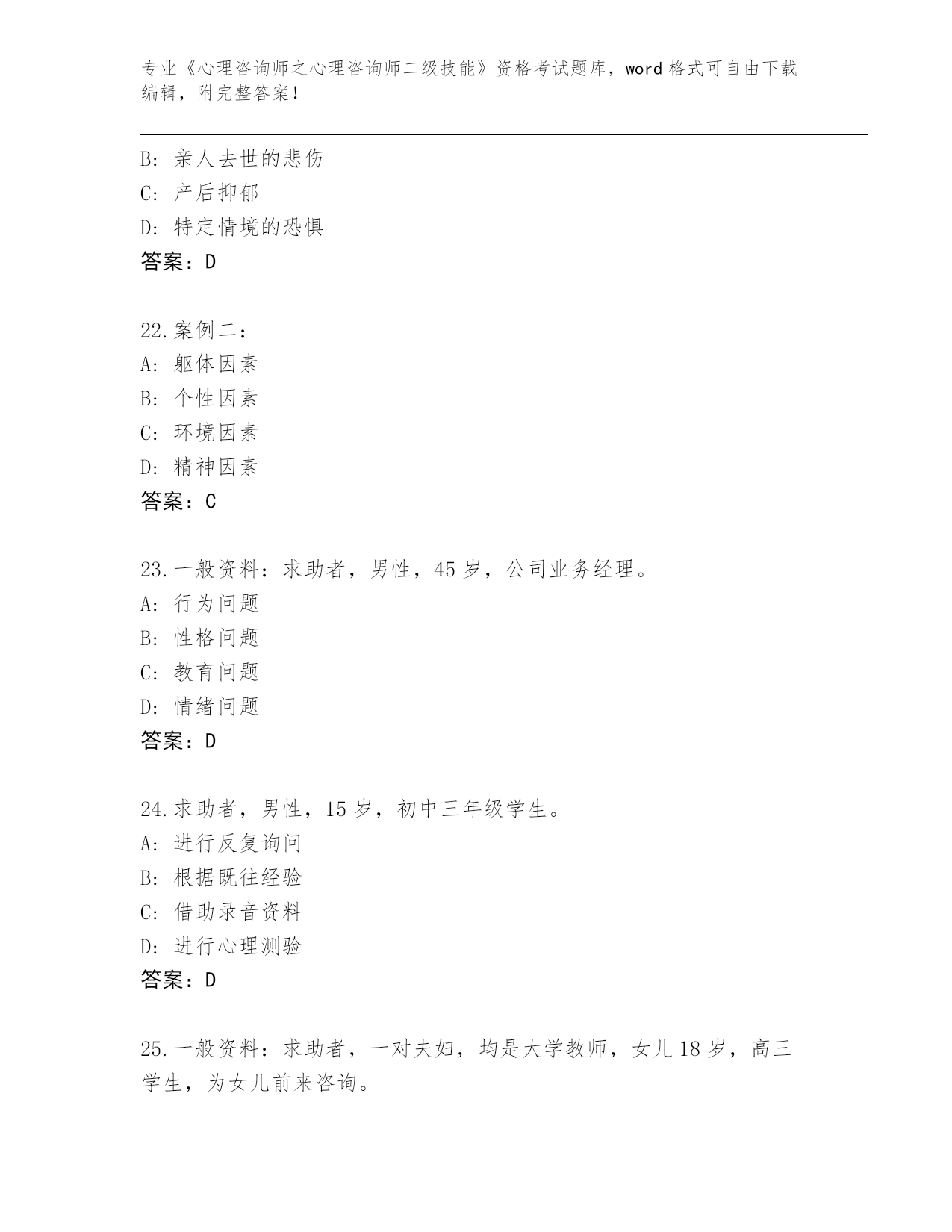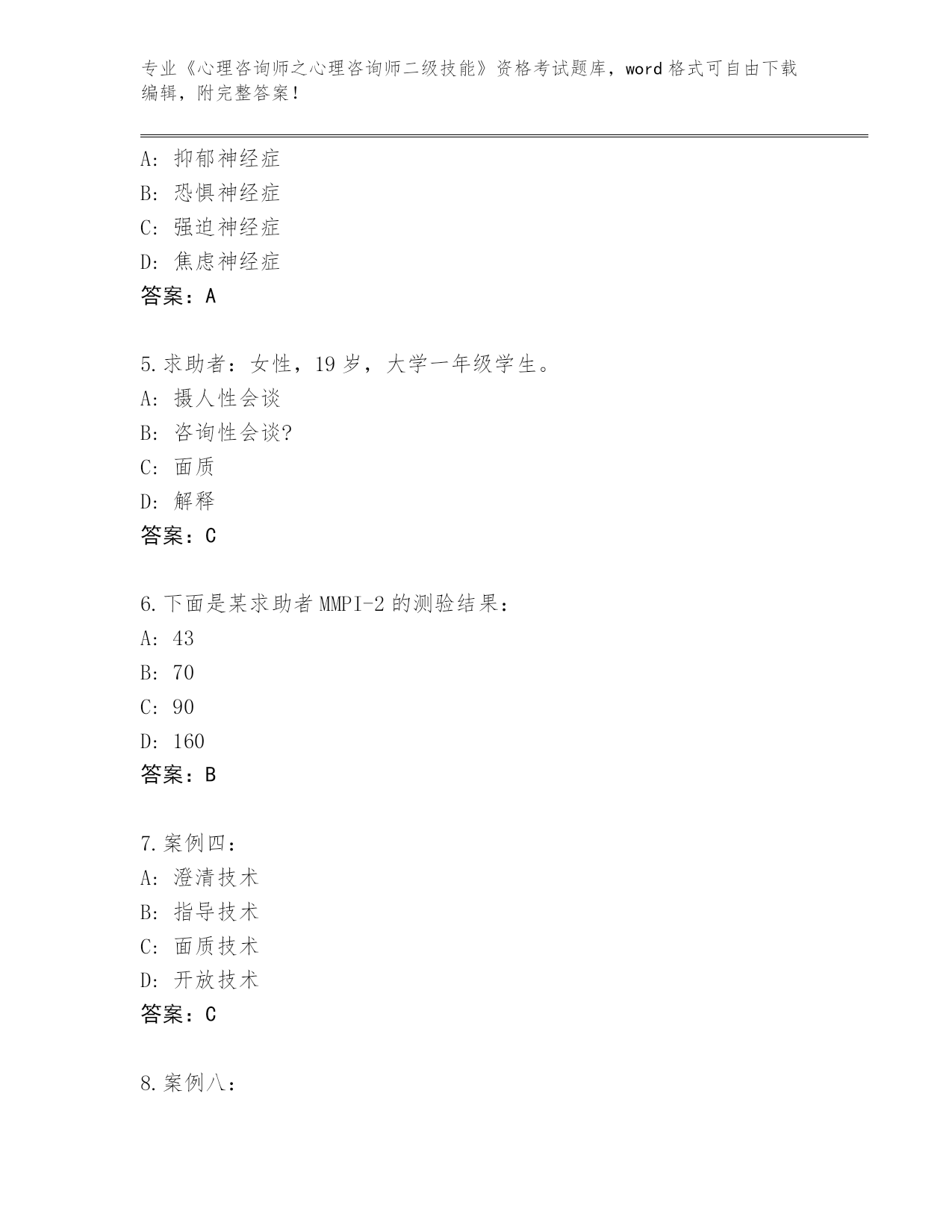 浙江省云和县2024《心理咨询师之心理咨询师二级技能》资格考试王牌题库含答案下载
