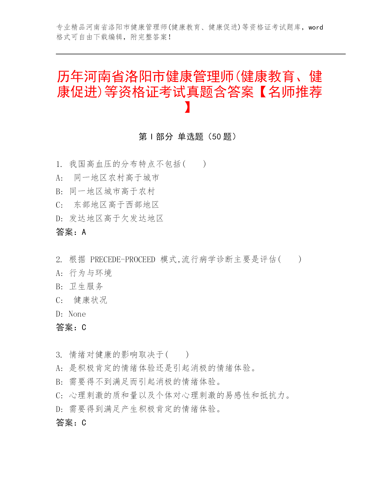 历年河南省洛阳市健康管理师(健康教育、健康促进)等资格证考试真题含答案【名师推荐】.docx