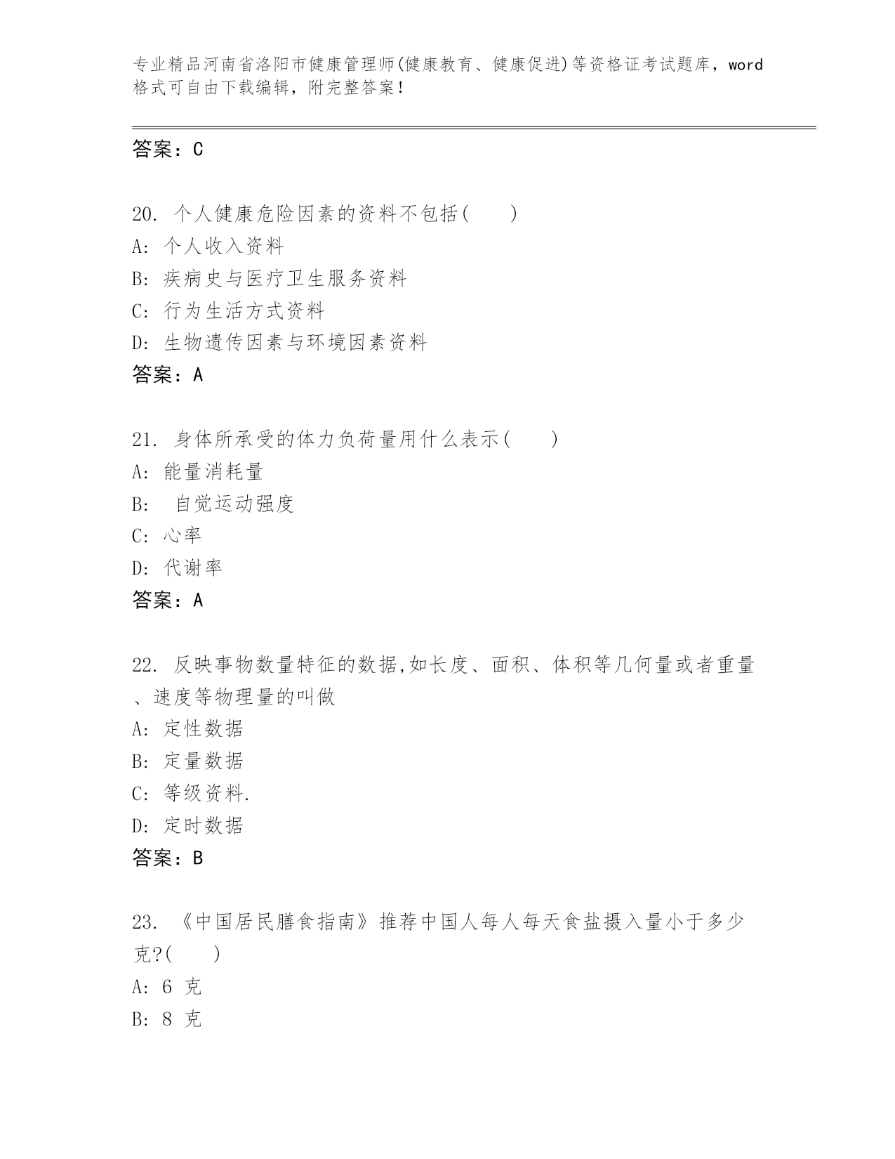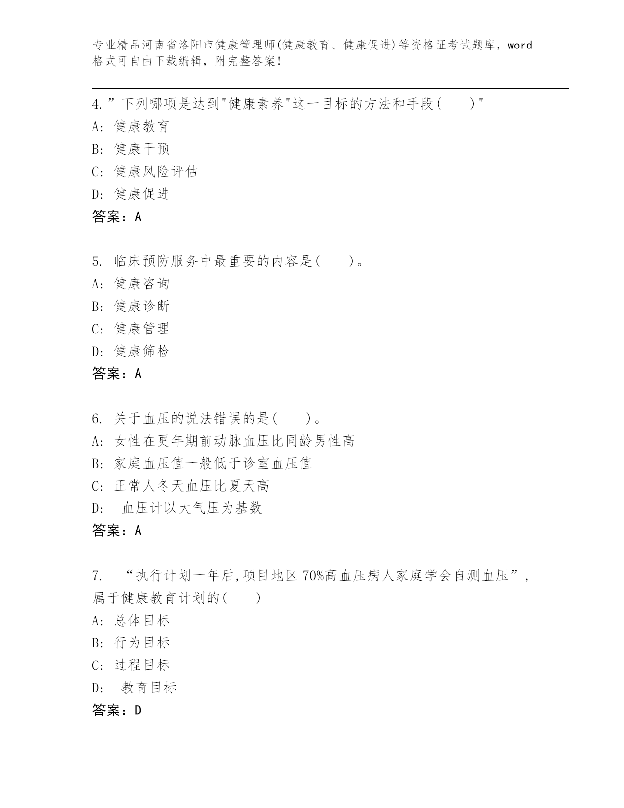 历年河南省洛阳市健康管理师(健康教育、健康促进)等资格证考试真题含答案【名师推荐】