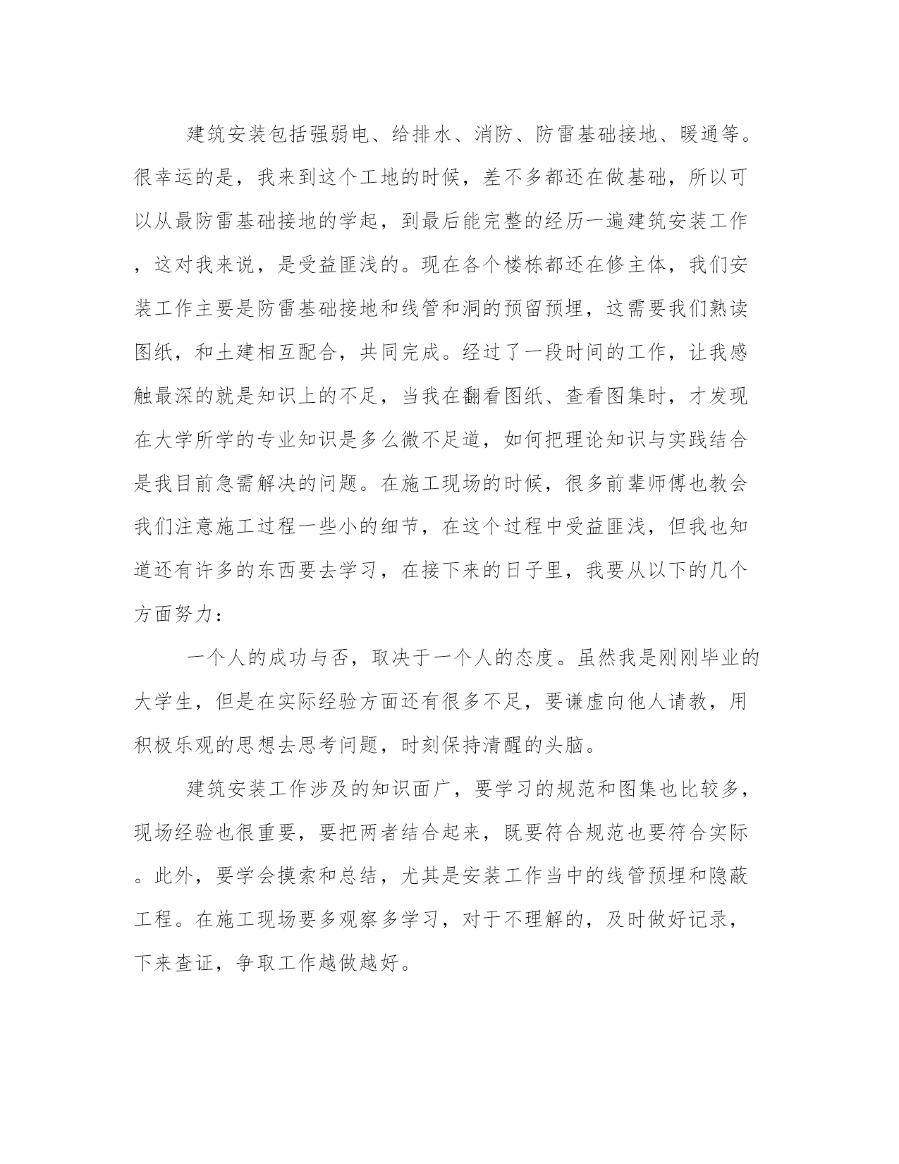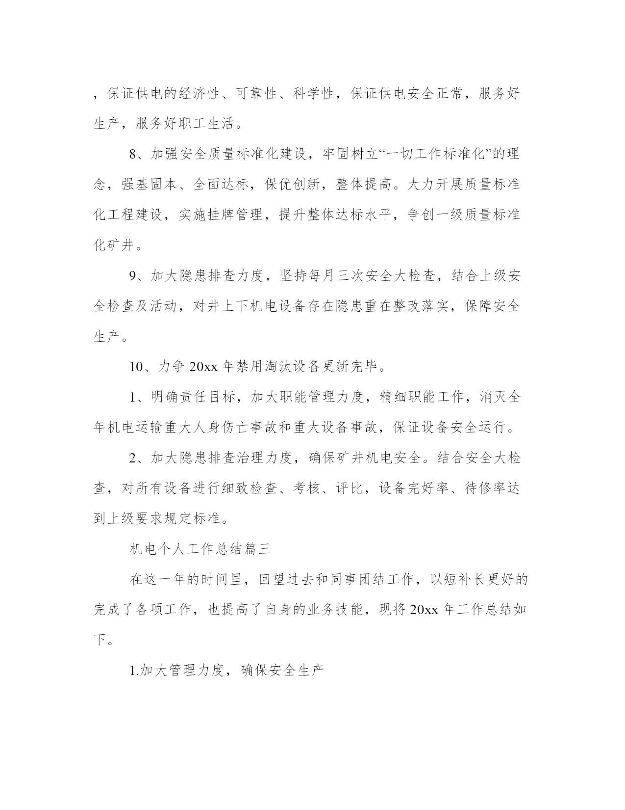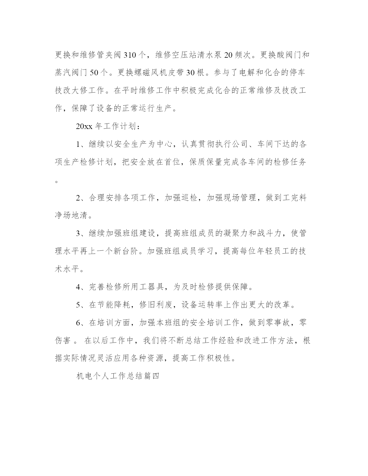 最新机电个人工作总结(精选18篇)总结是对某种工作实施结果的总鉴定和总结论,是对以往工作实践的一种理性认识。那么我们该如何写一篇较为完美的总结呢?以下我给大家整理了一些优质的总结范文,希望对大家能够有所帮助。机电个人工作总结篇一6月,既是大学生活的结束,又是憧憬美好未来的开始,来到xx西南公司,开始了我的第一份工作。经过几天短暂的培训,让我对公司的文化理念、公司的历史以及公司今后的发展方向有了更深入的认识。被分配到项目机电部,让我也渐渐明确了自己目前所处的位置,以及今后所要发展的方向。来到xx项目机电部已经四个多月了,回想这四个月的工作,主要有两个方面的感想,一是工作环境和领导的关怀,二是实践工作中对的自己考验。来到项目后我发现这是一个年轻化、纪律严明、管理有序、学习氛围及其浓厚的项目部。初来机电部报到的那天,机电部xx经理和我们新员工逐一交谈,那种促膝而谈的亲切,瞬间让我们仿佛成为了朋友,那种平易近人的口吻,也好似是一种师者的殷殷教导。我还清晰的记得她给我们勾画了这个行业的发展蓝图,让我对以后的工作有了更加具体的了解。建筑安装包括强弱电、给排水、消防、防雷基础接地、暖通等。很幸运的是,我来到这个工地的时候,差不多都还在做基础,所以可以从最防雷基础接地的学起,到最后能完整的经历一遍建筑安装工作,这对我来说,是受益匪浅的。现在各个楼栋都还在修主体,我们安装工作主要是防雷基础接地和线管和洞的预留预埋,这需要我们熟读图纸,和土建相互配合,共同完成。经过了一段时间的工作,让我感触最深的就是知识上的不足,当我在翻看图纸、查看图集时,才发现在大学所学的专业知识是多么微不足道,如何把理论知识与实践结合是我目前急需解决的问题。在施工现场的时候,很多前辈师傅也教会我们注意施工过程一些小的细节,在这个过程中受益匪浅,但我也知道还有许多的东西要去学习,在接下来的日子里,我要从以下的几个方面努力:一个人的成功与否,取决于一个人的态度。虽然我是刚刚毕业的大学生,但是在实际经验方面还有很多不足,要谦虚向他人请教,用积极乐观的思想去思考问题,时刻保持清醒的头脑。建筑安装工作涉及的知识面广,要学习的规范和图集也比较多,现场经验也很重要,要把两者结合起来,既要符合规范也要符合实际。此外,要学会摸索和总结,尤其是安装工作当中的线管预埋和隐蔽工程。在施工现场要多观察多学习,对于不理解的,及时做好记录,下来查证,争取工作越做越好。我们刚刚从学校步入社会,周围的一切环境都发生了变化,我们必须要迅速转变角色来适应新的环境,跟周围领导同事搞好关系,和下面工人师傅打成一片,自己的工作才会更加顺利。因为热爱,所以选择,因为选择,所以坚持。建筑业水电安装在日新月异中不断更新,它需要不断在现场检查、监督,随时发现问题,解决问题,而这些工作都在现场比较恶劣的环境下进行,这要求我们不断培养吃苦耐劳的精神,要不怕苦不怕累,放下管理人员清高的姿态,从工程的实干中不断丰富自己所学才能,使自己的现场综合处理能力得到锻炼和提高。以上是我到xx项目两个多月工作的简单总结,作为刚刚进入xx西南公司的一员,能有机会在xx公租房这个如此大的建设项目中学习和锻炼,我感到无比的荣幸。在接下来的时间里我会加倍的努力,加强自身的专业素质和综合素质的培养,尽快成长起来,为公司的发展作出应有的贡献。机电个人工作总结篇二光阴荏苒,时光如梭,20xx年即将与我们告别,年正款款走来!回首往惜、感慨万千!在集团公司的正确领导下,在公司各基层单位的积极配合下,较好的完成了公司下达的各项指标任务。实现了人身及机电设备事故为零的安全管理目标。现将主要工作总结如下:1、在机电矿长的领导下,负责做好全矿机电管理工作;2、对矿井各单位月度用电量进行了抄取、结算、考核。3、对地安排水进行改造,现场督察指对导机电队安装地安风井主排水泵3台,安装排水管路三趟。4、现场指导机电队改造安装主通风机双回路供电联络柜。5、雨季前督察指导机电队对井下主排水泵进行了轮换出井大修,并对主排水泵进行性能检测和联合试运转,确保正常排水。6、联系并配合有资质单位对地面变电所高压配电柜进行了性能检测和校验整定及入井2趟高压电缆进行了耐压试验。7、配合公司完成机电设备资产评定工作。8、配合机电队更换1#空压机轴承并对2#空压机电机进行了大修。9、根据机电设备的检查维护周期,督查对各大型设备进行了检修维护。减少了隐患的出现,事故的发生。10、搞好井上下供电管理,以电气设备的完好率,电缆、小型电器的合格率、局部通风供电、三大保护整定、效验以及电气试验为重点。做好夏季三防工作,做好春季预防性试验及接地装置的接地电阻测试工作,保障供电设施安全可靠。坚决杜绝无计划停风停电及各类机电事故。11、配合机电队对生活区锅炉检修工作