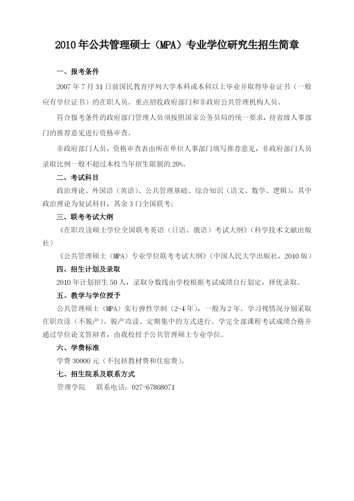 华中师范大学在职研究生招生简章2010070108441814