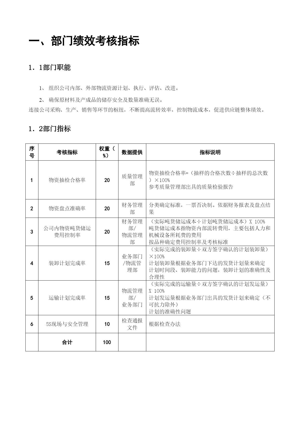 某某粮食工业有限公司物流管理部绩效管理操作手册(DOC 45页)(1)