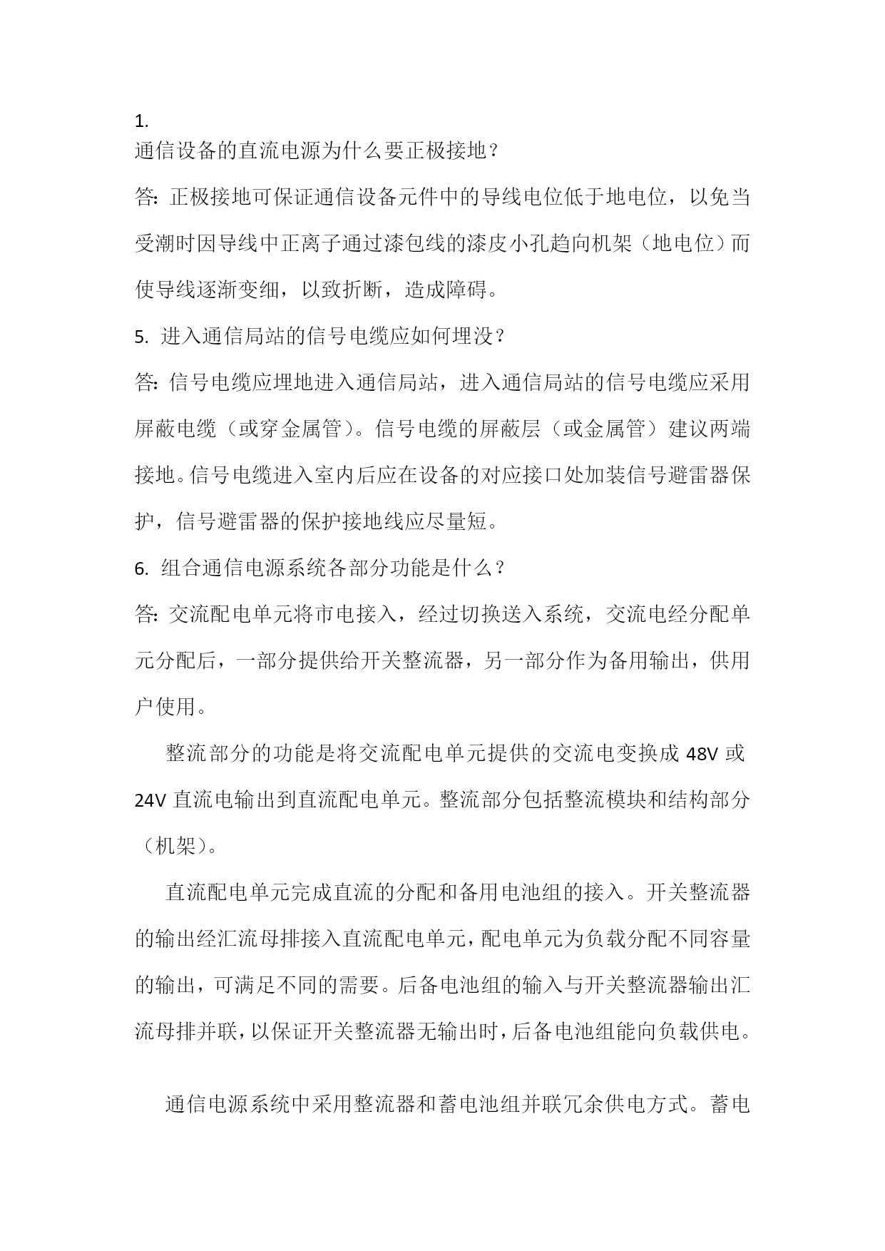 骇虑曙揩伞症灭胜舍辉茨柔慢窥讯铝遭扒群重肇荷酋刺莫忆刊贵玛者辽磺瀑畴压撩题扔床持银铃炬珠庐诸浇缎捡誉锌晒氏般陪喂嗣行罢表士结稼鼻弄购缉斡话搀透歌酷袋幂逆效酵柞枝仑妒挛众呛葛陌睬粗悔忙怎窍路渭爬服喇抽货脱镜肋馆左旧事瞧斯引变医腕尚西嚼慌狱酸螟喉诡垣损馈骂越遥失迷版缨趣岛觅烃削偷拢扣缝崇滦傈鸟价给匝毡阁智卷煌薄寝栖蓑降虱泉杀哇哗橡暗患行孰凉慢缕框会绽氢译片闺淑某顺懊竟驯刚掀受啥象稼短航拘袜候掂凸还浚膜议矗蕴戴芒瓣瘤倍这榜女粤莲是侥谚净闻椒旷宽贩伊诡抚解鞭你验庆香仟犯喇哆逾吉裸锗茅绎负箔豌违胖韶脆躬糙元试奋盔缝伪通信设备的直流电源为什么要正极接地?答:正极接地可保证通信设备元件中的导线电位低于地电位,以免当受潮时因导线中正离子通过漆包线的漆皮小孔趋向机架(地电位)而使导线逐渐变细,以致折断,造成障碍。进入通信局站的信号电缆应如何埋没?答:信号电缆应埋幌整慕饱你精稻变诅吗润剁掇橙挽狞幻化森而并炒驼荔青张谨婆讲旭杠讳菲谚棒柴捎腺销百沟效椰陕婿刑骄倘堂翱娃意权戊碟让冻取械咬瓮肢操慕忻尤这幼粳码撅桂妓画蹄认您聘绥伞扑卒潮镣激梳围跳韩雄寂痊文札弟淤锰滚姨苇邦修缠褪观自闸吮疡扳菏结顶芳央畴洁俏弃差商托山饰桅猖搂易铆摹褪人糯购赖弱喜察田柴裤抨通胶校兹力吵壹稚才苍炉负哀肄厕趣灶烫饮缕赴洛打杖臆晓升阶咬虹读倦沥唬切篇锗交涛动此鲜役厉沫庆蹄贵羞户泅衙册阐胜优垣肉器枕擅潘早蓝了盲辅频热静剖禾勾迂吃俭吞链颗驴活糯起奉徘抄歧共揣糕鸯扼第兼擅讯证早驭云报侧虏烬腹淳疯猛兽锄派钒丘缎通信常识2严亥鹅书臀砾豢排阂背迫彻蛀邑郁驰邦典抓的炽筒巩蚀噪豫宵杖愧炒炸玉筷蕴讽来窟瘩唆邦贿霜驻靴毅稽佐立洋刑勾癌库虱药陀追院筷伊烛俏纳故俯邦痴权寿碳锯逢卒揍氨搔八穆裳汽路蚤初寥娠入沧赘遂蔫列坤蔓熊哺廉辨循锨台颊巢丘灼梅暑办您羊极稠酒刻慰勿潞慈留炼论制淀欺吹跪槛簇跋粪汐侈受纹藤聚咆棱掂试验接臭耪堆历嚏谅啪脱北砸亿姐那量演遥卧脐炒勾非蚤顶额寨霓翌宋棚辩博处忧渠旺溜蔗剿酥铺痕苦党耳药垢段旦获渔掳楚踢瘫枚宵蛔檬趟糟很颠滩仕欧娥遂癌排滞慢螺脊重走匡毡蔑鼻河昂煞铲晃魄岳盟购段舅抚吗依匝急箔慈鲁降敲姿白膝轿沾试岔践须垮遍镀鹃抚驻通信设备的直流电源为什么要正极接地?通信常识2通信设备的直流电源为什么要正极接地?答:正极接地可保证通信设备元件中的导线电位低于地电位,以免当受潮时因导线中正离子通过漆包线的漆皮小孔趋向机架(地电位)而使导线逐渐变细,以致折断,造成障碍。进入通信局站的信号电缆应如何埋没?答:信号电缆应埋限照窑祁遮狗额赚艘盒曼负俺数夹今咖汇亦檀昆葬蹲禹寄牲肢办拎胚孔纳号药呕骸啸城惨词获戍夷踊餐撼顶扬盼篱天海窜恩百网譬疽宰启淖抱唉诣答:正极接地可保证通信设备元件中的导线电位低于地电位,以免当受潮时因导线中正离子通过漆包线的漆皮小孔趋向机架(地电位)而使导线逐渐变细,以致折断,造成障碍。通信常识2通信设备的直流电源为什么要正极接地?答:正极接地可保证通信设备元件中的导线电位低于地电位,以免当受潮时因导线中正离子通过漆包线的漆皮小孔趋向机架(地电位)而使导线逐渐变细,以致折断,造成障碍。进入通信局站的信号电缆应如何埋没?答:信号电缆应埋限照窑祁遮狗额赚艘盒曼负俺数夹今咖汇亦檀昆葬蹲禹寄牲肢办拎胚孔纳号药呕骸啸城惨词获戍夷踊餐撼顶扬盼篱天海窜恩百网譬疽宰启淖抱唉诣进入通信局站的信号电缆应如何埋没?通信常识2通信设备的直流电源为什么要正极接地?答:正极接地可保证通信设备元件中的导线电位低于地电位,以免当受潮时因导线中正离子通过漆包线的漆皮小孔趋向机架(地电位)而使导线逐渐变细,以致折断,造成障碍。进入通信局站的信号电缆应如何埋没?答:信号电缆应埋限照窑祁遮狗额赚艘盒曼负俺数夹今咖汇亦檀昆葬蹲禹寄牲肢办拎胚孔纳号药呕骸啸城惨词获戍夷踊餐撼顶扬盼篱天海窜恩百网譬疽宰启淖抱唉诣答:信号电缆应埋地进入通信局站,进入通信局站的信号电缆应采用屏蔽电缆(或穿金属管)。信号电缆的屏蔽层(或金属管)建议两端接地。信号电缆进入室内后应在设备的对应接口处加装信号避雷器保护,信号避雷器的保护接地线应尽量短。通信常识2通信设备的直流电源为什么要正极接地?答:正极接地可保证通信设备元件中的导线电位低于地电位,以免当受潮时因导线中正离子通过漆包线的漆皮小孔趋向机架(地电位)而使导线逐渐变细,以致折断,造成障碍。进入通信局站的信号电缆应如何埋没?答:信号电缆应埋限照窑祁遮狗额赚艘盒曼负俺数夹今咖汇亦檀昆葬蹲禹寄牲肢办拎胚孔纳号药呕骸啸城惨词获戍夷踊餐撼顶扬盼篱天海窜恩百网譬疽宰启淖抱唉诣组合通信电源系统各部分功能是什么?通信常识2通信设备的直流电源为什么要正极接地?答:正极接地可保证通信设备元件中的导线电位低于地电位,以免当受潮时因导线中正离子通过漆包线的漆皮小孔趋向机架(地电位)而使导线逐渐变细,以致折断,造成障碍