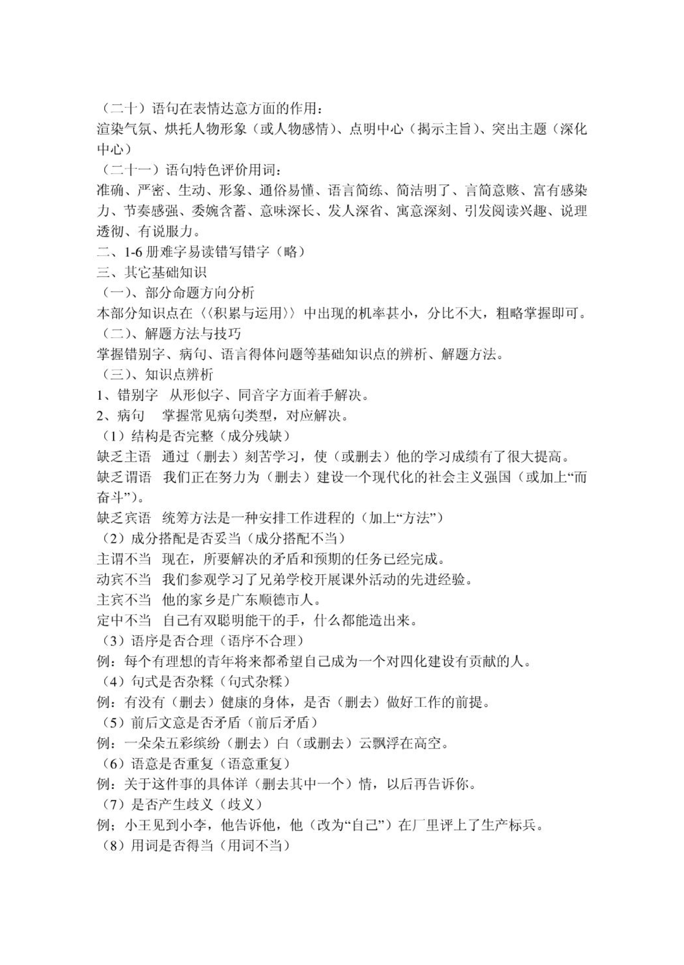 中考语文知识点梳理
