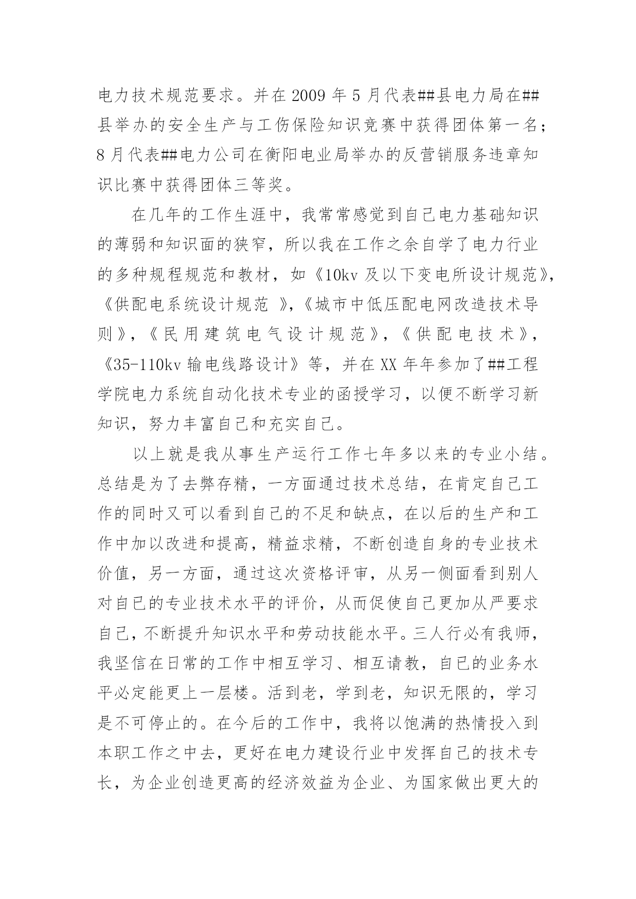 电力生产运行岗位技能技术管理的个人工作总结.docx