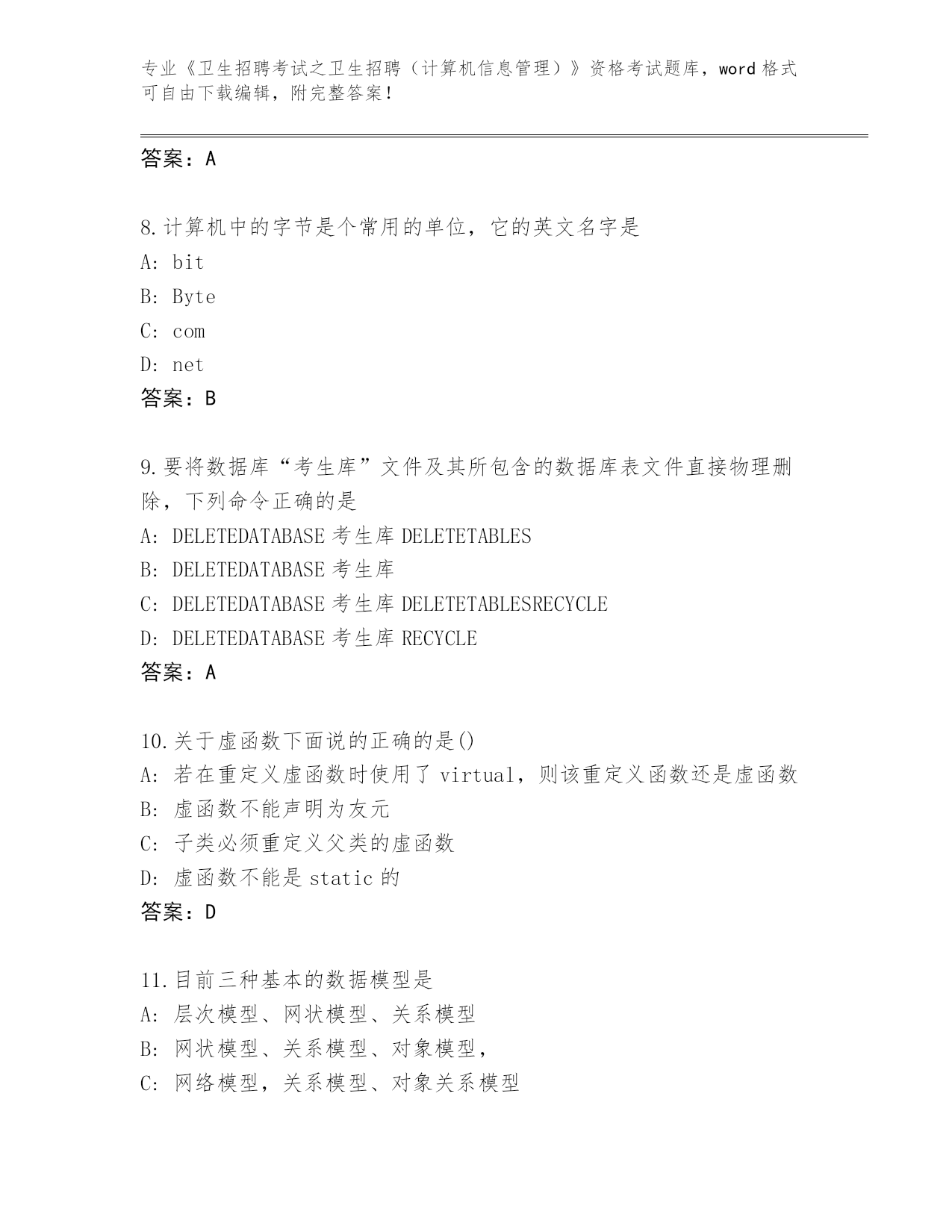 山东省整理《卫生招聘考试之卫生招聘(计算机信息管理)》资格考试王牌题库及答案(网校专用)