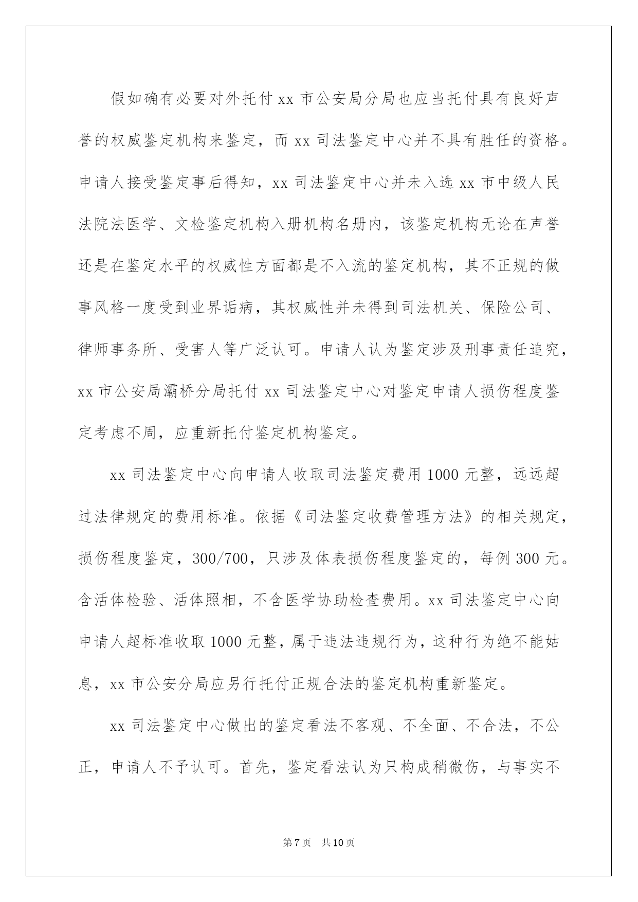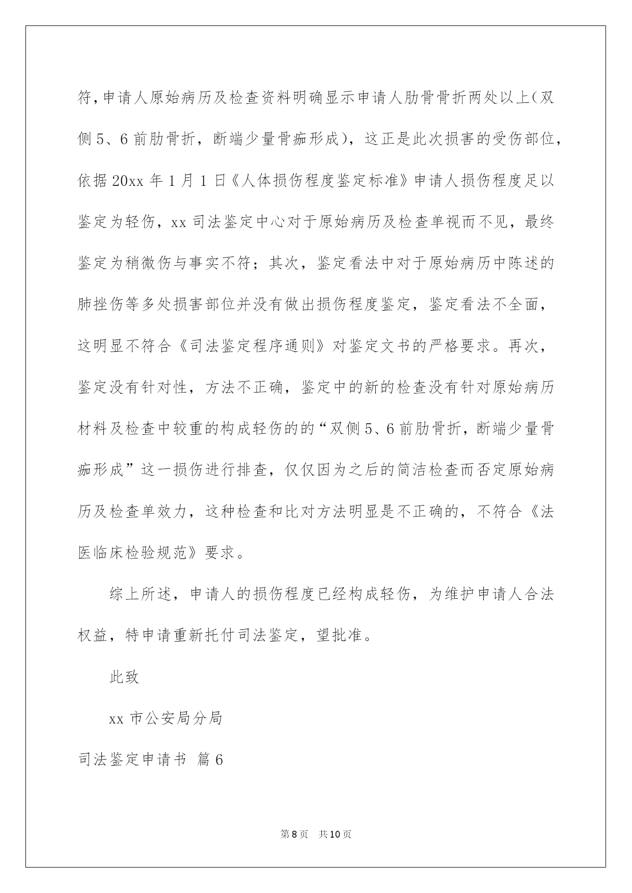 第PAGE\*Arabic\*MERGEFORMAT10页共NUMPAGES\*Arabic\*MERGEFORMAT10页第PAGE\*MERGEFORMAT10页共NUMPAGES\*MERGEFORMAT10页第PAGE\*MERGEFORMAT10页共NUMPAGES\*MERGEFORMAT10页第PAGE\*MERGEFORMAT10页共NUMPAGES\*MERGEFORMAT10页第PAGE\*MERGEFORMAT10页共NUMPAGES\*MERGEFORMAT10页第PAGE\*MERGEFORMAT10页共NUMPAGES\*MERGEFORMAT10页第PAGE\*MERGEFORMAT10页共NUMPAGES\*MERGEFORMAT10页第PAGE\*MERGEFORMAT10页共NUMPAGES\*MERGEFORMAT10页第PAGE\*MERGEFORMAT10页共NUMPAGES\*MERGEFORMAT10页第PAGE\*MERGEFORMAT10页共NUMPAGES\*MERGEFORMAT10页第PAGE\*MERGEFORMAT10页共NUMPAGES\*MERGEFORMAT10页2022司法鉴定申请书关于司法鉴定申请书集合七篇在现在社会,申请书运用的次数愈发增长,请留意不同的对象有不同的申请书。但是你知道怎样才能写的好吗?以下是我细心整理的司法鉴定申请书7篇,欢迎阅读与保藏。司法鉴定申请书篇1申请人:被申请人:恳求目的:依法对某医学中心对被申请人作出法医临床司法鉴定书进行重新鉴定事实与理由:一、某医学司法鉴定中心并没有严格根据《司法通则(试行)》对被申请人进行鉴定,存在严峻违法行为,重新司法鉴定申请书。第一,某医学司法鉴定中心接受被申请人托付作出司法鉴定书违法。《司法鉴定程序通则(试行)》第十四条规定司法接受司法机关、仲裁案件当事人的司法鉴定托付。在诉讼案件中,在当事人负有举证责任的状况下,司法鉴定机构也可以接受当事人的司法鉴定托付。当事人托付司法鉴定时一般通过律师事务所进行。某医学司法鉴定中心没有接受司法机关的指定,在被申请人还没有提起诉讼的状况下为其进行鉴定违法。其次,某医学司法鉴定中心并没有要求被申请人重新拍片确认伤情,依据没有注明拍片时间和片子编号的X片作出鉴定结论违法,司法鉴定《重新司法鉴定申请书》。被申请人受伤经过康复治疗后,伤势可以有所好转,青岛九鼎医学司法鉴定中心应当要求被申请人重新拍片,依据复原状况作出鉴定结论。另外,被申请人供应的X片没有拍片时间和片子编号,无法证明是针对被申请人伤情所拍的,某医学司法鉴定中心却据此认定被申请人伤情,依据何在。二、法院对法医临床司法鉴定书予以接受,程序违法。申请人在对司法鉴定书进行质证时,仅表示对真实性没有异议,对内容是否有异议并没有明确表态司法鉴定书内容部分并没有经过当事人质证程序,依据《中华人民共和国民事诉讼法》规定,未经质证的证据不能作为定案的依据,法院接受程序违法。三、申请人对被申请人单方托付鉴定机构作出的鉴定结论有权申请重新鉴定。《最高人民法院关于民事诉讼证据的若干规定》其次十六条规定,当事人申请鉴定经人民法院同意后熡伤方当事人协商确定有鉴定资格的鉴定机构、鉴定人员熜商不成的'由人民法院指定。青岛九鼎医学司法鉴定中心即非申请人与被申请人协商确定的,亦非莱西市人民法院指定的,依据《最高人民法院关于民事诉讼证据的若干规定》其次十八条规定,申请人有权申请重新鉴定。综上所述,为维护申请人的合法权益,确保司法的公正,特申请重新鉴定,望批准。此致某中级人民法院申请人:司法鉴定申请书篇2申请人:******住址:******恳求事项:恳求人民法院依法指定司法鉴定机构对申请人的******进行鉴定。事实和理由:******************************************此致******人民法院申请人:**********年****月****日司法鉴定申请书篇3申请人:陈X如,女,19XX年X月X日诞生,身份证号:3303261965XXXXXXXX。汉族,住平阳县鳌江镇河滨村,申请事项:1.申请对卖尽契约进行书写时间鉴定;2.申请对陈纪旺在契约上的签名进行笔迹鉴定;3.申请对陈纪旺在契约上的手印进行真实性鉴定。事实与理由:原告姜X春诉被告应X语、陈X、陈X璋、陈X康、陈X芝、陈X如6人房屋买卖合同纠纷一案,业经贵院受理,现被告陈X如有正值理由怀疑原告供应的卖尽契约系伪造。特申请法院托付专业的司法鉴定机构对上述恳求事项进行司法鉴定。此致平阳县人民法院申请人