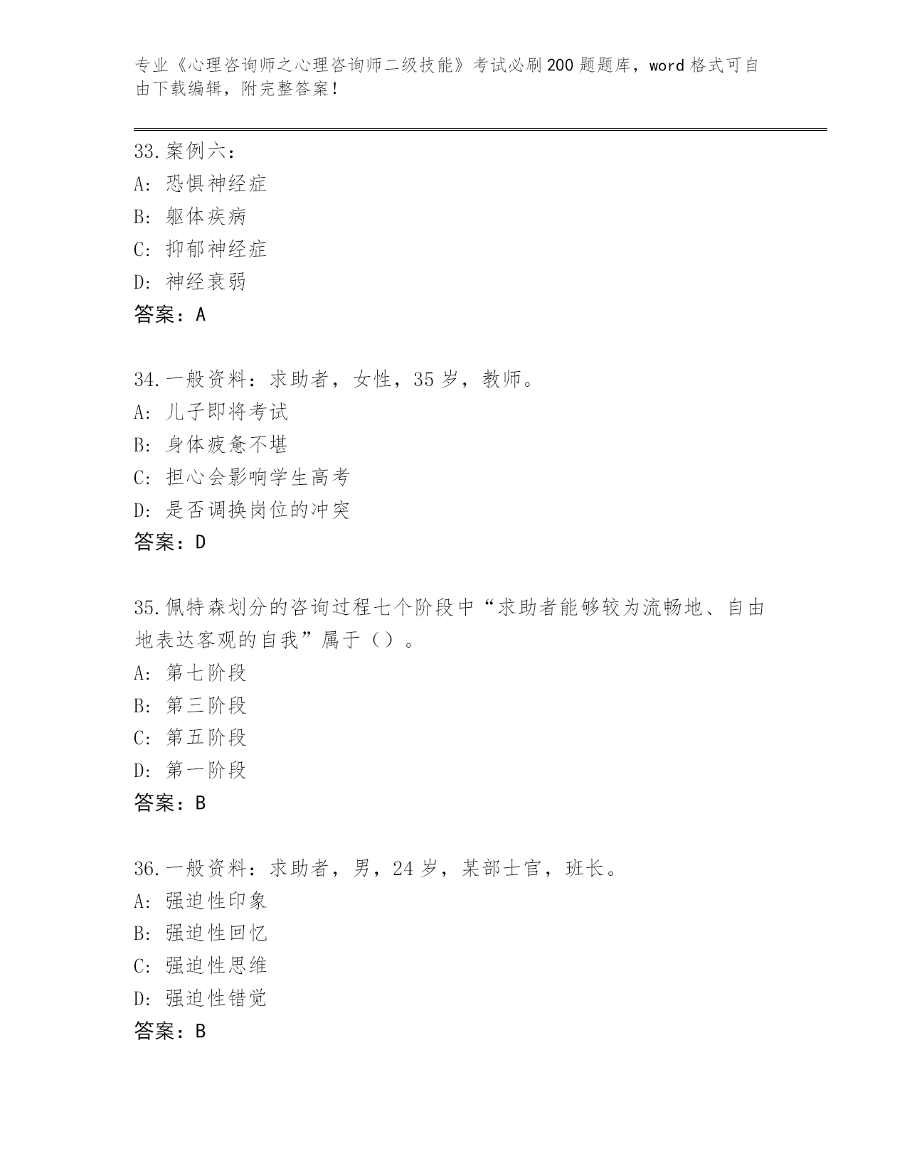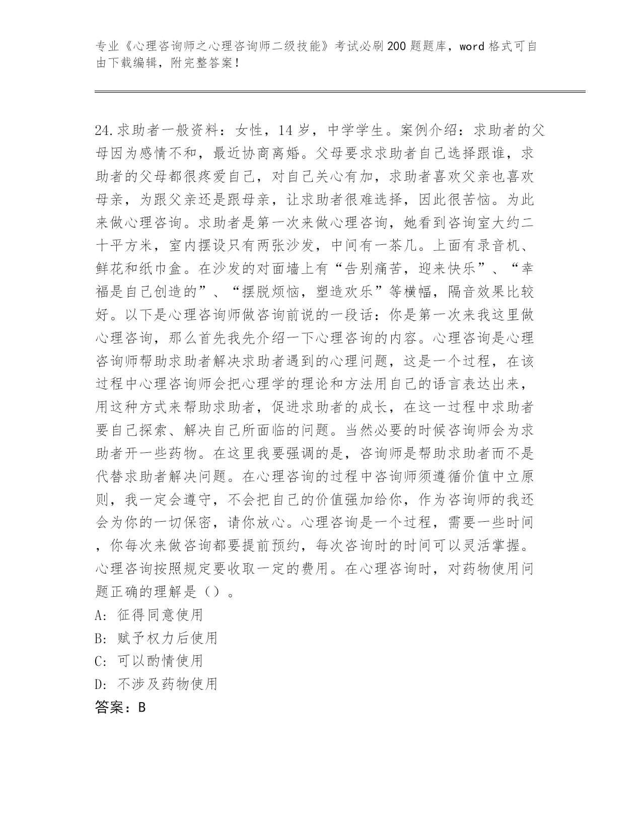 湖北省郧阳区2024《心理咨询师之心理咨询师二级技能》考试必刷200题附参考答案(培优A卷)
