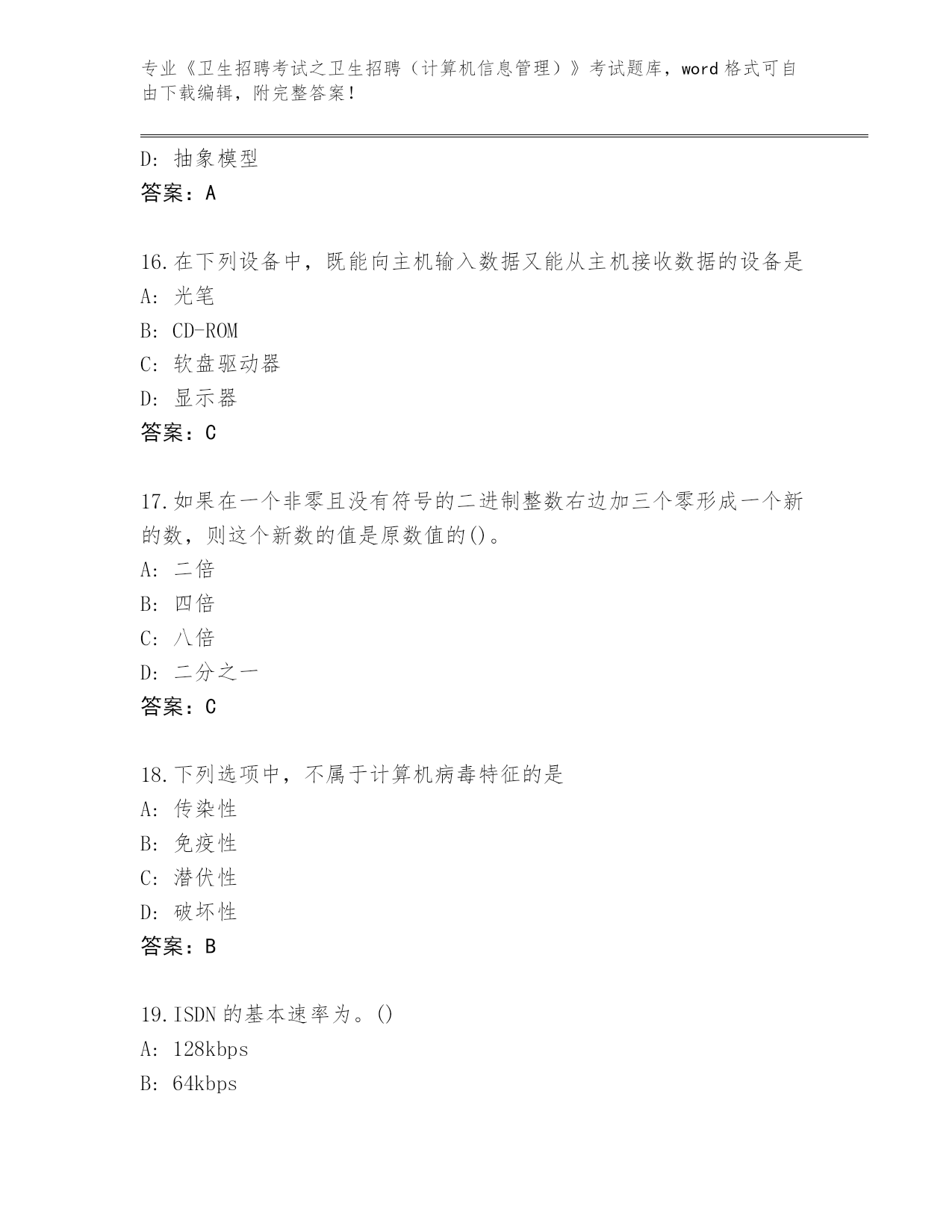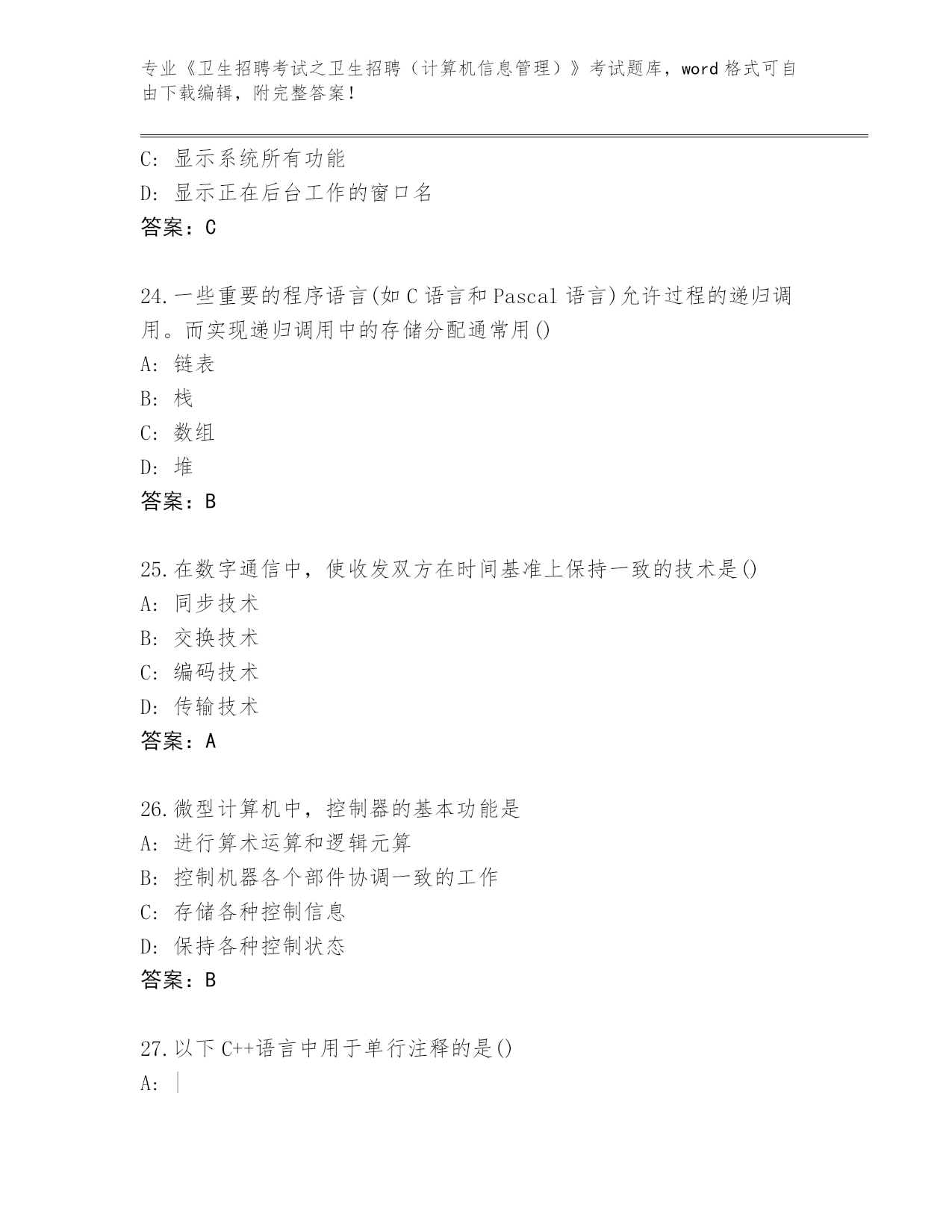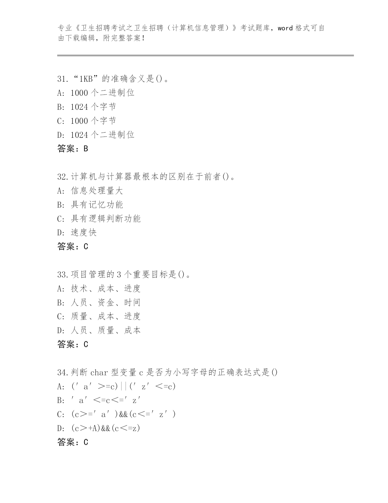 江西省乐安县2024年《卫生招聘考试之卫生招聘(计算机信息管理)》资格考试真题附答案(典型题)