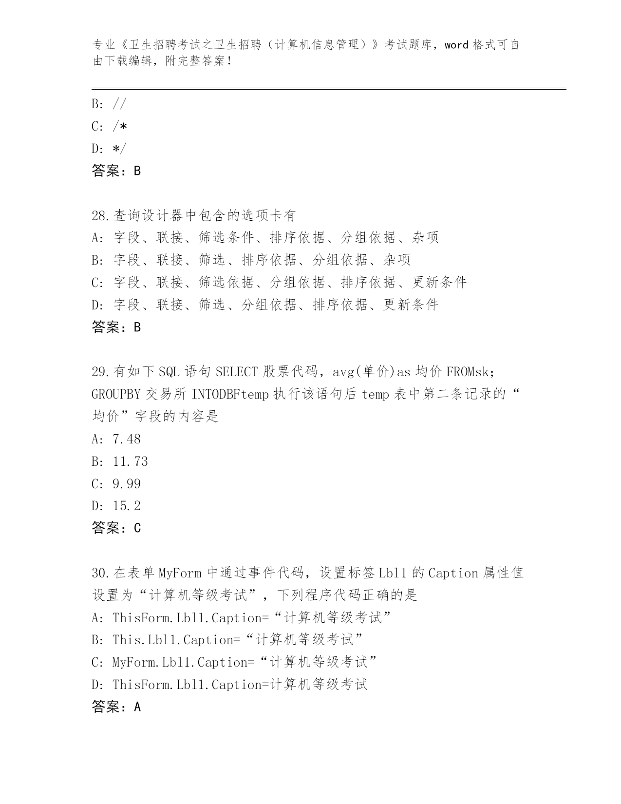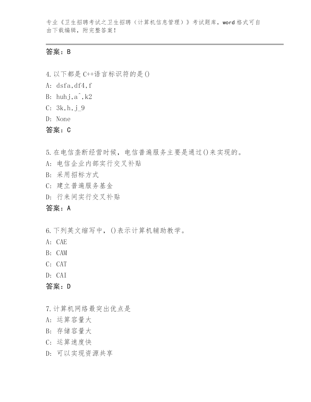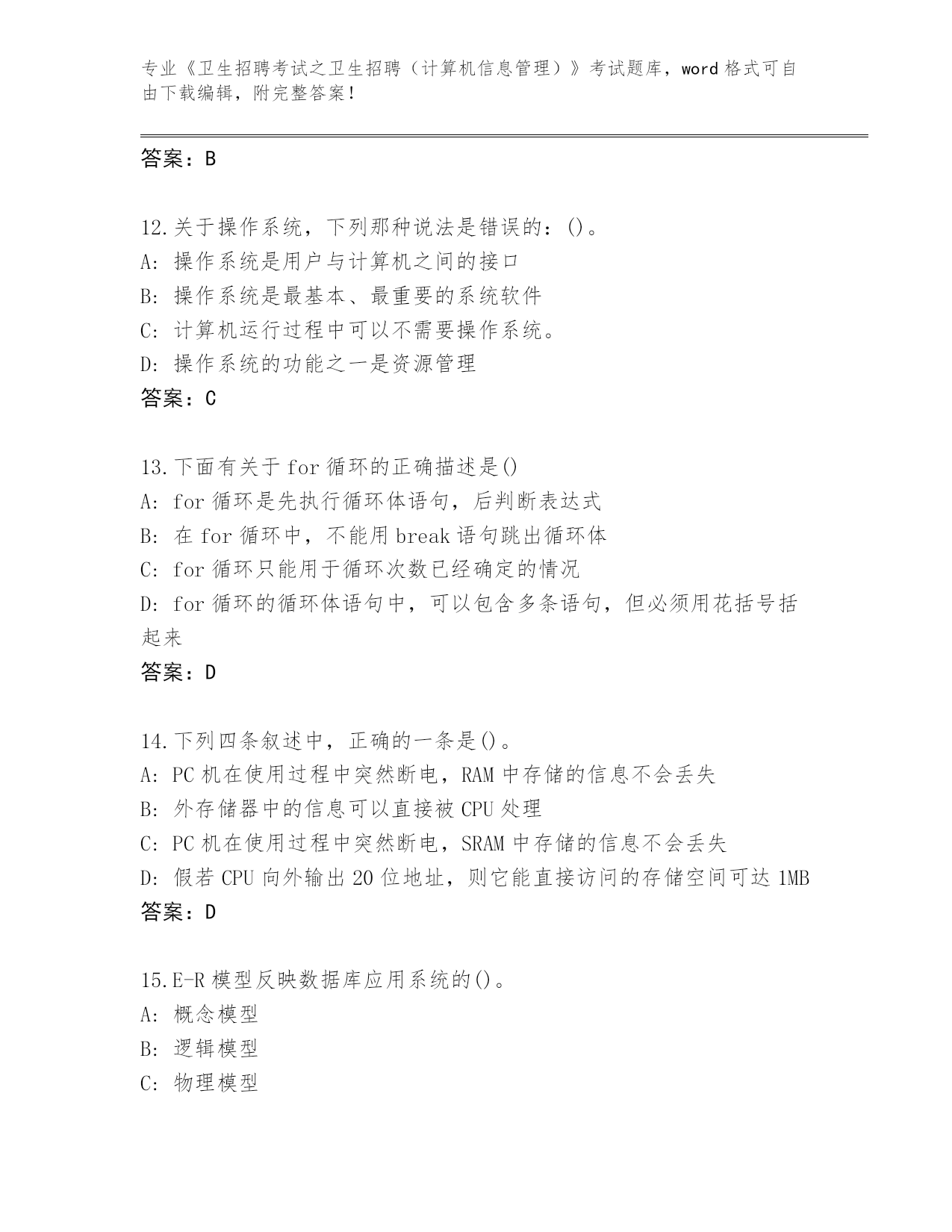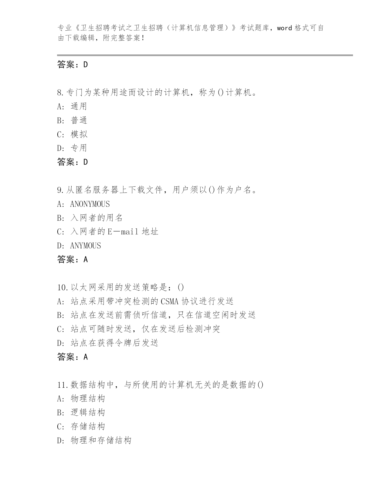 江西省乐安县2024年《卫生招聘考试之卫生招聘(计算机信息管理)》资格考试真题附答案(典型题)