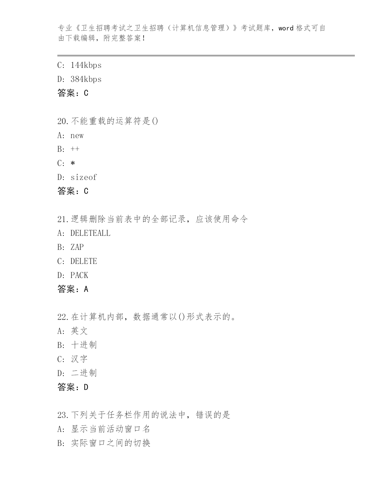 江西省乐安县2023-2024年《卫生招聘考试之卫生招聘(计算机信息管理)》资格考试真题(全国使用)