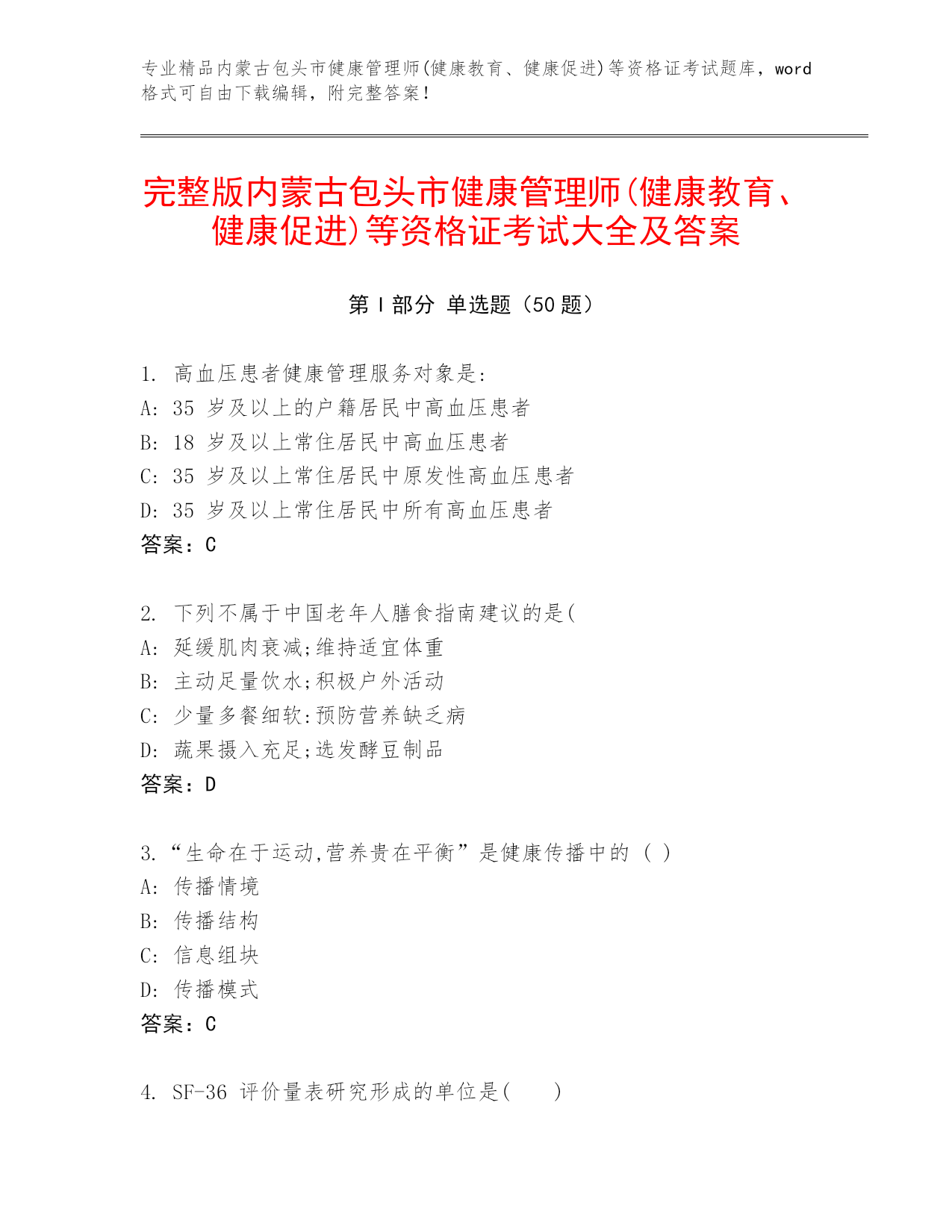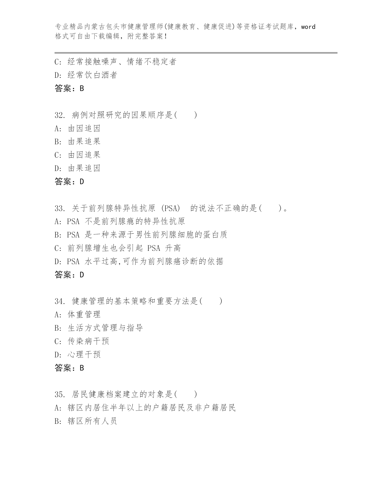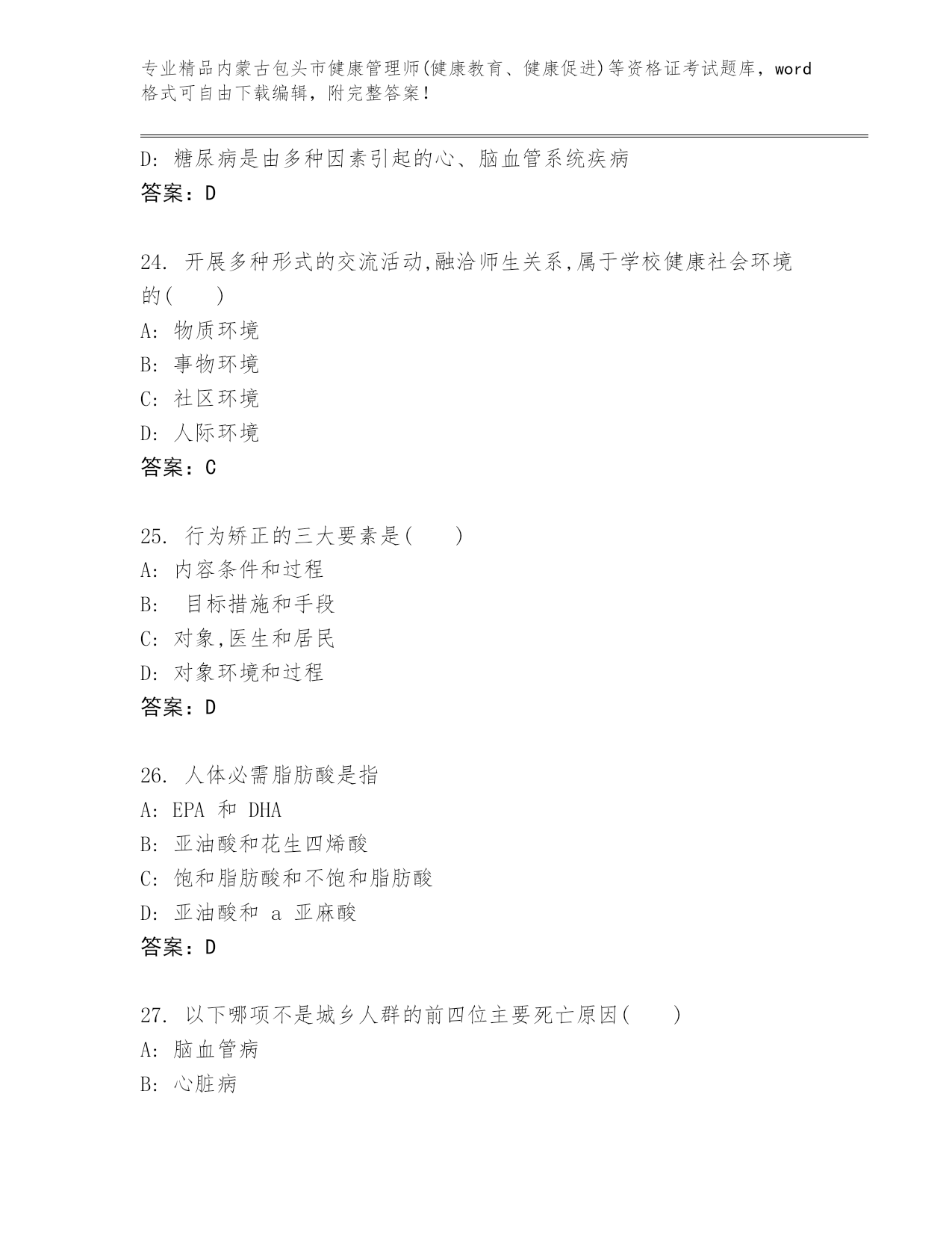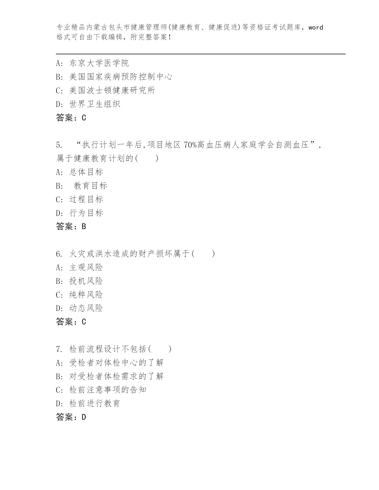 完整版内蒙古包头市健康管理师(健康教育、健康促进)等资格证考试大全及答案.docx
