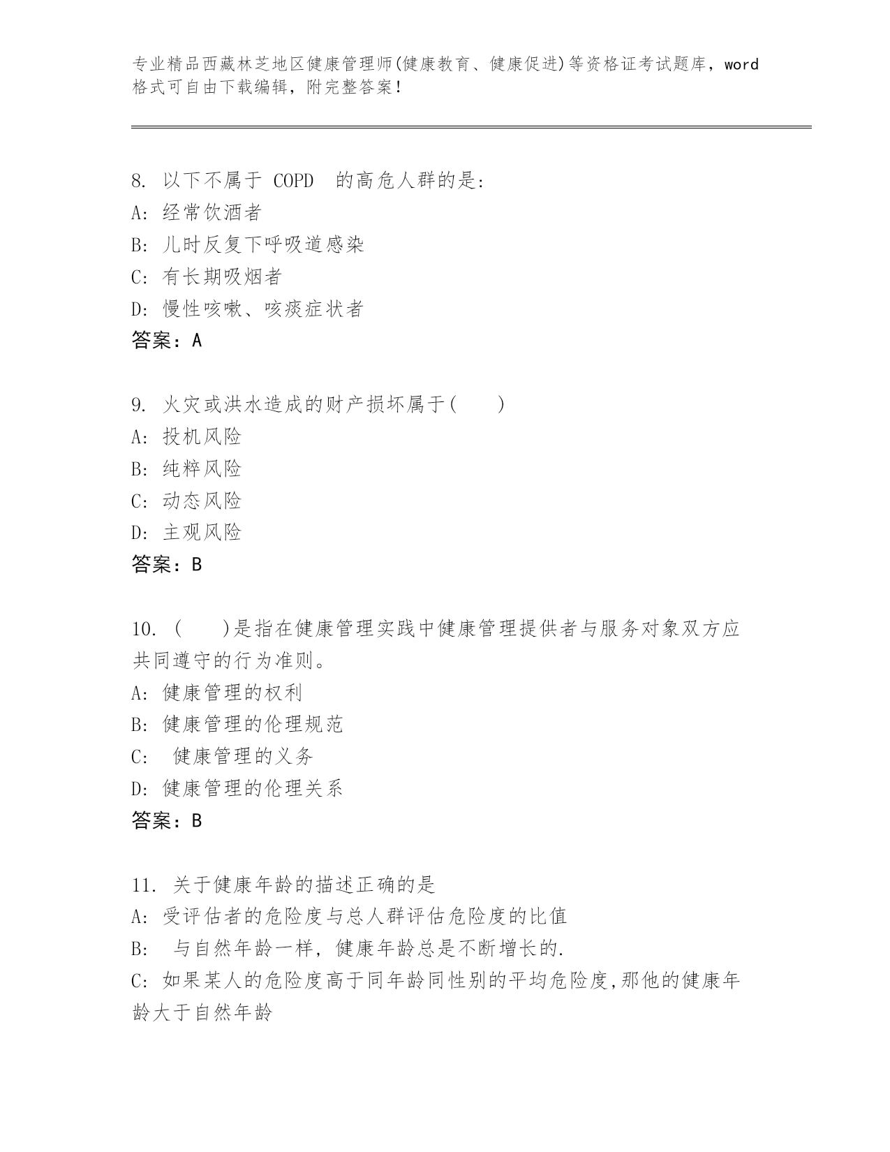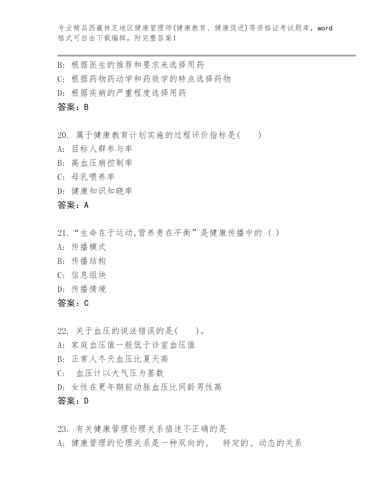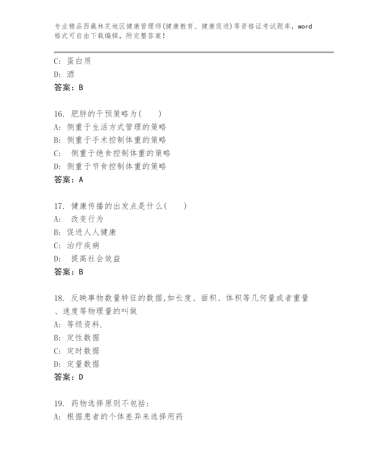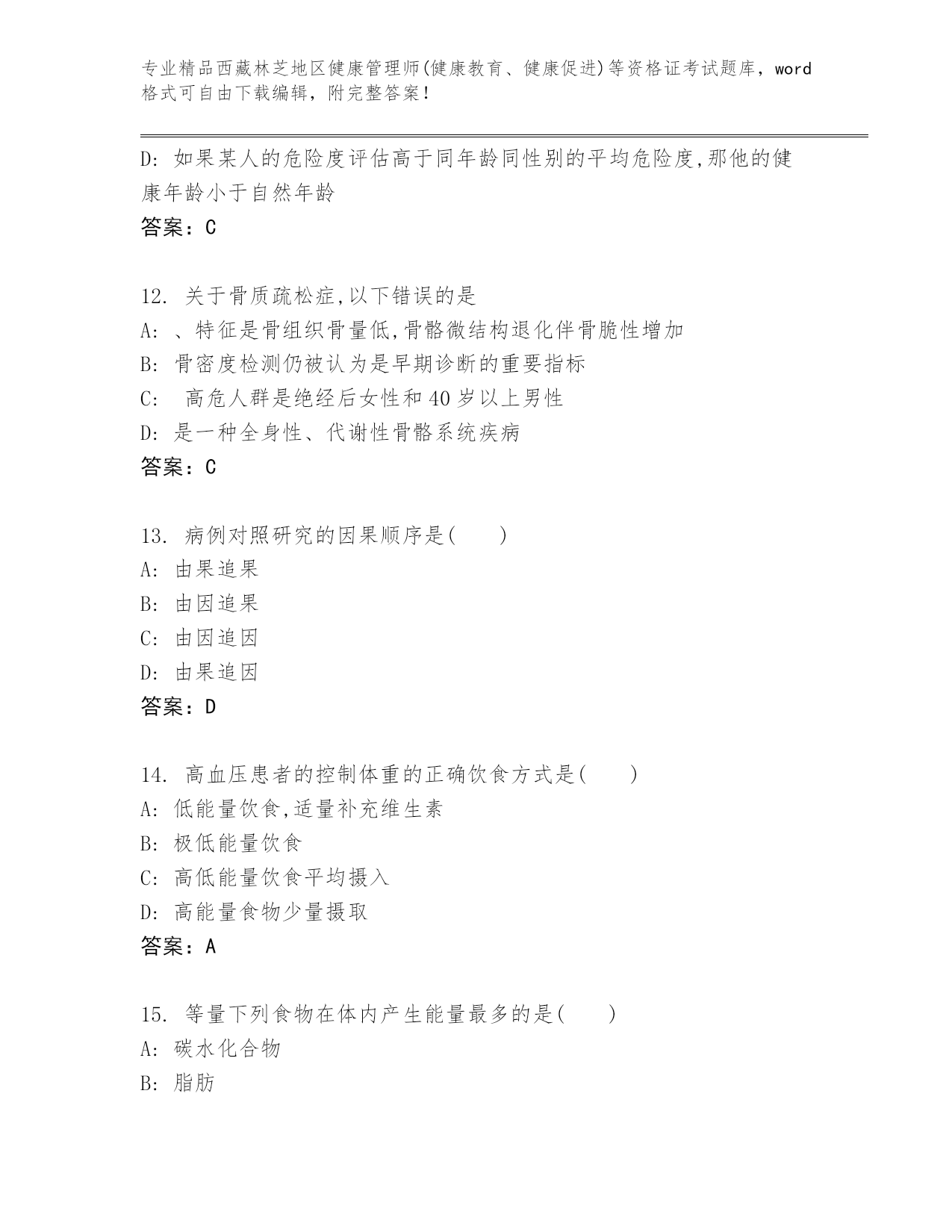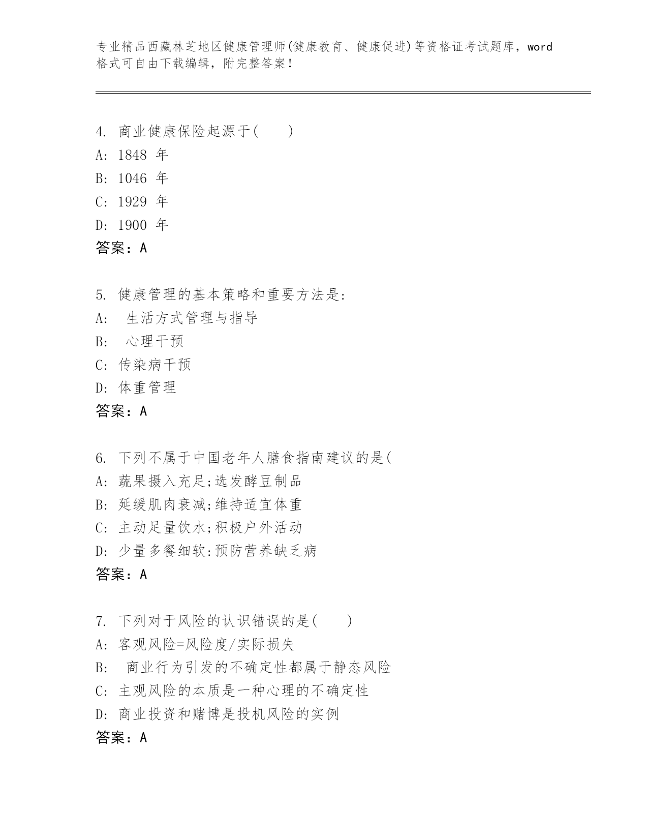 内部培训西藏林芝地区健康管理师(健康教育、健康促进)等资格证考试王牌题库及答案(必刷).docx