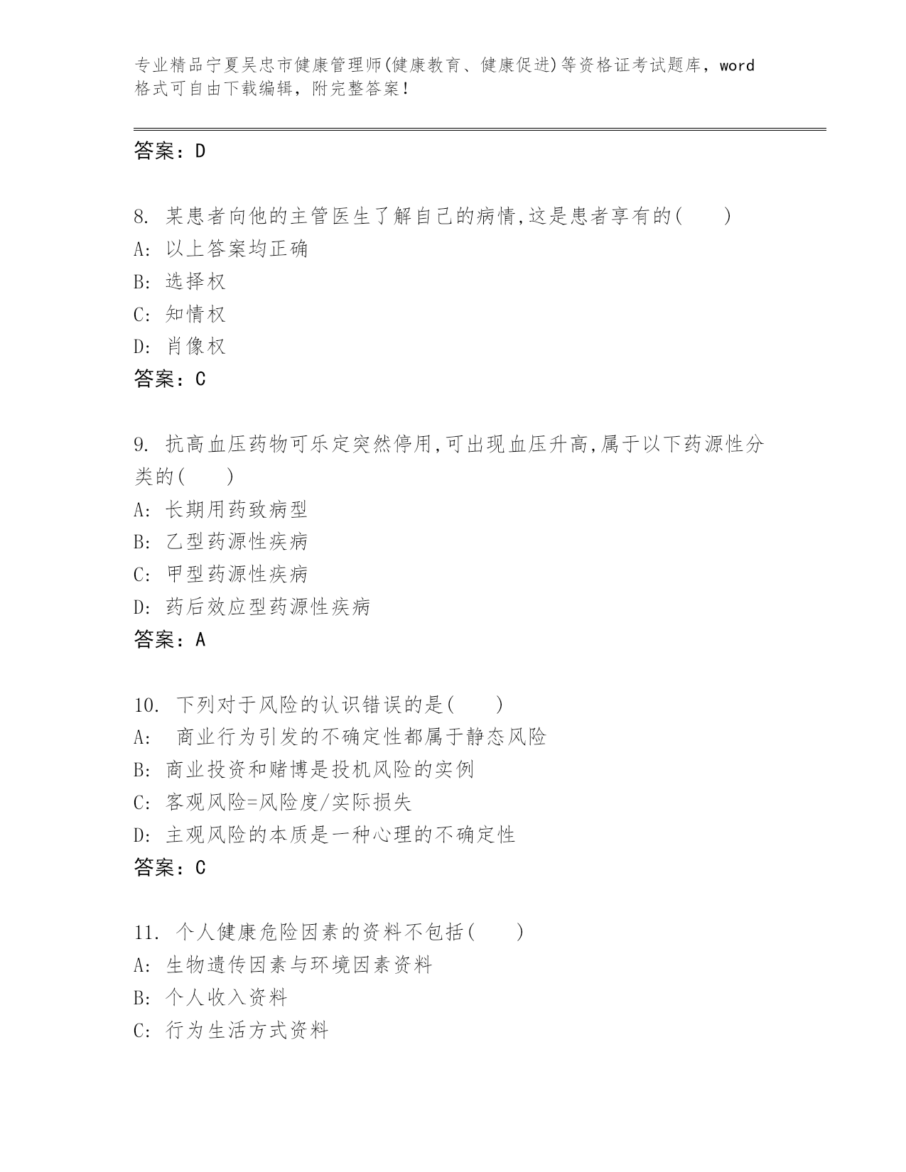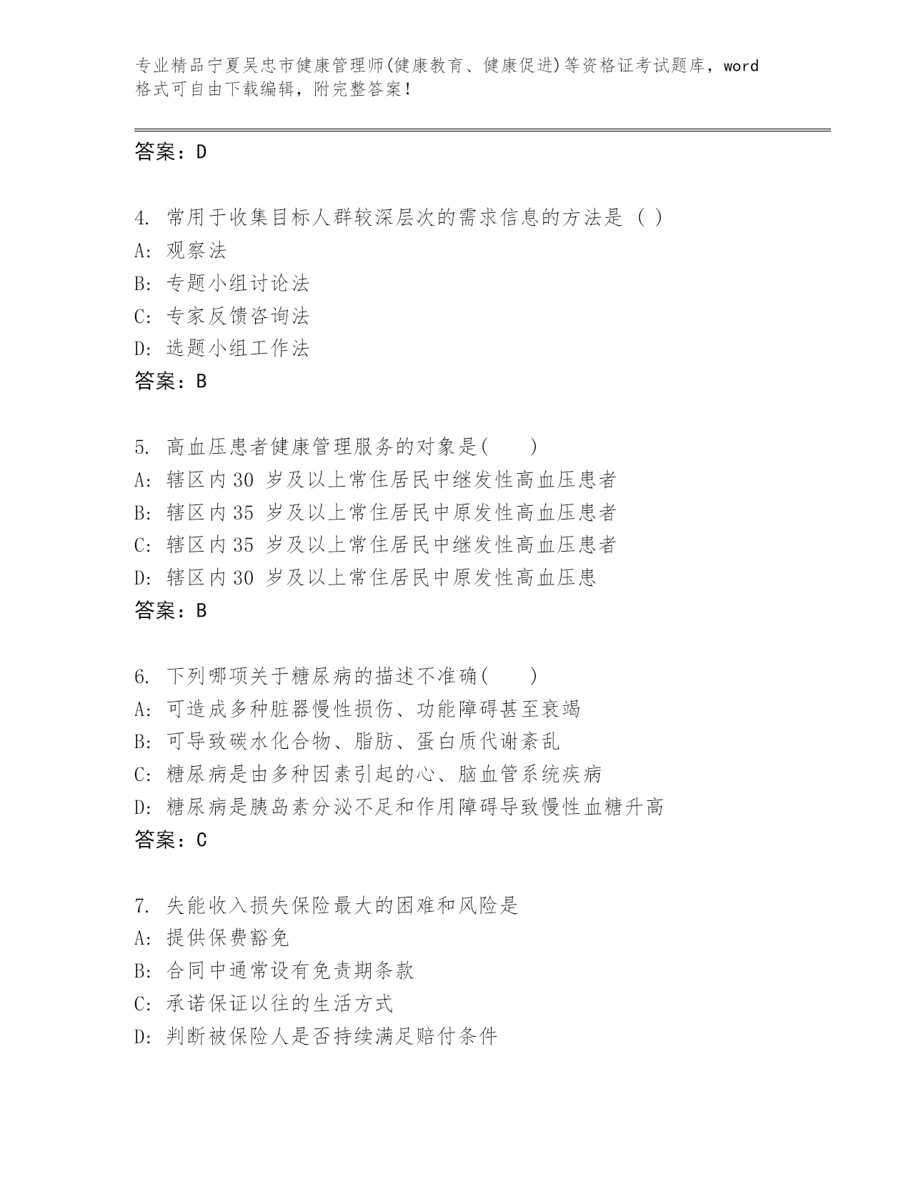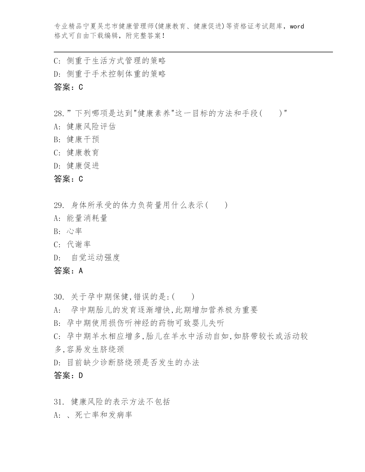 历年宁夏吴忠市健康管理师(健康教育、健康促进)等资格证考试精品题库【夺冠】