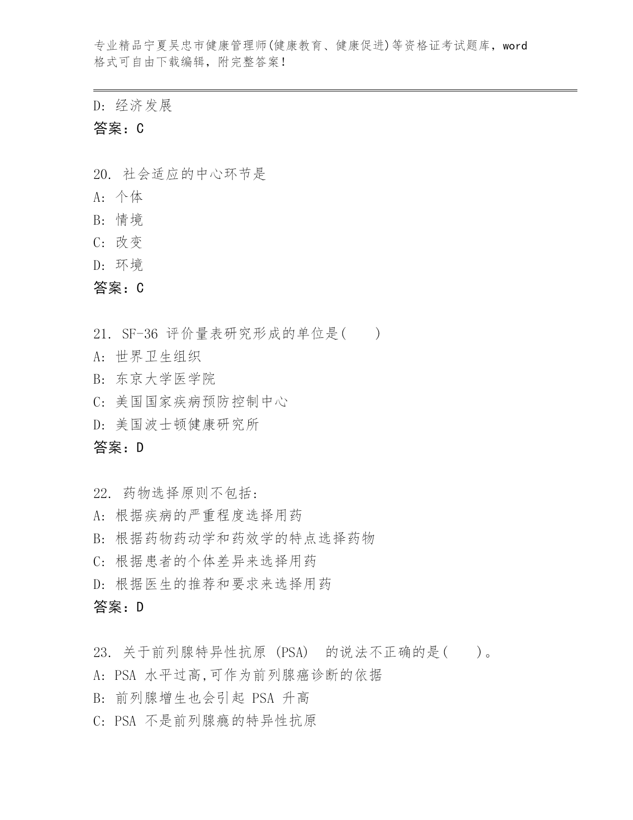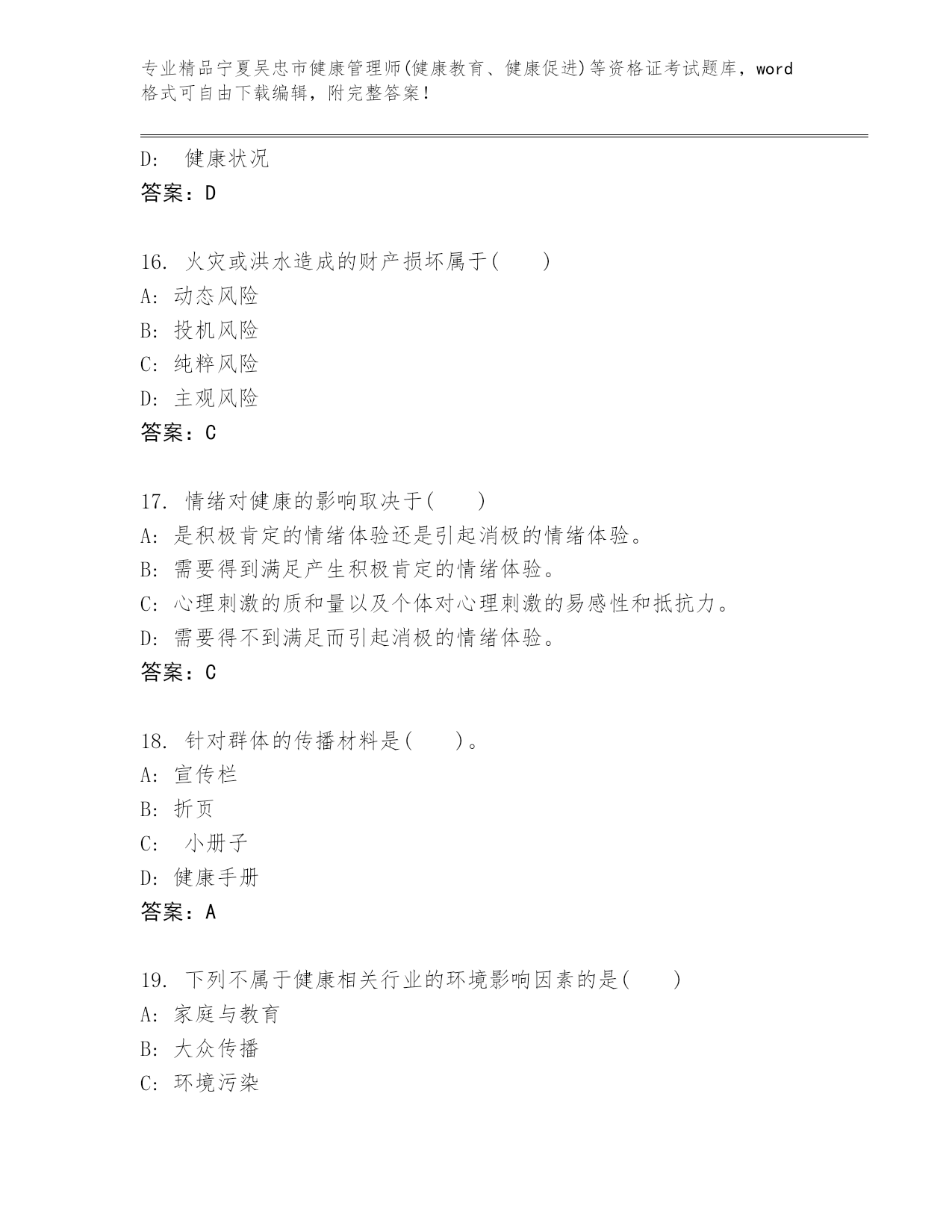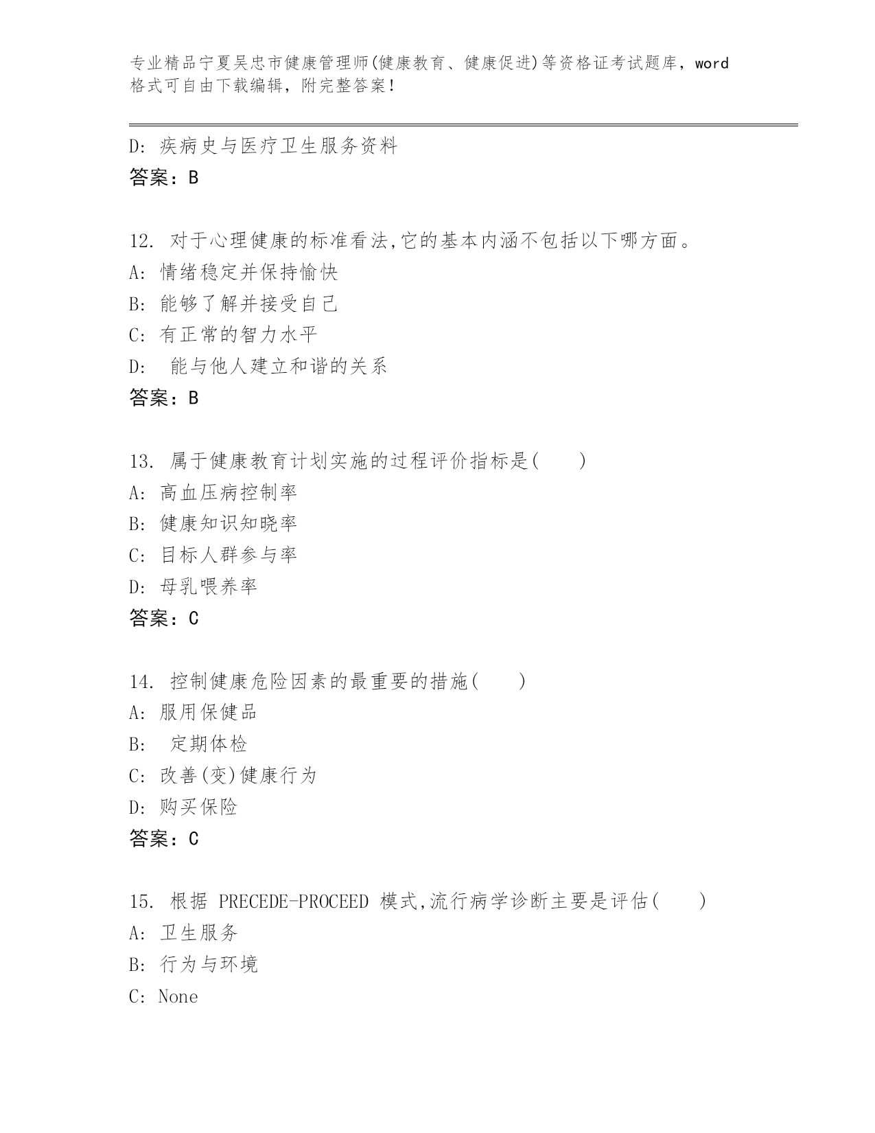 历年宁夏吴忠市健康管理师(健康教育、健康促进)等资格证考试精品题库【夺冠】