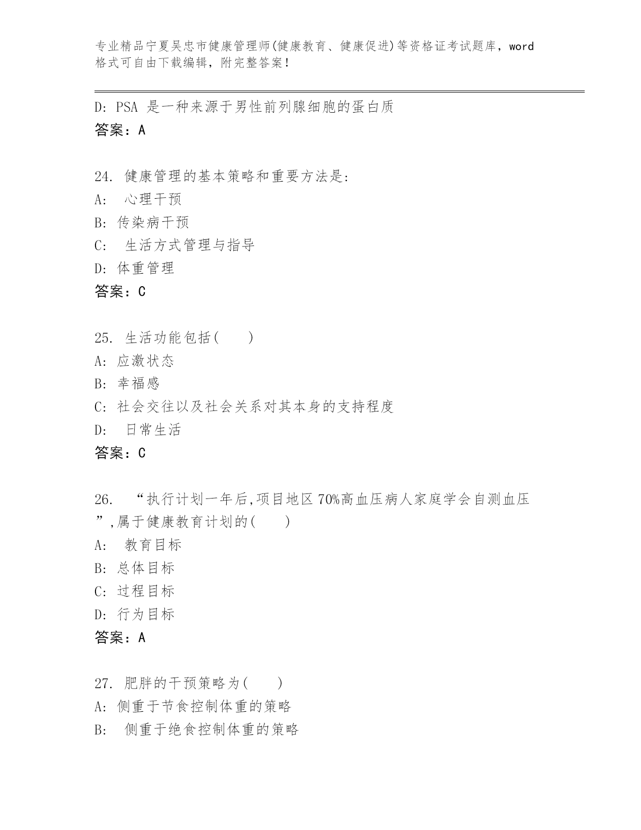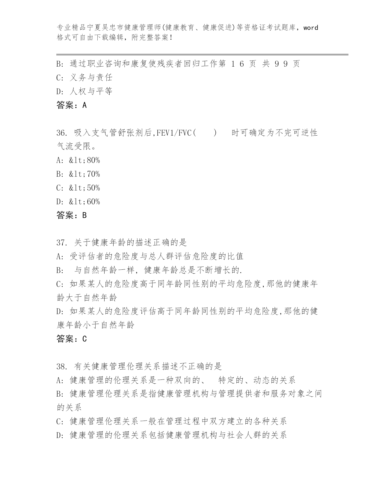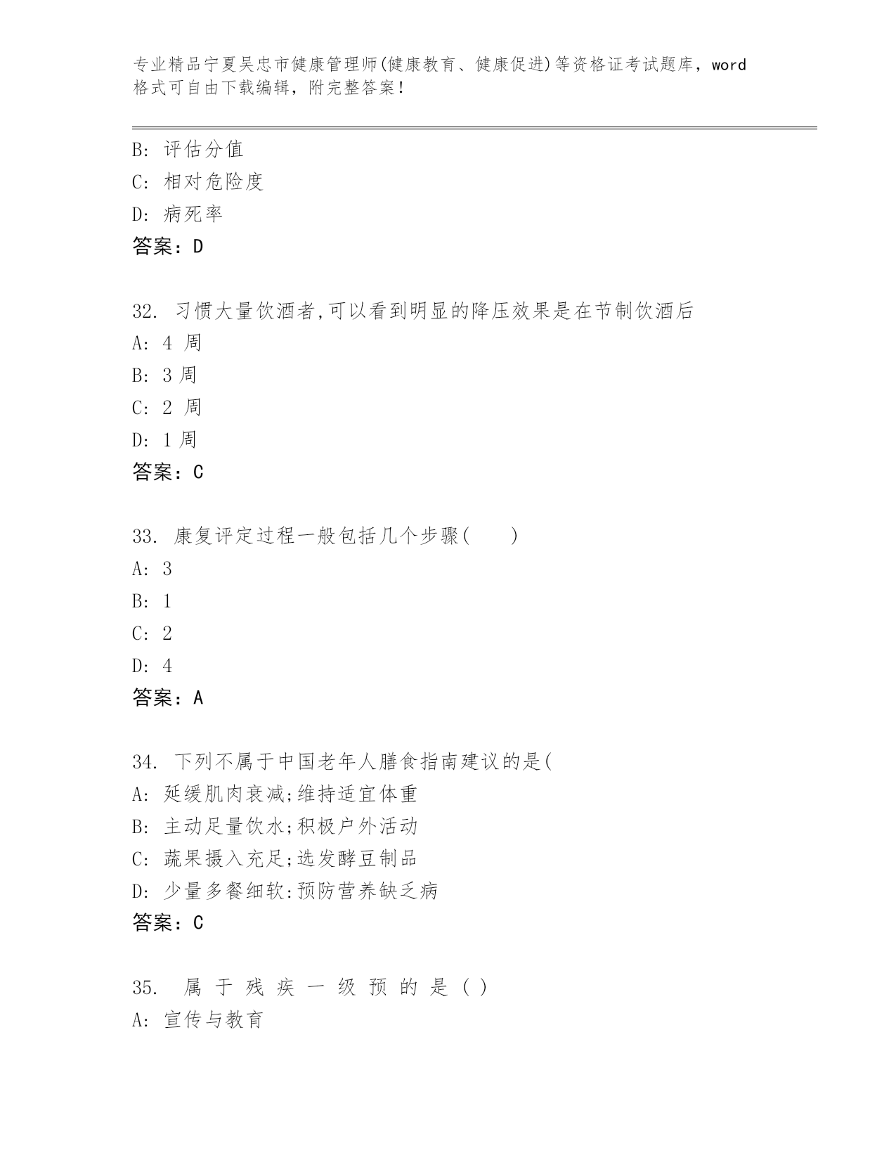 历年宁夏吴忠市健康管理师(健康教育、健康促进)等资格证考试精品题库【夺冠】.docx