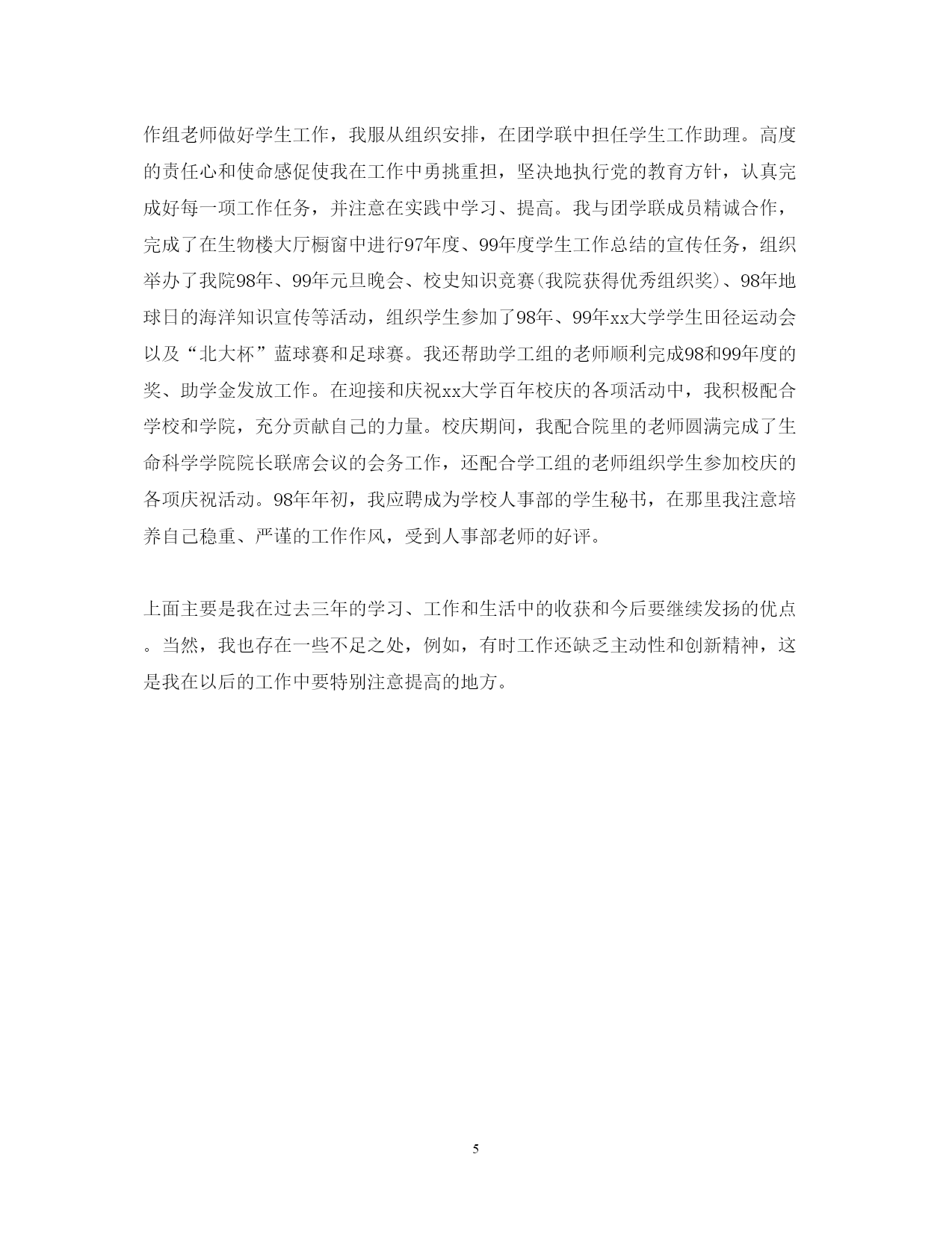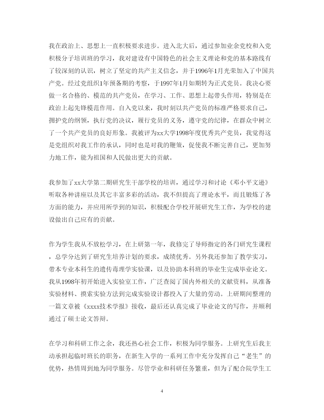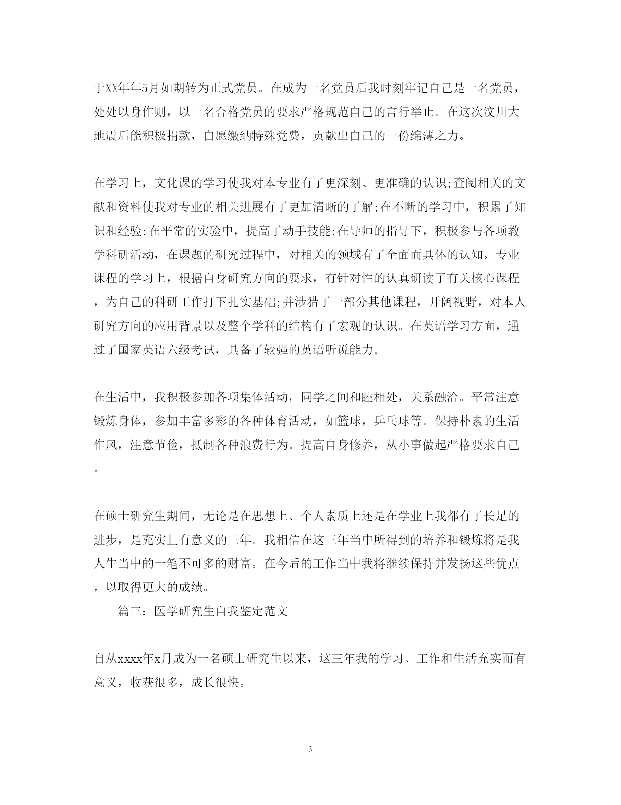 此资料由网络收集而来,如有侵权请告知上传者立即删除。资料共分享,我们负责传递知识。PAGEPAGE5研究生自我鉴定【精选】研究生(Postgraduate)是高等教育的一种学历,以研究生为最高学历,研究生毕业后,也可称研究生,含义为具有研究生学历的人。本科毕业后可以通过考核继续读硕士研究生,而硕士研究生可以继续攻读博士研究生。硕士研究生毕业后可获取硕士学位,博士研究生毕业后可获取博士学位。下面是3篇关于研究生的自我鉴定范文,希望对大家有帮助!篇一:优秀的研究生自我鉴定本人在硕士研究生学习阶段,思想上要求上进,认真学习,努力钻研专业知识,毕业之际,回顾两年来的学习、工作以及生活,做自我鉴定如下:思想方面。我认真学习马克思列宁主义、毛泽东思想、邓小平理论和“三个代表”重要思想;关心时事政治,关心学校的改革与发展;拥护党的路线、方针和政策,能认真执行学校、实验室的决议;尊敬导师、团结同学、乐于助人、勇于奉献,具有良好的道德品质和思想修养;能遵守国家法律、法令和学校各项规章制度。作为一名中共党员和一名学生干部,我始终努力学习、积极工作,在自己进步的同时还不忘帮助别人进步,先后担任了几位同志的入党介绍人、充分发挥党员学生干部的模范带头作用。学业方面。我的研究方向为虚拟现实和仿真技术,主要研究兴趣为三维模型的简化与网络传输。学术思想活跃、学习目的明确,态度端正、学风良好,勤奋学习,刻苦钻研,成绩优秀。在所选的研究生课程中,成绩全部为优良;在国际会议发表了学术论文两篇;在导师的指导下,参与了两个科研项目并在项目中独立负责一个模块,使自己的理论知识与实践水平得到了进一步的增强和提高。工作方面。我曾任测绘遥感信息工程国家重点实验室研究生会副主席、实验室政治协理员。在担任副主席期间,组织了多场晚会、联谊会、弘毅讲堂系列学术讲座;成功策划了首届“学术科技节”活动、组织了本室的学术之星评比,推荐、协助钟艳飞博士参加校级选举并荣获“十大学术之星”称号。我的工作积极性和组织协调能力也得到了认可,被评为“优秀研究生干部”。作为政治协理员,积极的配合分管党务工作的老师、指导和协调各班党支书开展工作,出色的完成了任务。其它方面。研究生的确应该视学术为生命,但是综合素质的提高是最重要的。我组织和参与了实验室的系列体育赛事,并获得了不错的名次;积极参加学校的辩论赛。坚持听一些社会、文化等领域的名家讲座,提高自身的修养。业余时间爱好摄影,作为青年志愿者参与了国际学术会议的拍摄工作并负责实验室重大活动的摄影任务;在摄影专业杂志发表文章一篇。本人在研究生阶段所获颇丰,从学业、科研工作,到个人素质,都得到了充分的培养和锻炼,是充实且有意义的两年。相信这些经历和积累都将成为我人生道路上的宝贵财富。在以后的工作和学习中,本人将继续保持并发扬严谨治学的作风,兢兢业业,争取取得更大的成绩。篇二:硕士研究生毕业自我鉴定范文时间如白驹过隙,三年的研究生生活转迅即失。在毕业之际,回首这三年走过的路,收获颇多,总的说起来有以下几点:在政治上、思想上我一直积极要求进步。我是在XX年5月光荣地成为了一名预备党员,在进入华南农业大学后,通过本党支部同志的影响,带动,帮助,思想上有了更大的进步,并加深了我对建设有中国特色的社会主义理论和党的基本路线深刻的认识,进一步的树立了坚定的共产主义信念。经过党组织1年预备期的考察,于XX年年5月如期转为正式党员。在成为一名党员后我时刻牢记自己是一名党员,处处以身作则,以一名合格党员的要求严格规范自己的言行举止。在这次汶川大地震后能积极捐款,自愿缴纳特殊党费,贡献出自己的一份绵薄之力。在学习上,文化课的学习使我对本专业有了更深刻、更准确的认识;查阅相关的文献和资料使我对专业的相关进展有了更加清晰的了解;在不断的学习中,积累了知识和经验;在平常的实验中,提高了动手技能;在导师的指导下,积极参与各项教学科研活动,在课题的研究过程中,对相关的领域有了全面而具体的认知。专业课程的学习上,根据自身研究方向的要求,有针对性的认真研读了有关核心课程,为自己的科研工作打下扎实基础;并涉猎了一部分其他课程,开阔视野,对本人研究方向的应用背景以及整个学科的结构有了宏观的认识。在英语学习方面,通过了国家英语六级考试,具备了较强的英语听说能力。在生活中,我积极参加各项集体活动,同学之间和睦相处,关系融洽。平常注意锻炼身体,参加丰富多彩的各种体育活动,如篮球,乒乓球等。保持朴素的生活作风,注意节俭,抵制各种浪费行为。提高自身修养,从小事做起严格要求自己。在硕士研究生期间,无论是在思想上、个人素质上还是在学业上我都有了长足的进步,是充实且有意义的三年。我相信在这三年当中所得到的培养和锻炼将是我人生当中的一笔不可多的财富。在今后的工作当中