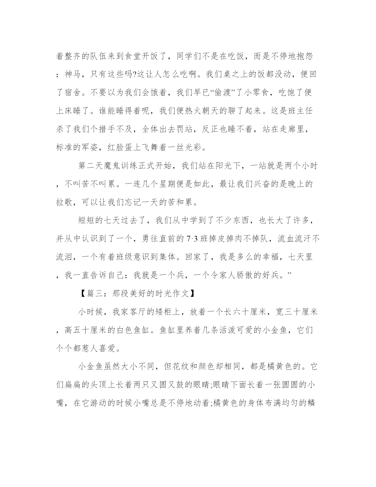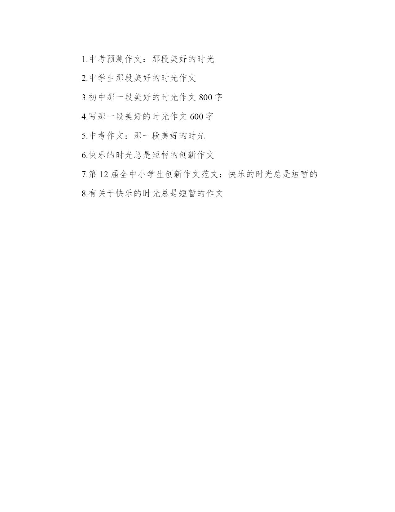 中考预测作文:那段美好的时光【篇一:这段美好的时光】今天是一个令我们都高兴的日子,今天我们将去春游。今年跟以往不一样,这次,我们是徒步去的。今年暑假,我和妈妈一同去欣赏美丽的花,我觉得这是段美好的时光。随着人流,我和妈妈步入菊展室。这里展出的菊花,有的含花欲放,有的盛开吐蕊……一株株,一盆盆,一丛丛,红的似火,黄的似金,绿的像玉,白的若云,一时间,五光十色,满堂生辉。恍惚间,我宛如进入仙境,看,那菊花佳品“绿牡丹”花瓣丰腴,外金内朱,如初升的朝阳,可谓得菊“军”之帅,与“帅旗”相映生辉的是娇柔娇媚的“静女”。它花瓣如丝,垂发低音,娴静优雅,妩媚多情,给予人别一种美的享受,耐人寻味的“二乔”,花朵半紫半黄,亭亭玉立。看到它,就不禁止使人想起了三国演义中的故事,我看着想着,遐思无尽,流连不舍。色泽如雪的“白牡丹”,“古都瑞雪”洁白如玉,密抱如雪球,成为画家们一再光顾的对象,不断受到摄影着的包围,更逗人喜欢的更数那花色可爱的“木兰换装”初开时是青莲色,晚间变粉,刚中带柔,英勇中又不失女儿气,颇像女份男装,替父从军,尔后又悄然还裙钗的花木兰。出了展室,我伸吸一口气,心里还回想花的美丽,我认为这是段美好的时光。【篇二:记军训那段美好的时光】“军号嘹亮,步伐整齐,人民军队有铁的纪律…”每每听到这首歌,便让我想起:军人像秋天原野上的一颗白杨树,魁梧挺拔,朴实健壮,站在哨岗上就像一颗立在地上的木桩子。我的理想便是当一名军人,军训实现了我这个理想,让我和军人有了一次亲密的接触。8月23日下午,告别家人,迈着沉重的步伐背上行李来到学校,说实话我是第一次离开家,虽然只有短短的七天,可在我眼里却是一个漫长的日子。来到学校,同学们的脸上表现出各种形态,可就在上车的那一瞬间,所有的人都哭了,望着窗外,是父母担心的眼神。这一路,车上一片寂静。我穿着一身合体的军装,配上大檐军帽,整齐的武装带,这一切使我显得英姿勃勃的风采。经过漫长的几个小时时间,我们到达了目的地,下了车,面对太阳,一双炯炯有神的大眼睛,绿色的军帽下露出乌黑发亮的头发,显示出军人特有的风度。看着那的大门缓缓的打开,我们都倒吸了一口气。我们的军官是一个矮胖矮胖的人,他把我们带到宿舍便走了,望着那锈理吧唧的床,不由得感叹:这是什么,能睡吗?说完边一屁股坐到了床上,这一坐不要紧,只听见卡尺卡尺的声音,让本来都不想在床上睡的我们更加愤怒。但还有10分钟就要检查了,我们不得不硬着头皮上了床,开始收拾。时间过得飞快,到了吃晚饭的时间,我们排着整齐的队伍来到食堂开饭了,同学们不是在吃饭,而是不停地抱怨:神马,只有这些吗?这让人怎么吃啊。我们桌之上的饭都没动,便回了宿舍。不要以为我们会饿着,我们早已“偷渡”了小零食,吃饱了便上床睡了。谁能睡得着呢,我们便热火朝天的聊了起来。这是班主任杀了我们个措手不及,全体出去罚站,反正也睡不着,站在走廊里,标准的军姿,红脸蛋上飞舞着一丝光彩。第二天魔鬼训练正式开始,我们站在阳光下,一站就是两个小时,不叫苦不叫累。一连几个星期便是如此,最让我们兴奋的是晚上的拉歌,可以让我们忘记一天的苦和累。短短的七天过去了,我们从中学到了不少东西,也长大了许多,并从中认识到了一个,勇往直前的7·3班掉皮掉肉不掉队,流血流汗不流泪,一个有着班级意识到集体。回家了,我是多么的幸福,七天里,我一直告诉自己:我就是一个兵,一个令家人骄傲的好兵。”【篇三:那段美好的时光作文】小时候,我家客厅的矮柜上,放着一个长六十厘米,宽三十厘米,高五十厘米的白色鱼缸。鱼缸里养着几条活泼可爱的小金鱼,它们个个都惹人喜爱。小金鱼虽然大小不同,但花纹和颜色却相同,都是橘黄色的。它们扁扁的头顶上长着两只又圆又鼓的眼睛;眼睛下面长着一张圆圆的小嘴,在它游动的时候小嘴总是不停地动着;橘黄色的身体布满均匀的鳞片。小金鱼的尾巴看起来像是透明的,在他游动的时候,尾巴和身子都会不停的摆来摆去,看起来可爱极了。爷爷说,小金鱼应该两天喂一次鱼食,三天换一次水。每次喂食都要严格限量,平均一尾鱼喂三至四粒鱼食即可,如果喂的多了鱼就会撑死,小金鱼吃食的时候,常常互不相让。每当我在鱼缸里投放一点活食,他们就争先恐后的一拥而上,你争我夺,谁都不堪落后。瞧,激烈的抢食大赛开始了,一个最大的金鱼抢到另外几只小鱼的食物,虚晃一抢,猛的转身就跑。那几只小金鱼不堪示弱,一齐扑上去,把那条“大鱼”团团围住,“大鱼”招架不住,只好举鳍投降,吐出事物,逃之夭夭。天长日久,我和小金鱼儿建立了深厚的友谊。有一次,我家的客人来到鱼缸前跟它们打招呼,谁知小金鱼儿一点儿也不理睬他们,客人急得直拍缸,小金鱼儿仍然在鱼缸里自由自在地游来游去。可我一来,它们却变了样,欢快地向我游来,还不时地向我摇摇它们那美丽的大尾巴,似乎在向我讨好呢!一日夜晚