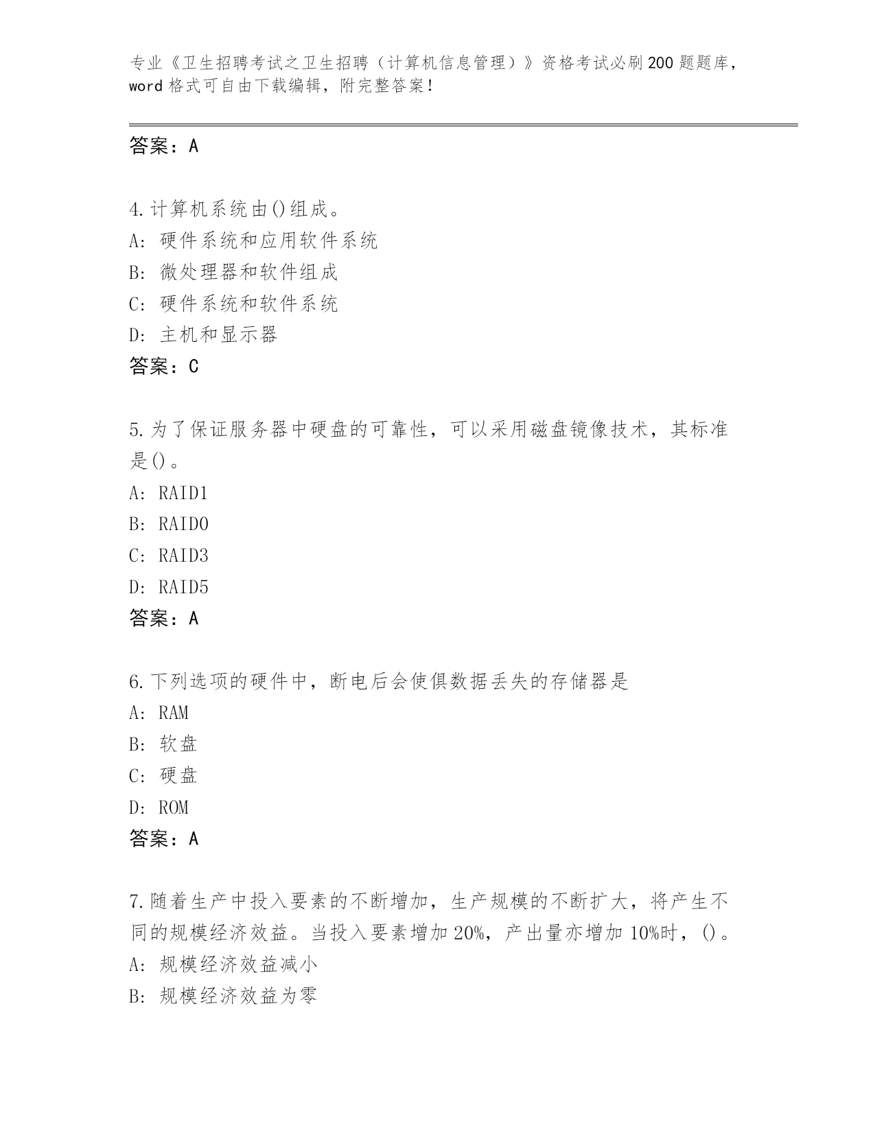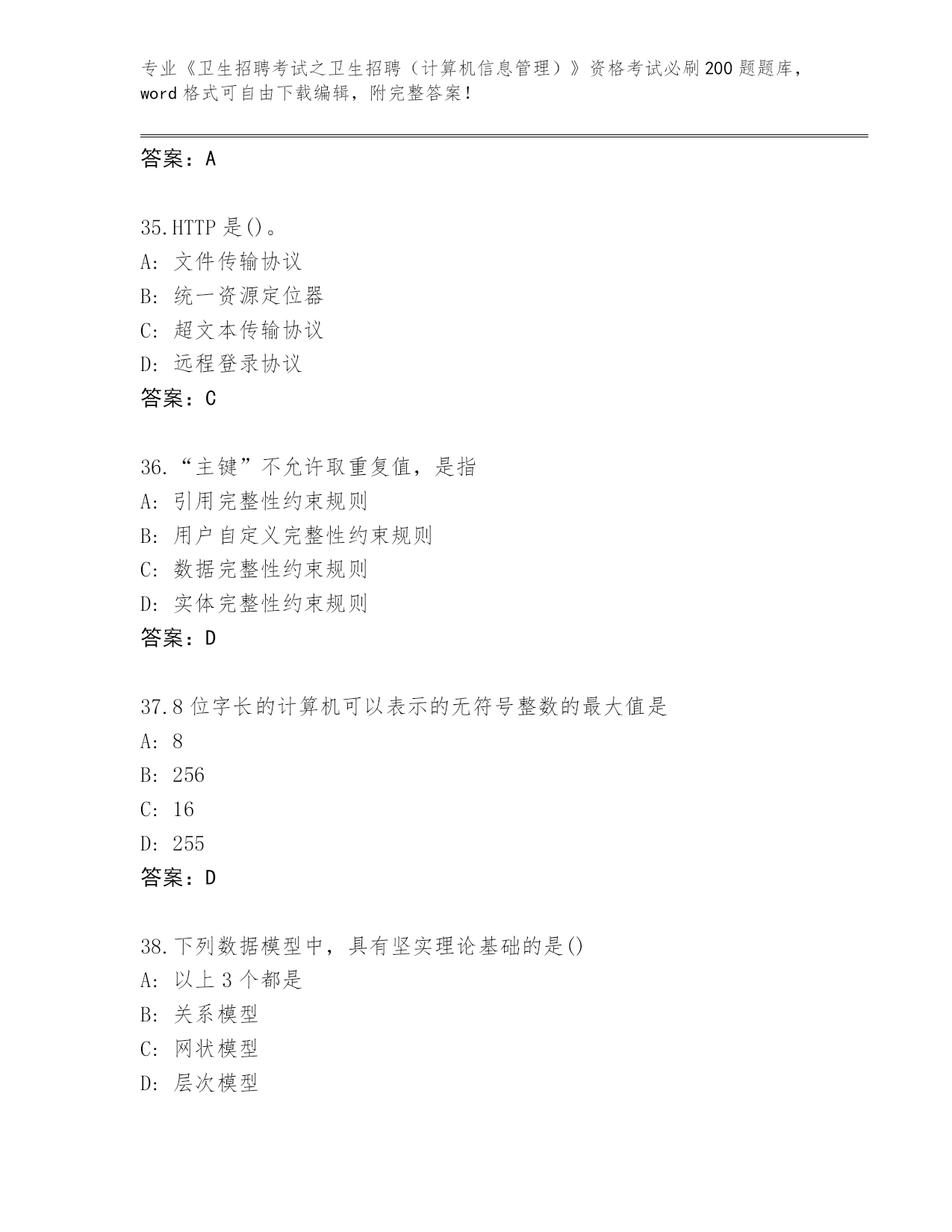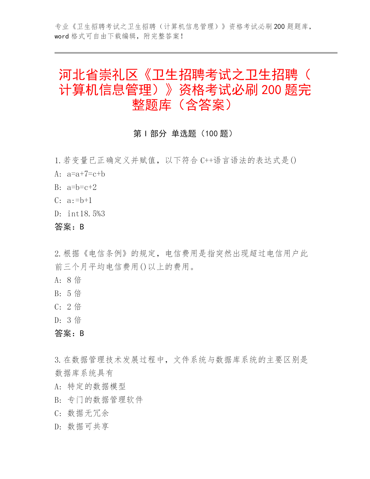 河北省崇礼区《卫生招聘考试之卫生招聘(计算机信息管理)》资格考试必刷200题完整题库(含答案)
