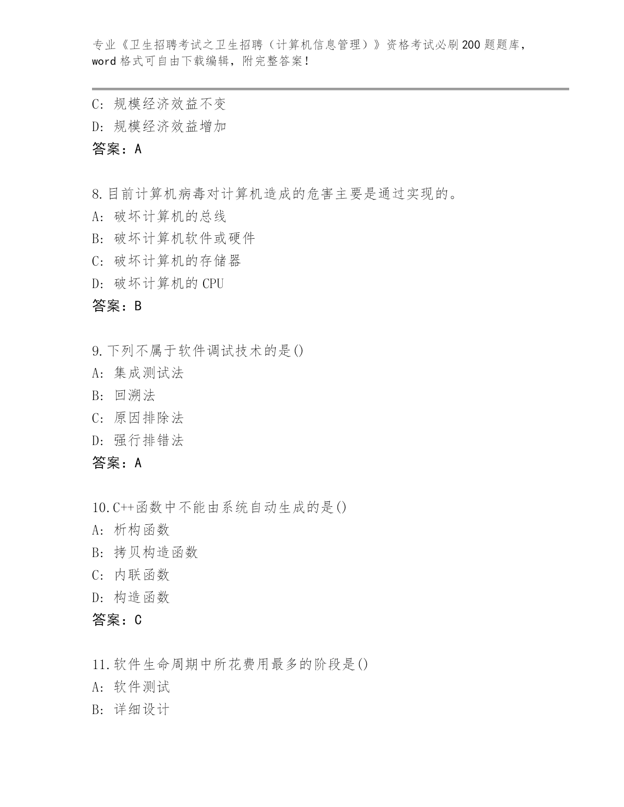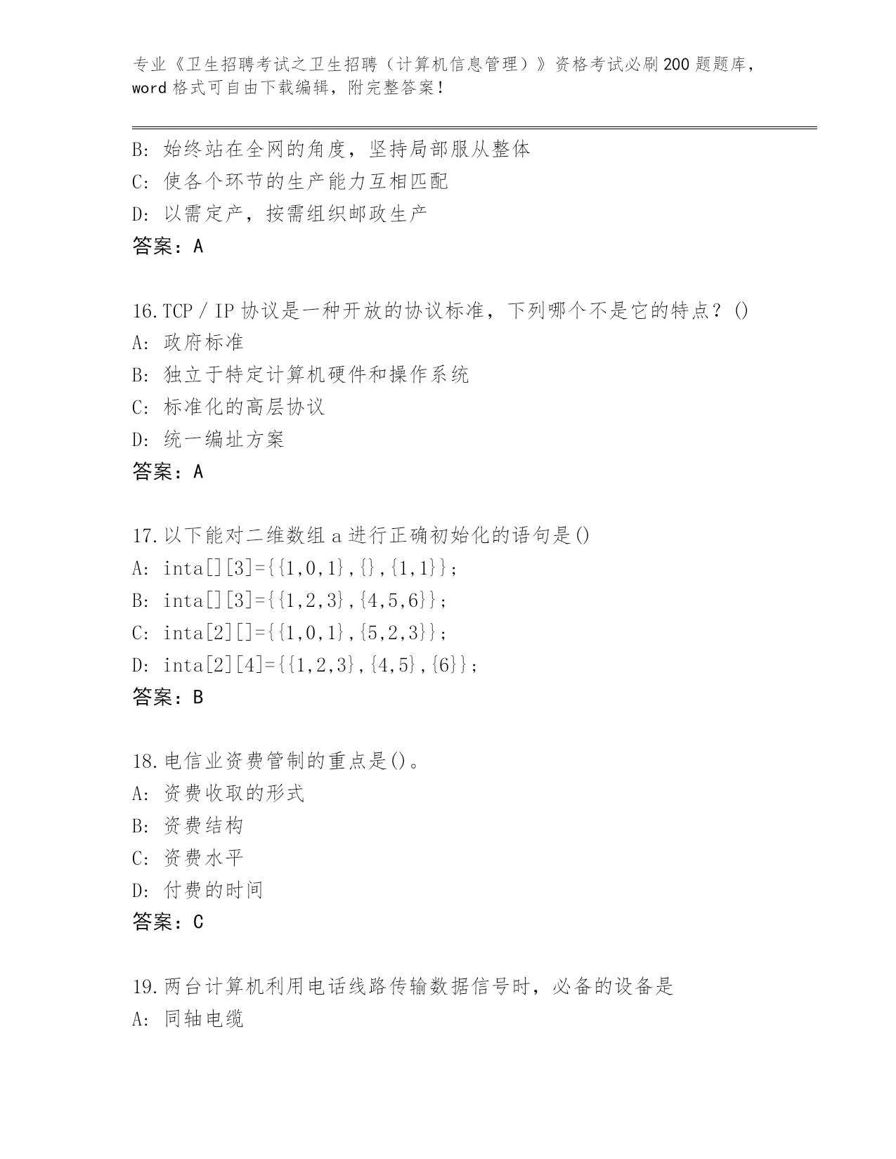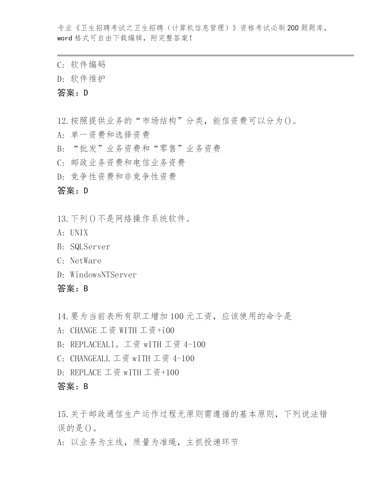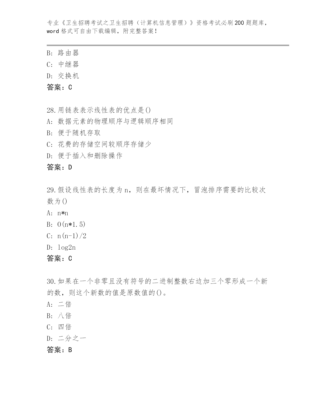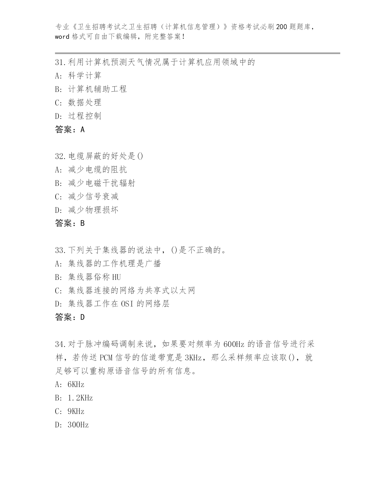整理河北省崇礼区《卫生招聘考试之卫生招聘(计算机信息管理)》资格考试必刷200题完整题库带解析答案