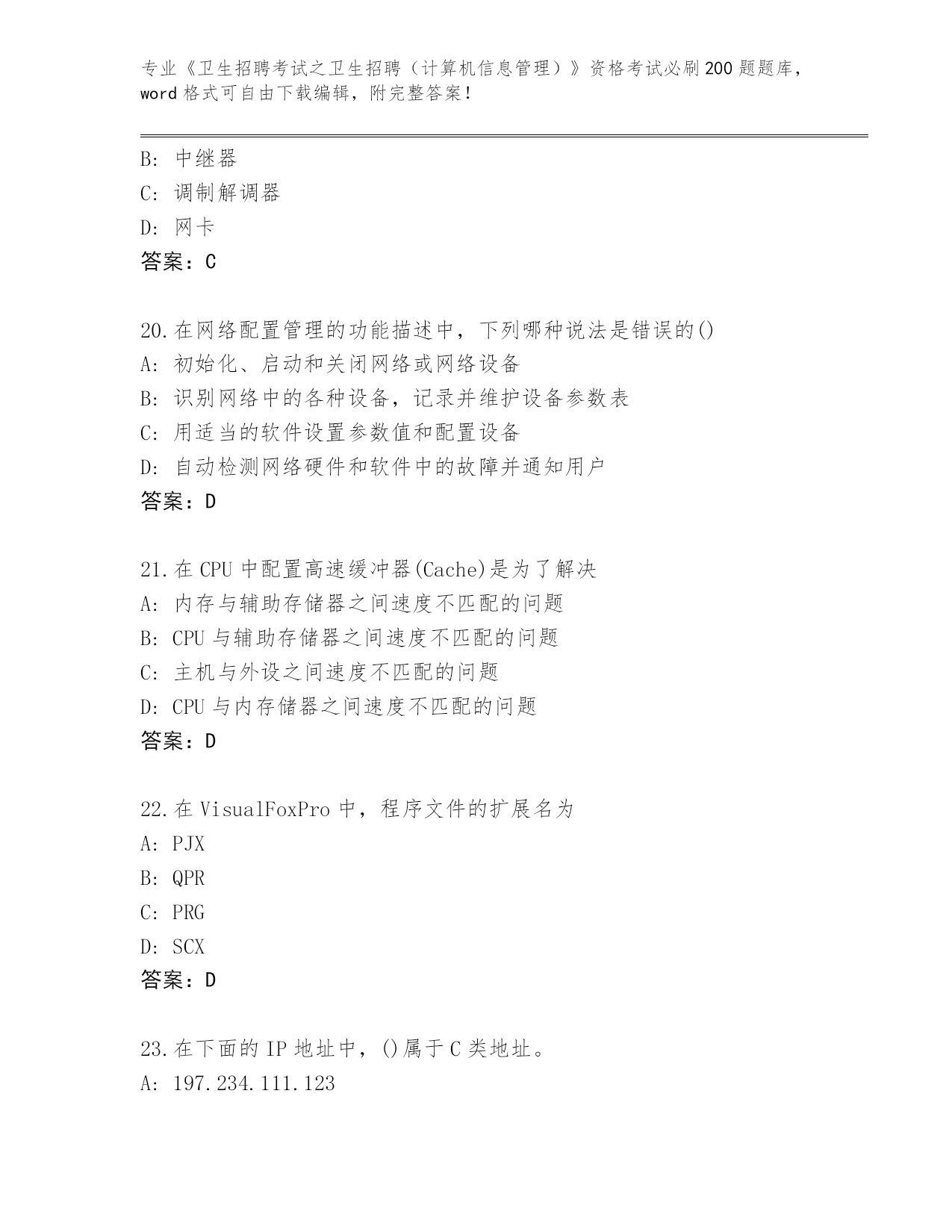 河北省崇礼区《卫生招聘考试之卫生招聘(计算机信息管理)》资格考试必背200题真题(夺冠系列)