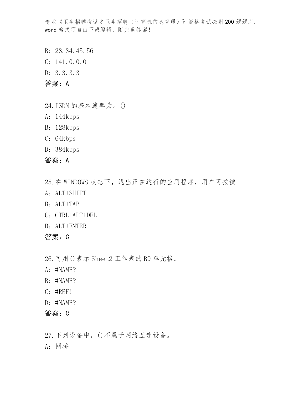 河北省崇礼区2024年《卫生招聘考试之卫生招聘(计算机信息管理)》考试必刷200题题库附答案(研优卷)