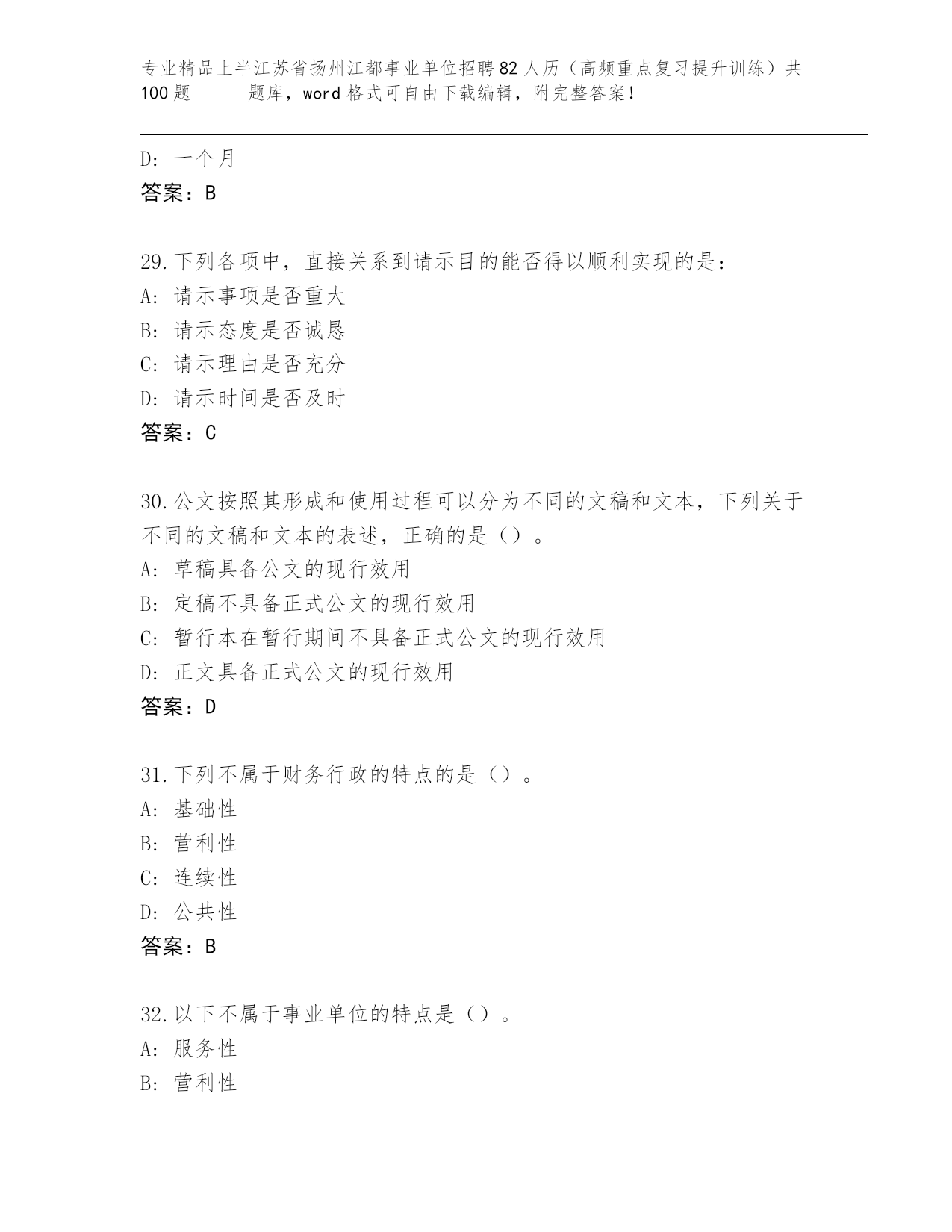 历年上半江苏省扬州江都事业单位招聘82人历(高频重点复习提升训练)共100题 题库及答案解析