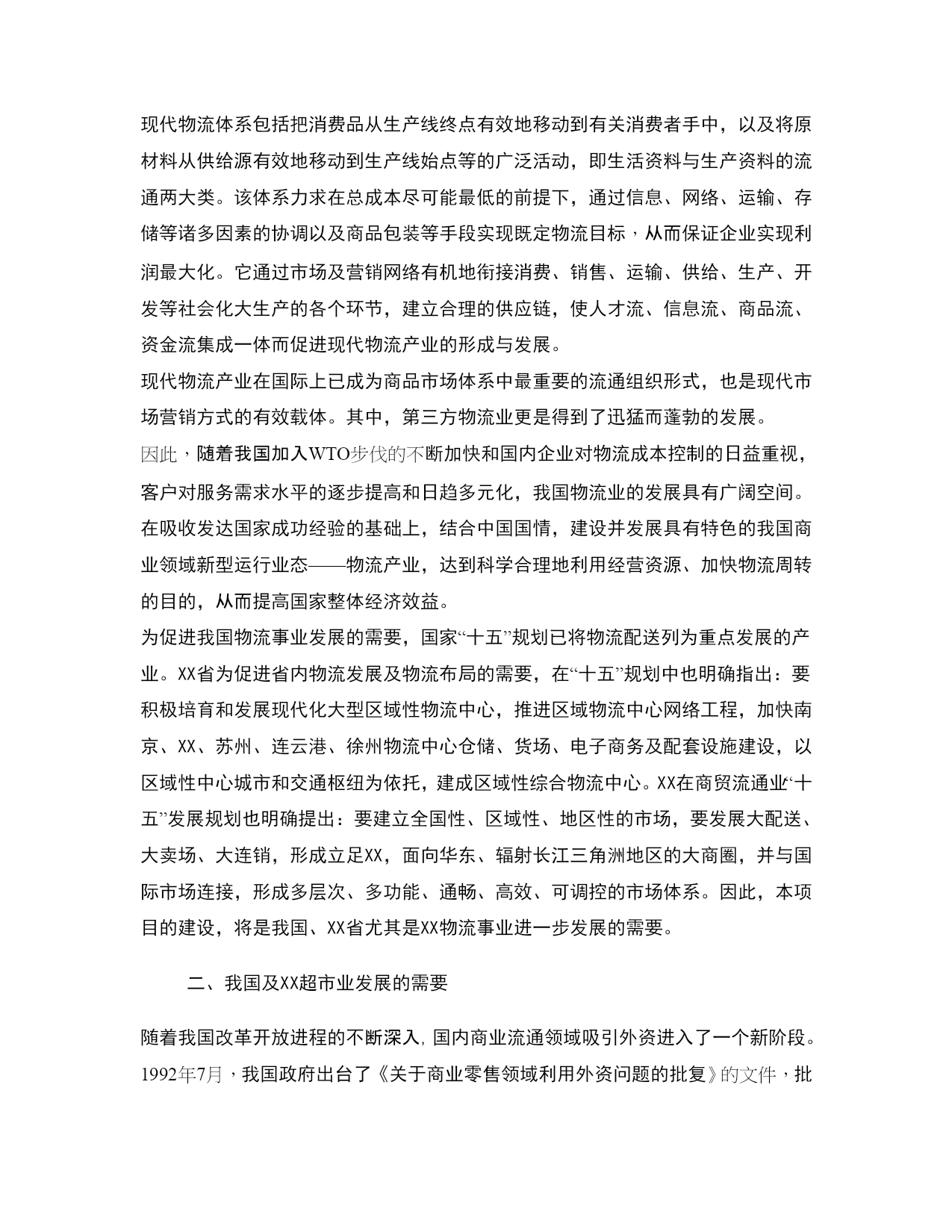 最新XX物流配送中心及超市项目方案-经典通用.doc