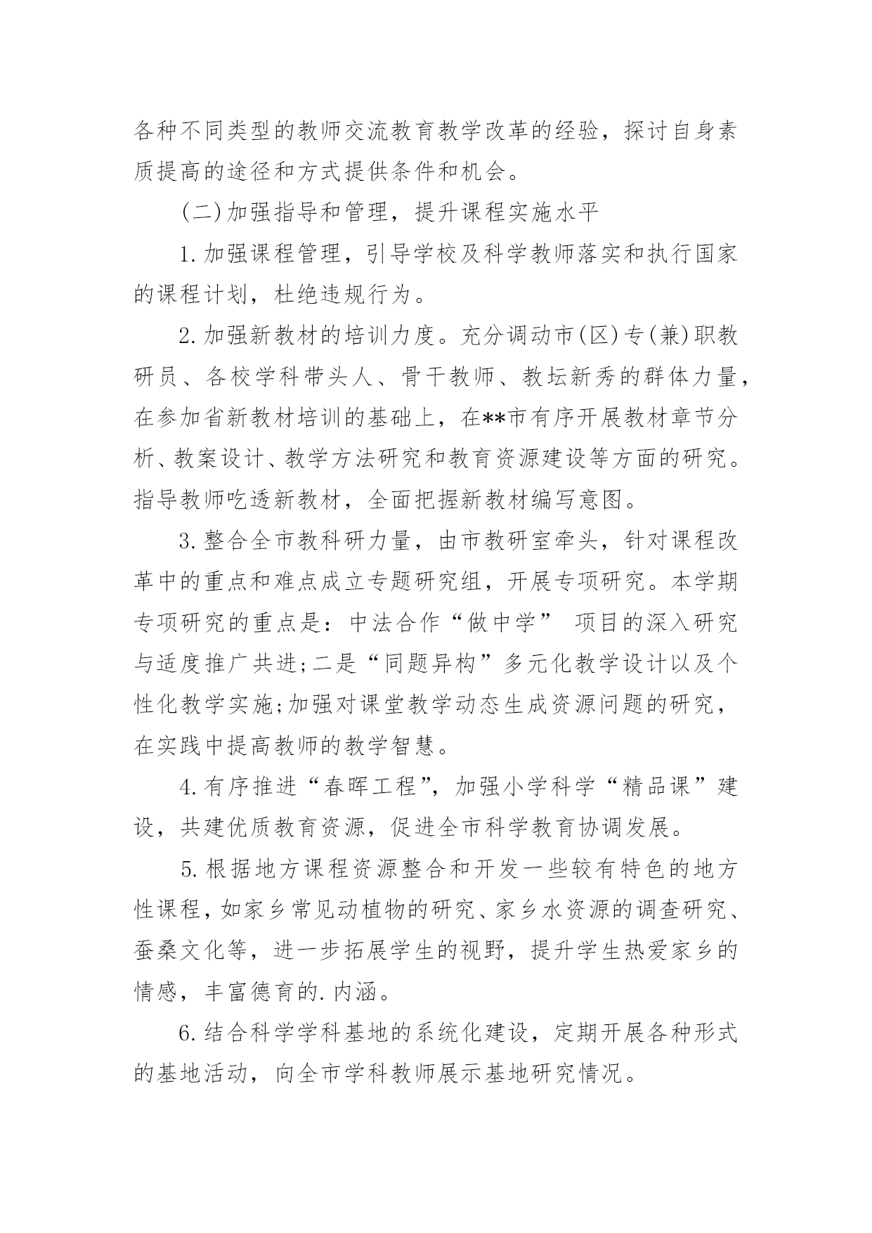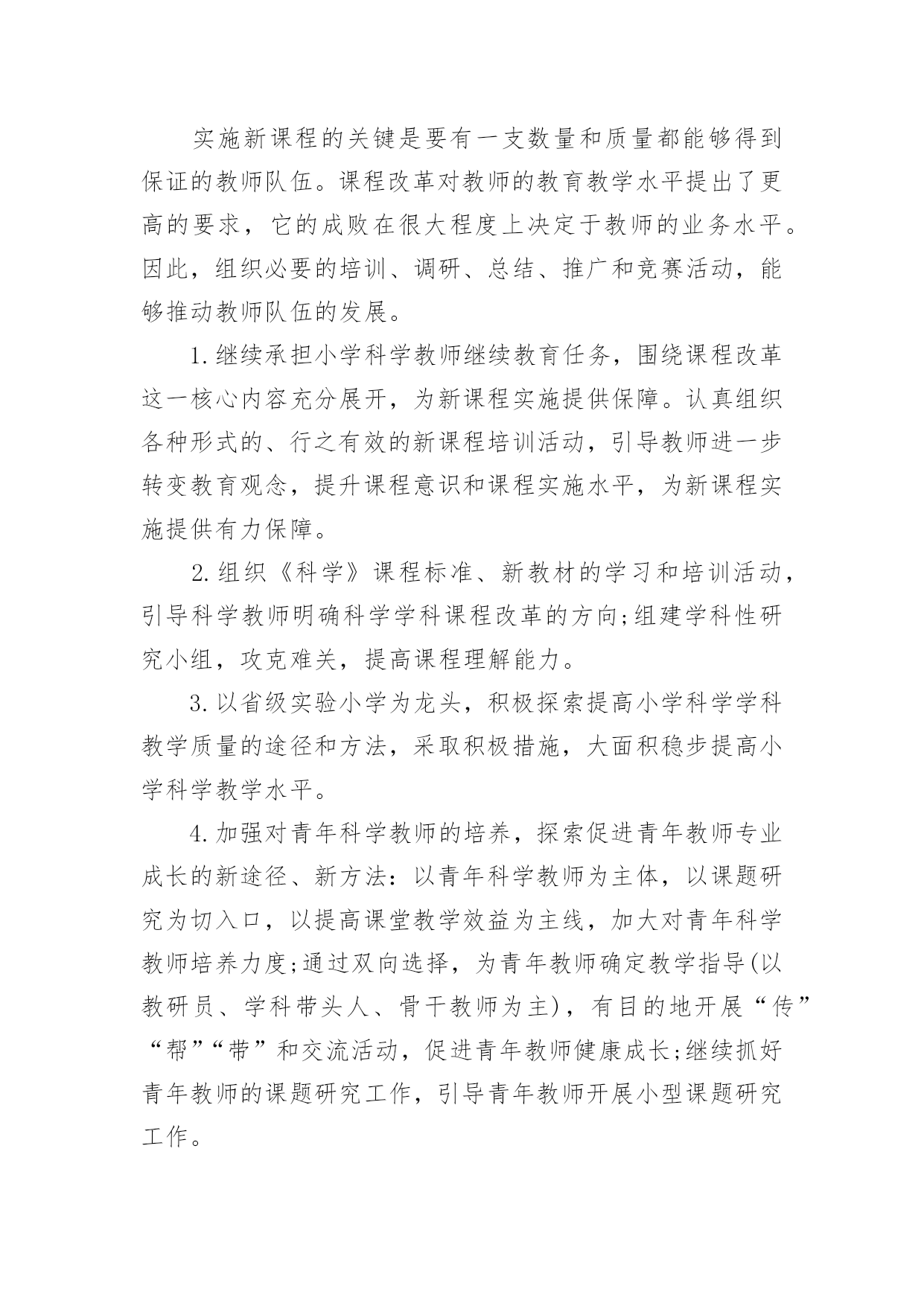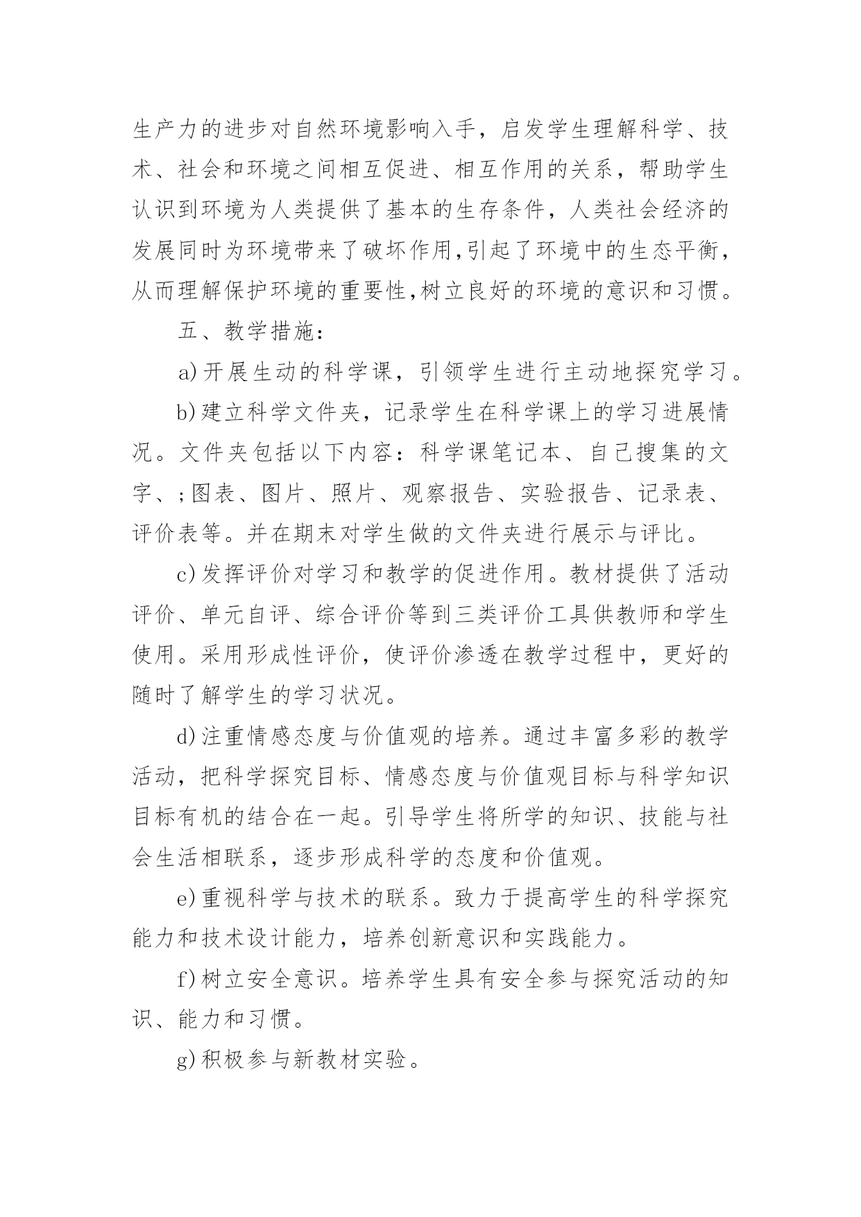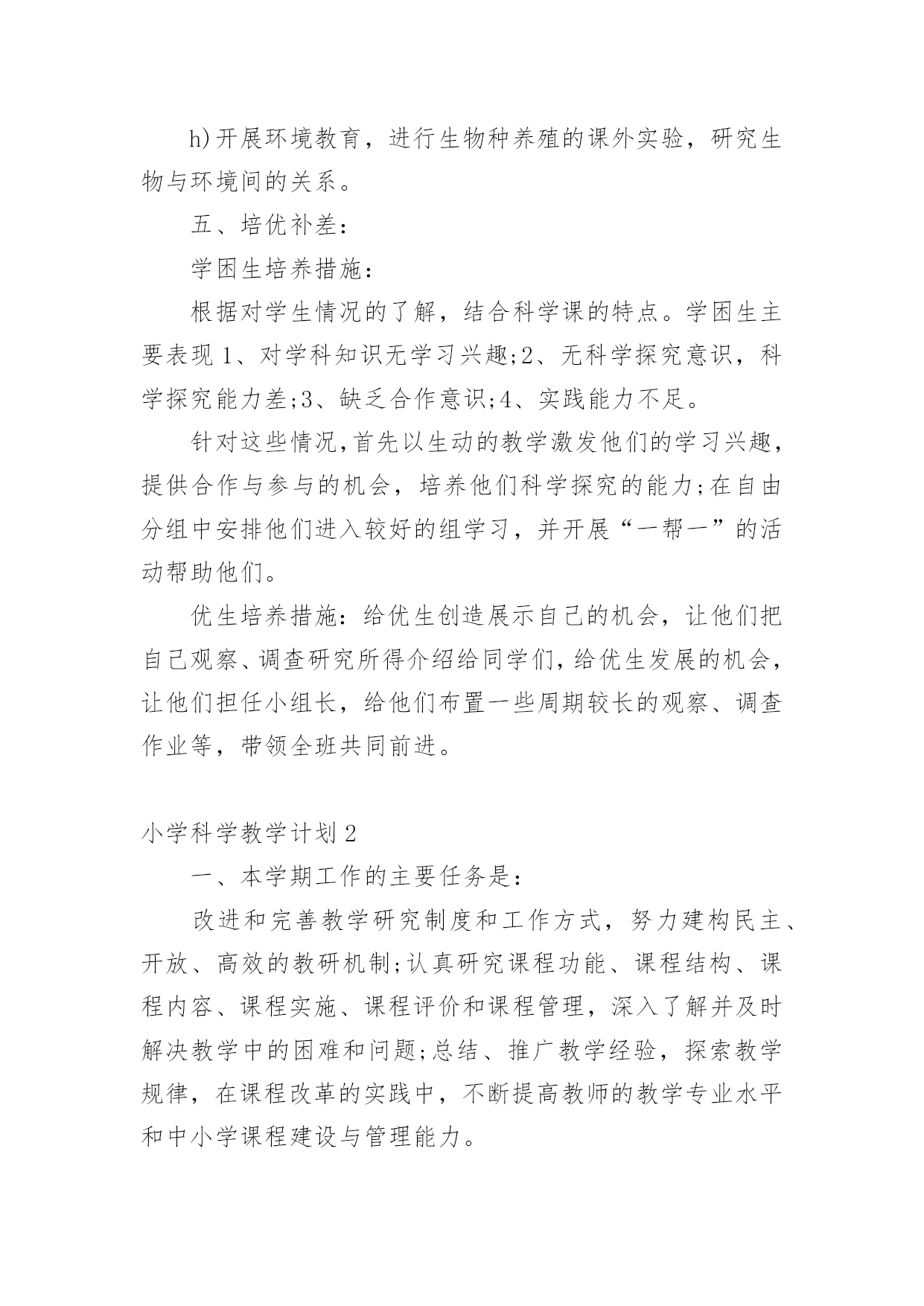 小学科学教学计划小学科学教学计划15篇日子如同白驹过隙,成绩已属于过去,新一轮的工作即将来临,此时此刻需要为接下来的工作做一个详细的计划了。相信许多人会觉得计划很难写?下面是小编精心整理的小学科学教学计划,欢迎阅读,希望大家能够喜欢。小学科学教学计划1一、基本情况:我今年担任五年级四个班的科学教学工作,也是我首次接触科学课,对学生对教材都不熟悉。学生近三百余名,生源复杂,遍及全县许多城镇。五年级的科学进入课程实验的新阶段。通过两年的学习,学生有了自己的科学思维方式,对科学探究过程有所了解,并能运用这一方法解决问题。但前两年的学习相比,本期课外实践活动增多,对观察和记录的要求很高,还需要长时间地观察和记录。要求学生有耐心、细致的学习态度。新教材中部分知识比较抽象,和学生以前所学相比,难度较大。学生有些习惯并未养成,如认真观察、调查研究等,有待我继续努力。二、教育教学内容:五年级主要围绕“作用与平衡”这组统一概念,整合课程标准中的科学探究、科学知识及科学态度、情感与价值观等方面的内容。本册围绕“作用与平衡”统整物质世界、生命世界、地球与宇宙世界等教学内容,共设计6个单元、23个课题。目的是激发学生探究生物与生物之间、生命与非生命之间、物质与物质之间错综复杂的相互作用与平衡关系。同时,着重培养学生做对比实验、条件控制实验、模拟实验等基本实验能力,以及观察分析实验结果,并用语言、文字、图表、模型等多种方式表述研究过程和结果的探究能力。精心设计的三个专题研究,旨在开拓学生思路,引导学生综合运用所学的知识和能力,经历较为完整的科学研究过程。三、奋斗目标:根据新科学课程标准,本册重在培养学生以下几种科学素养:科学探究:知道科学探究涉及的主要活动,理解科学探究的基本特征。能进行观察、实验、制作等探究活动。对生物、地球运动等科学内容进行探究。科学价值观:保持与发展想知道,爱提问、大胆想象、乐于探究的愿望。关心科学持新事物及STSE之间的联系。正确的理解科学,形成科学的思维方式。互助与合作的学习方式,学习中尊重事实、注重环境保护和与自然和谐相处。科学知识:使学生了解生命世界、地球与宇宙世界的一些基础知识。以及运用知识进行科学探究活动。通过本册学习,激发学生学习科学课的兴趣,使学生在科学探究、科学价值观、科学知识、STSE各方面得到发展。四、教材与实施:第一单元,生物生长的需要。从探究动植物的外部生存环境对其生长状况的`影响入手,引导学生探究动植物生长所需要的基本条件,以及周围环境对动植物生长的影响,使学生意识到保护环境、与自然和谐相处的重要意义。第二单元,生物与环境。继续引领学生探究生物与周围环境之间的各种相互作用及平衡的方式。教材从学生熟知的葵花向阳入手,探究生物与阳光、生物与温度、生物与水、生物与生物之间的关系,通过一系列的对比实验,让学生切实体会到生物与环境相适应(平衡)的生活习性和方式是多种多样的,同时生物自身的结构与其功能也是相适应的。第三单元,人与环境。通过思维游戏、角色表演、模拟体验、科学畅想等多种形式的活动,让学生感悟到人类是自然的一部分,既依赖于环境,以影响环境,树立人与自然环境和谐共处这一基本的环境保护意识。第四单元,冷和热。通过生活中常见的实例入手,引导学生探究热传递的不同方式,进而研究保温和散热的问题,发现物质与物质之间的相互作用与平衡,培养学生运用已有知识解决生活生产中实际问题的科学探究能力。第五单元,地表剧烈变化。在学生学习了生命世界和物质世界的作用与平衡、相互联系之后,继续学习地球宇宙世界中物质、能量的作用与平衡,引导学生从地球表面剧烈变化的地震、火山等现象入手,探索地球内部物质、能量之间相互作用与平衡的方式及关系。第六单元,环境保护。是全册的综合单元,教材从人类生产力的进步对自然环境影响入手,启发学生理解科学、技术、社会和环境之间相互促进、相互作用的关系,帮助学生认识到环境为人类提供了基本的生存条件,人类社会经济的发展同时为环境带来了破坏作用,引起了环境中的生态平衡,从而理解保护环境的重要性,树立良好的环境的意识和习惯。五、教学措施:a)开展生动的科学课,引领学生进行主动地探究学习。b)建立科学文件夹,记录学生在科学课上的学习进展情况。文件夹包括以下内容:科学课笔记本、自己搜集的文字、;图表、图片、照片、观察报告、实验报告、记录表、评价表等。并在期末对学生做的文件夹进行展示与评比。c)发挥评价对学习和教学的促进作用。教材提供了活动评价、单元自评、综合评价等到三类评价工具供教师和学生使用。采用形成性评价,使评价渗透在教学过程中,更好的随时了解学生的学习状况。d)注重情感态度与价值观的培养。通过丰富多彩的教学活动,把科学探究目标、情感态度与价值观目标与科学知识目标有机的结合在一起。引导学生将所学的知识、技能与社会生