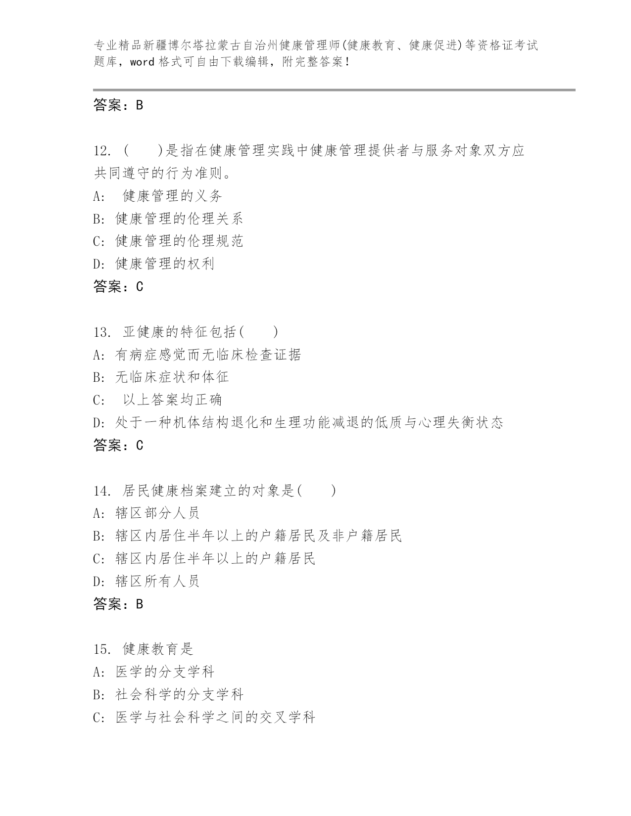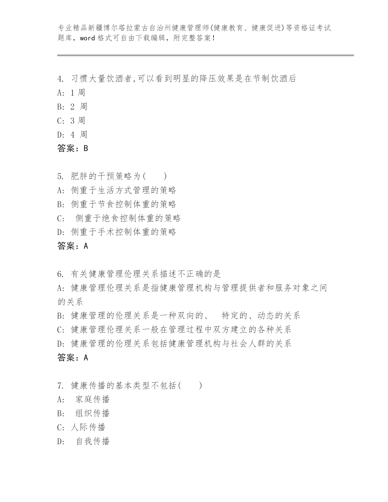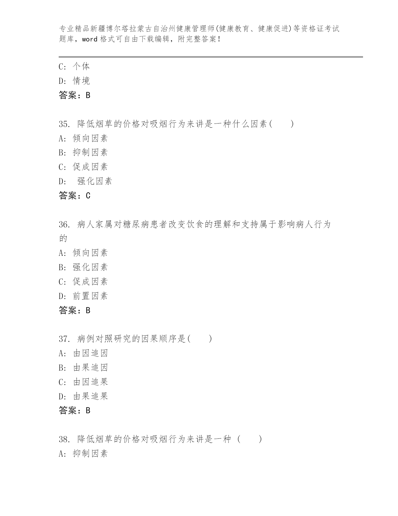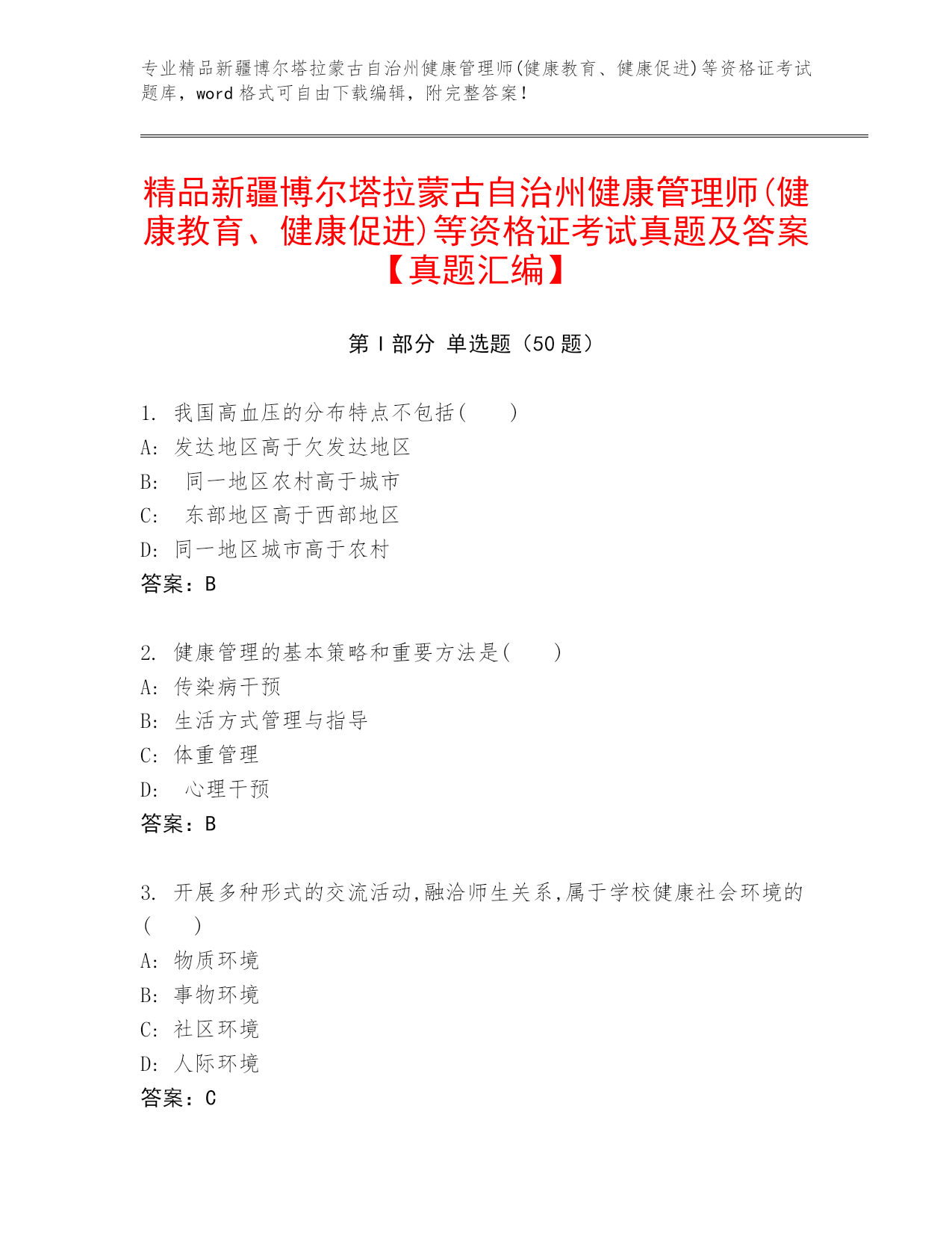 精品新疆博尔塔拉蒙古自治州健康管理师(健康教育、健康促进)等资格证考试真题及答案【真题汇编】