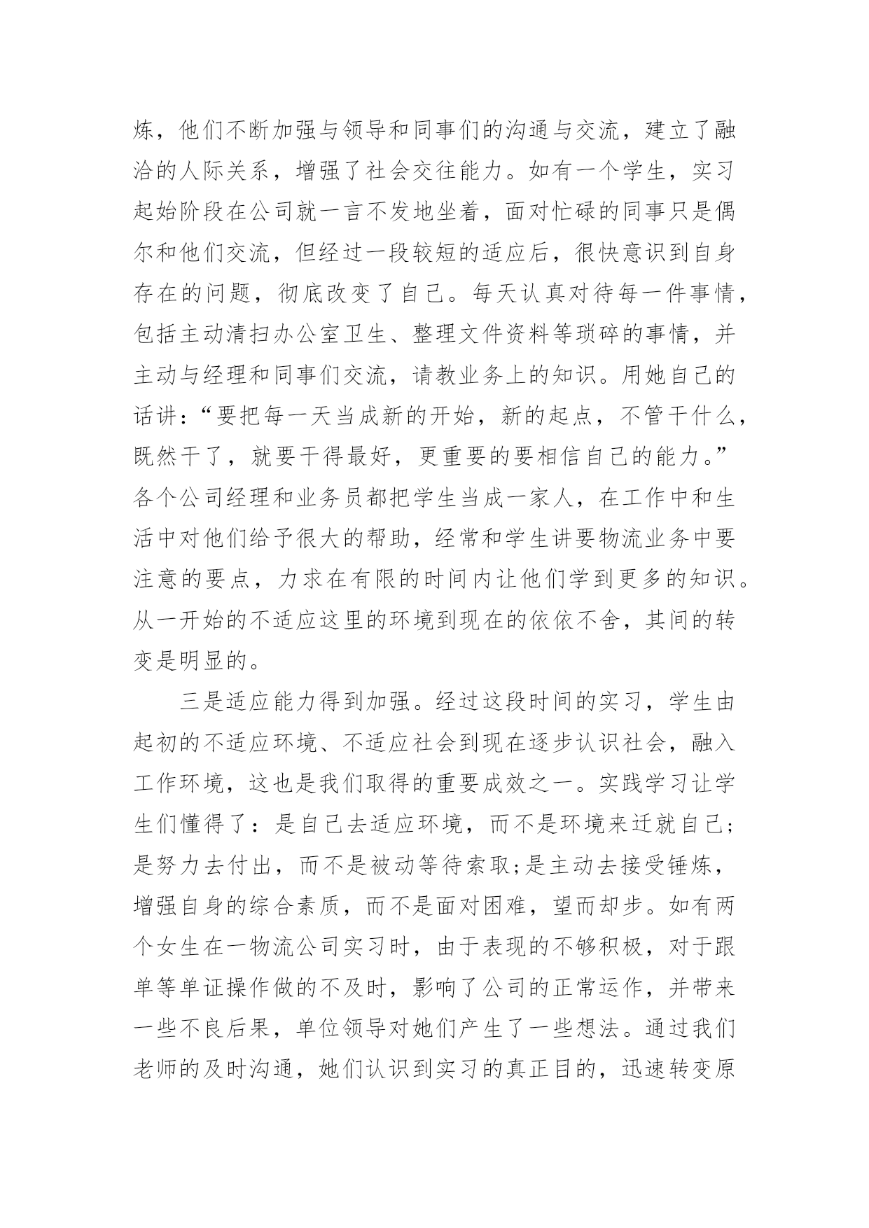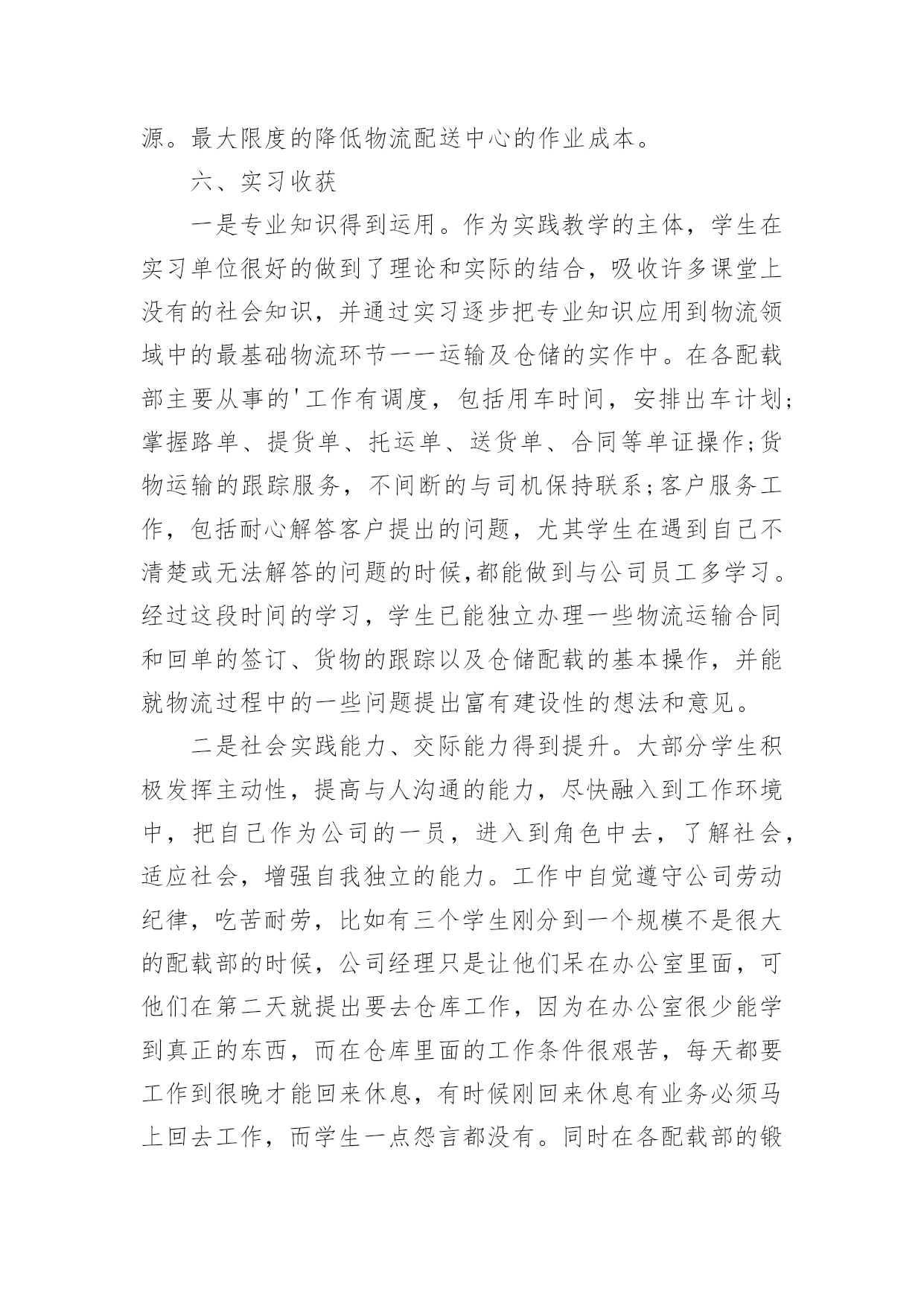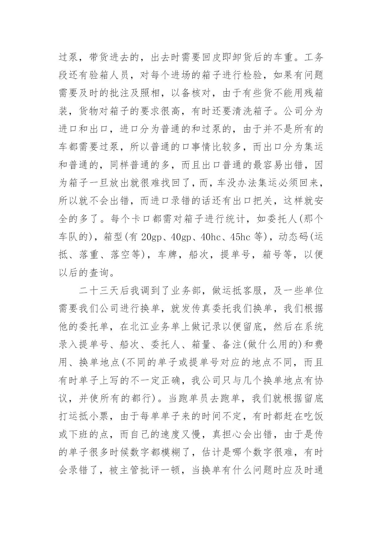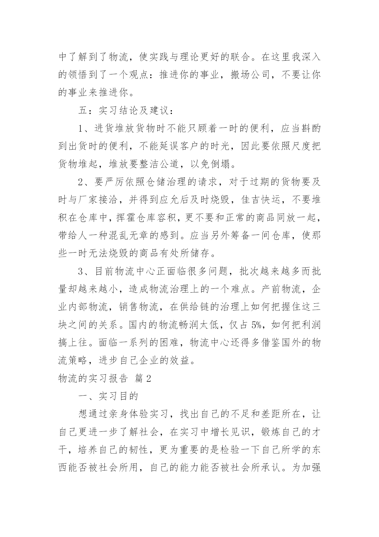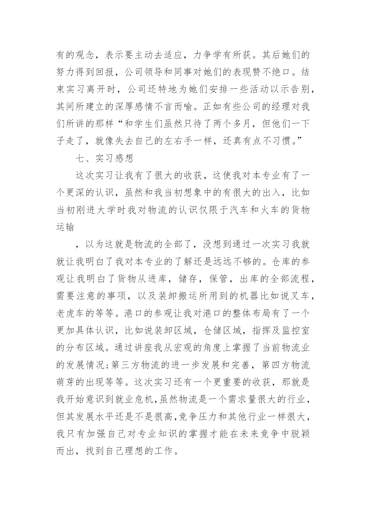 物流的实习报告【精华】物流的实习报告范文锦集九篇在人们素养不断提高的今天,报告的用途越来越大,多数报告都是在事情做完或发生后撰写的。其实写报告并没有想象中那么难,下面是小编为大家收集的物流的实习报告9篇,欢迎阅读与收藏。物流的实习报告篇1本人是物流专业的学生,这段时间来在物流公司实习,了解了很多也学习到了很多,下面是我实习时候的一些心得和报告!一:实习目标:为了以后能更好的适应工作和学习,学校组织到xx物流配送中心进行动期十天的实习。重要是为了懂得物流的作业流程,以便对我国的物流业能有更深的懂得。二:实习请求:了解物流的特色,佳吉货运,主要装备和作业流程,对其进行剖析。并根据学习的理论提出自己的看法。三:实习单位简介:配送中心是以组织配送性销售或供给,履行实物配送为重要职能的流通型结点。具有集货中心、分货中心的职能。xx公司是在xx连锁超市基本了发展起来的大型企业,拥有大型百货购物中心,社区连锁超市,中心城市xx岛为支柱的三大贸易,并以现代物流配送中心为支撑平台。xx物流配送中心是一个中等范围的物流配送基地,是综合性的'物流配送中心。兼有转运和集散功效,也可以扩大至配送和流通加工的功效,因此在计划与设计方面可操作性更高。xxx物流配送中心重要分为:收货、分货、验货、退货四大部门,各个部分之间相互和谐和相互配合,密不可分。xx公司正逐步实现"以中心城市的中型百货购物中心和专业化超市为核心,以中小城市的大型综合超市和xx岛为两翼,以现代化的大型物流配送中心为基本平台"的发展格式。诣在以多业态连锁发展、范围经营和方便服务为企业核心价值的西北地域最大的零售贸易平台。四:实习感触:随着世界经济一体化步伐的加快,国际经济贸易发展日益活泼,我国的物风行业得到敏捷发展。固然这次实习时光很短,却给我上了人生过程中不可或缺的一课。对于物流,我只是知道它是集:运输、储存、搬运、包装、流通加工、配送、信息处置等基础功效实行的有机联合。但没有想到它的实际操作却没有这么的简略。通过十一点作为国人的物流人士有着切肤的领会。货物运转速度慢,货差货损率高难以避免,高层货架利用率严天的简略懂得,使我对于物流配送有了更加深入的认识。中国的物流业固然没有国外发达,但这并代表中国物流业的落伍,一些原则性[譬如中国劳动力便宜的国情]严重的制约了中国物流业信息技巧化的发展速度。蛮横的装卸态度更是制约中国物流业发展的瓶颈之一。这次实习让我从实践中了解到了物流,使实践与理论更好的联合。在这里我深入的领悟到了一个观点:推进你的事业,搬场公司,不要让你的事业来推进你。五:实习结论及建议:1、进货堆放货物时不能只顾着一时的便利,应当斟酌到出货时的便利,不能延误客户的时光,因此要依照尺度把货物堆起,堆放要整洁公道,以免倒塌。2、要严厉依照仓储治理的请求,对于过期的货物要及时与厂家接洽,并得到应允后及时烧毁,佳吉快运,不要堆积在仓库中,挥霍仓库容积,更不要和正常的商品同放一起,带给人一种混乱无章的感到。应当另外筹备一间仓库,使那些一时无法烧毁的商品有处所储存。3、目前物流中心正面临很多问题,批次越来越多而批量却越来越小,造成物流治理上的一个难点。产前物流,企业内部物流,销售物流,在供给链的治理上如何把握住这三块之间的关系。国内的物流畅润太低,仅占5%,如何把利润搞上往。面临一系列的困难,物流中心还得多借鉴国外的物流策略,进步自己企业的效益。物流的实习报告篇2一、实习目的想通过亲身体验实习,找出自己的不足和差距所在,让自己更进一步了解社会,在实习中增长见识,锻炼自己的才干,培养自己的韧性,更为重要的是检验一下自己所学的东西能否被社会所用,自己的能力能否被社会所承认。为加强对书本知识的理解以及对专业基础知识重要性的认识;为进一步认识物流管理的概念及其运营模式,以及当今物流的现状;利用在学校所学的物流实务知识,从理论到实践,对内蒙古XX市塔尔气的铁路运输处业务运作和经营管理状况进行分析,指出不足之处完善公司制度;了解淮北矿业集团铁路运输处的各项规章制度,增强组织性和纪律性,认识自身不足,提高自身素质;加强和XX市塔尔气铁路运输处各层次员工的沟通和交流,学习其优秀品质,提高对现实问题的认识,逐步提高社会交际能力和应变能力;适应课程教学和专业发展需要,收集现实国有企业在仓储,物流运作方面的资料,夯实专业知识;最后为了更好的适应物流行业的工作,通过实践使得在课本中所学到的知识得到升华。二、实习单位简介内蒙古牙克石塔尔气铁路运输局,始建于**年5月。目前已经形成组织结构合理、投资主体多元、经营机制灵活、内部运作规范、管理手段科学的母子公司管理格局。它是以煤炭和煤化工产品生产为主,多种经营、综合发展的特大型企业集团。地处东北地区。巨大的发展潜力,优越的地理位置,优先的政策优势,丰富的铁炭资源,为塔