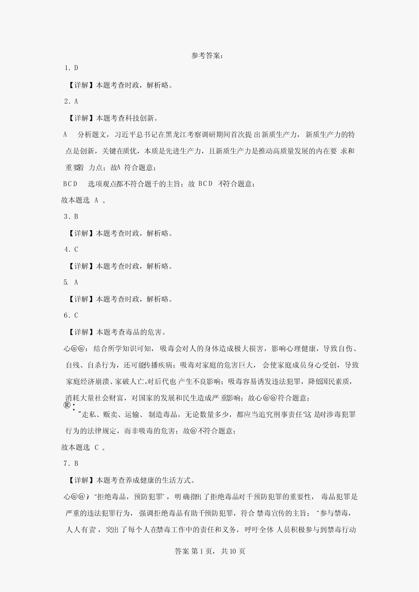 【中考真题】2024年甘肃省临夏州中考道德与法治试卷(附答案)完整版.pdf