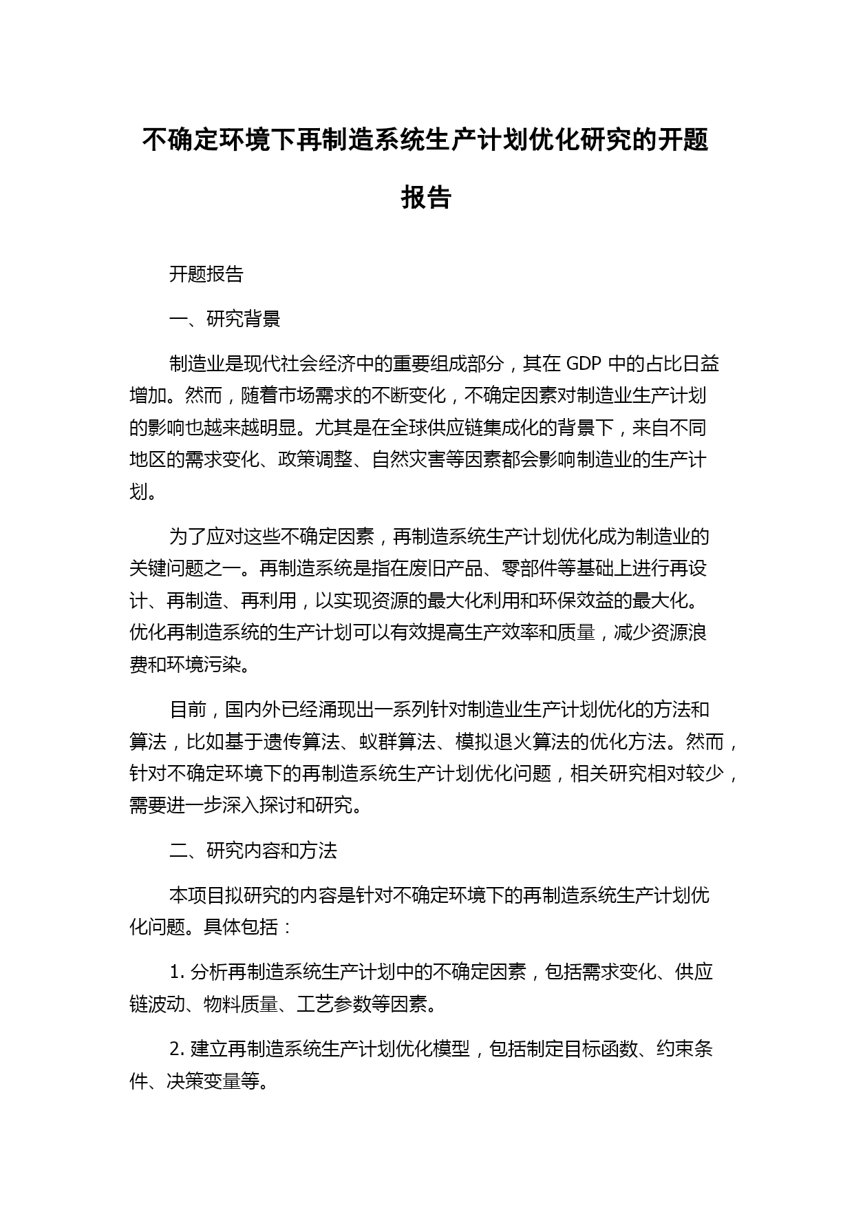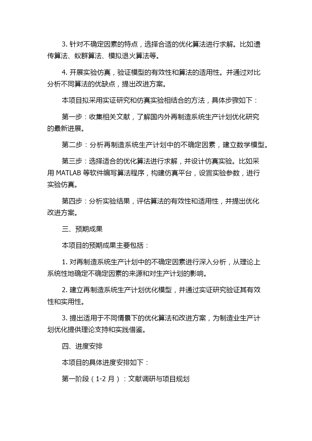 不确定环境下再制造系统生产计划优化研究的开题报告.docx