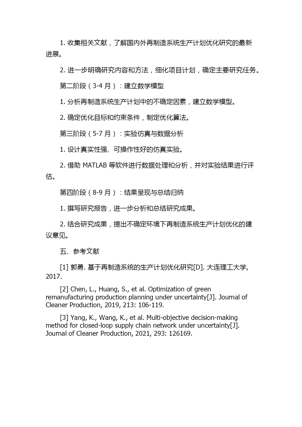 不确定环境下再制造系统生产计划优化研究的开题报告