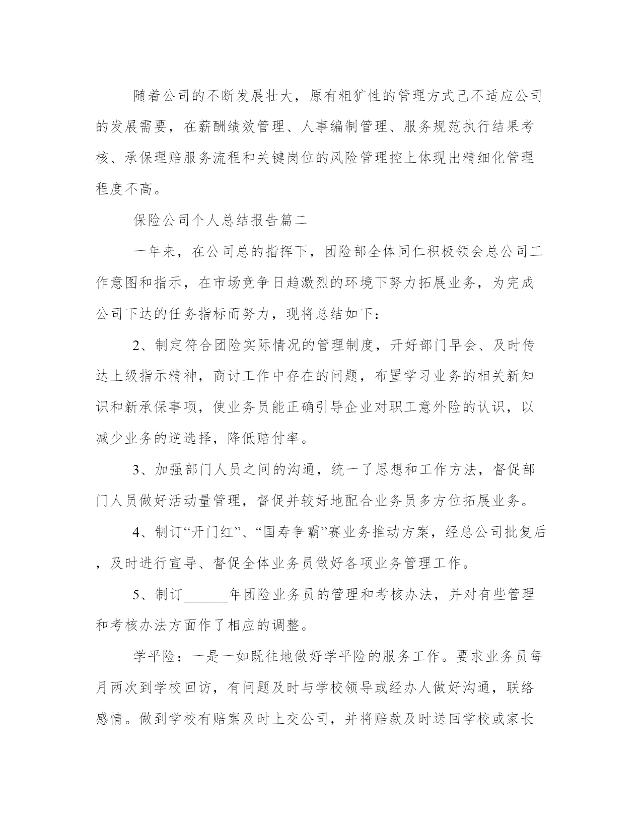2023年保险公司个人总结报告保险公司人员个人总结报告(汇总12篇).docx