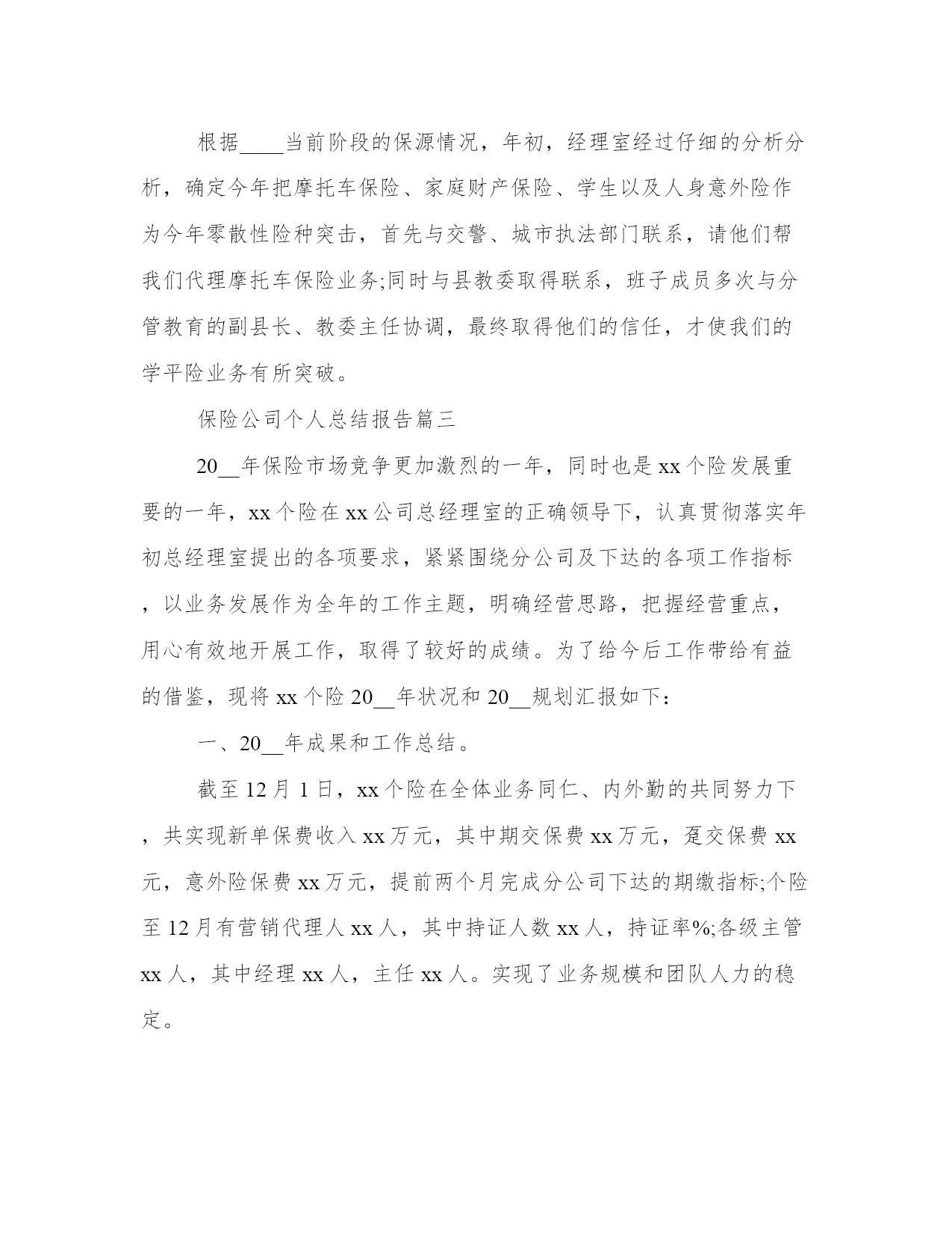2023年保险公司个人总结报告保险公司人员个人总结报告(汇总12篇)