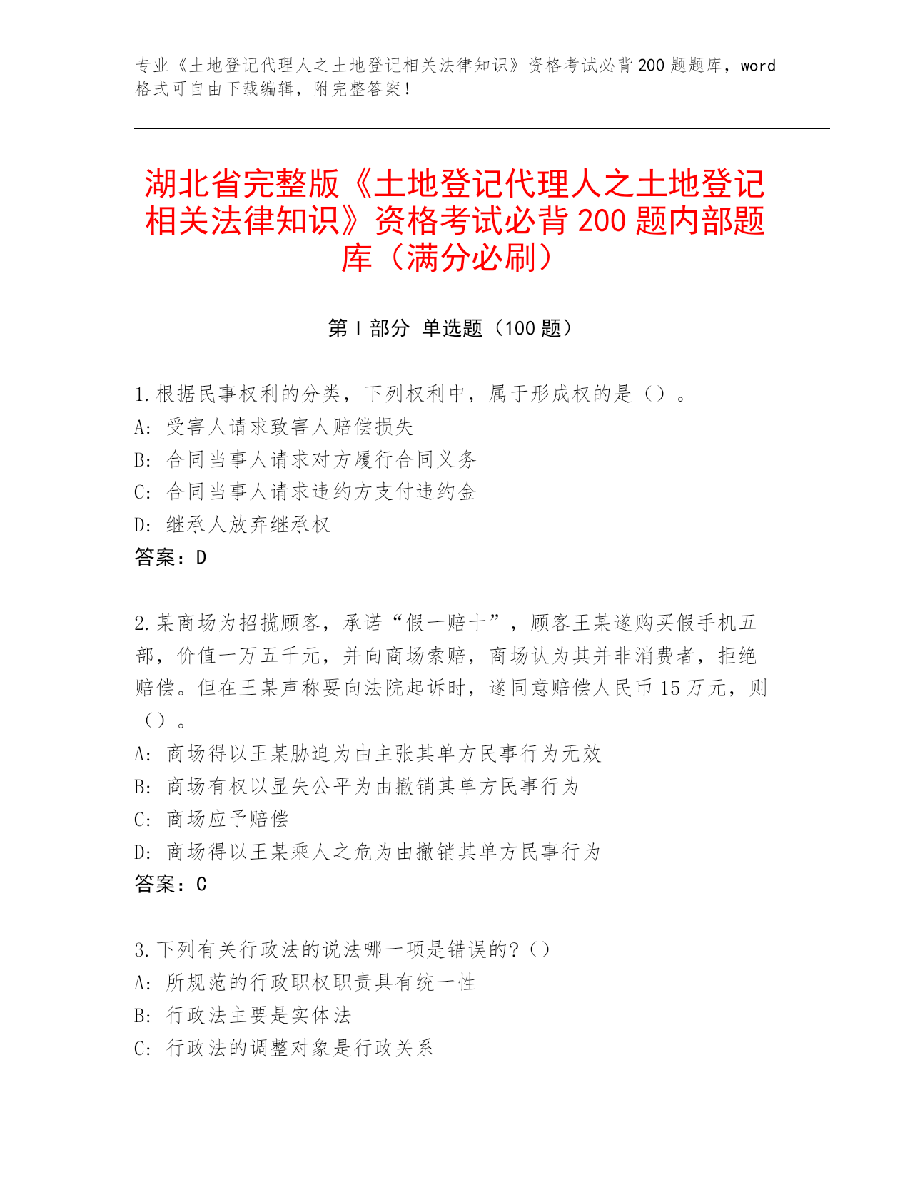 湖北省完整版《土地登记代理人之土地登记相关法律知识》资格考试必背200题内部题库(满分必刷).docx