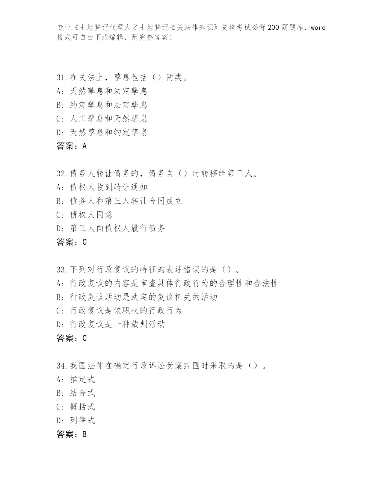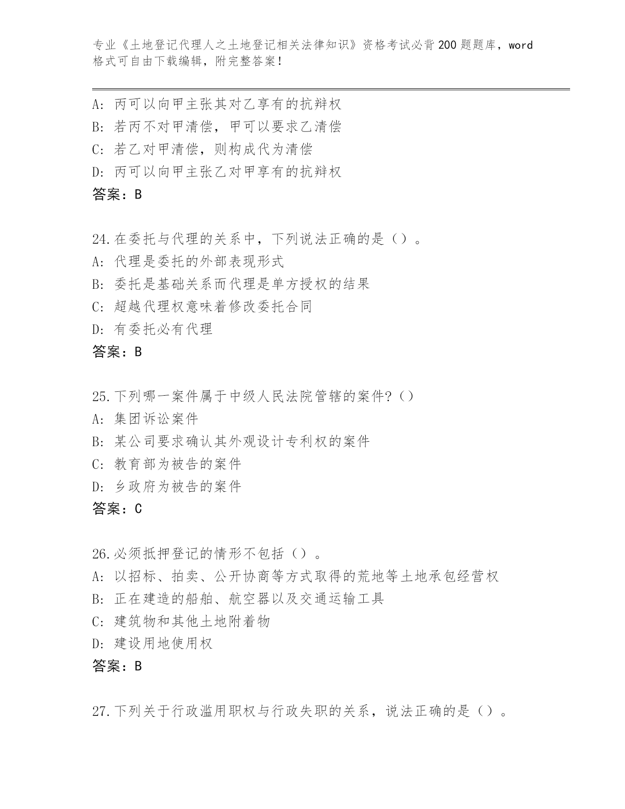 2024年江西省新干县《土地登记代理人之土地登记相关法律知识》资格考试必刷200题题库(突破训练)